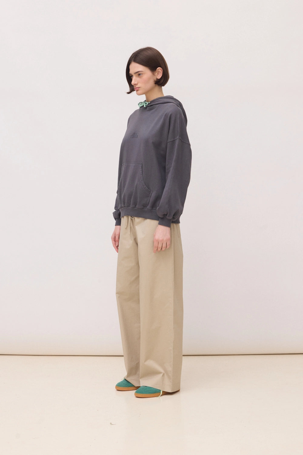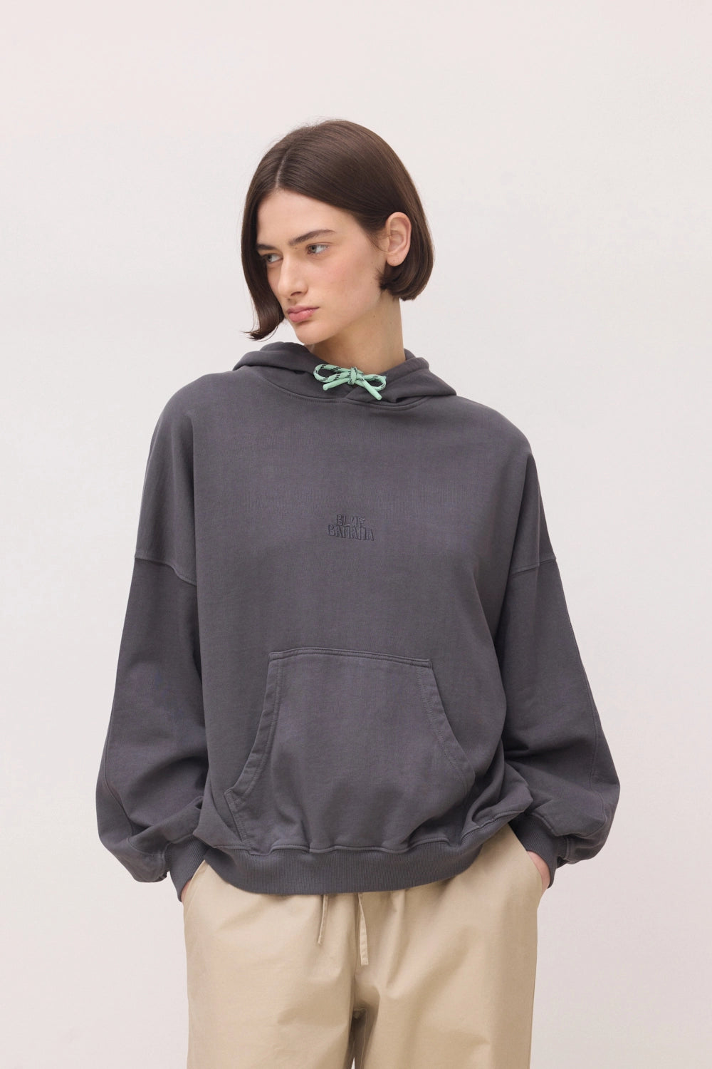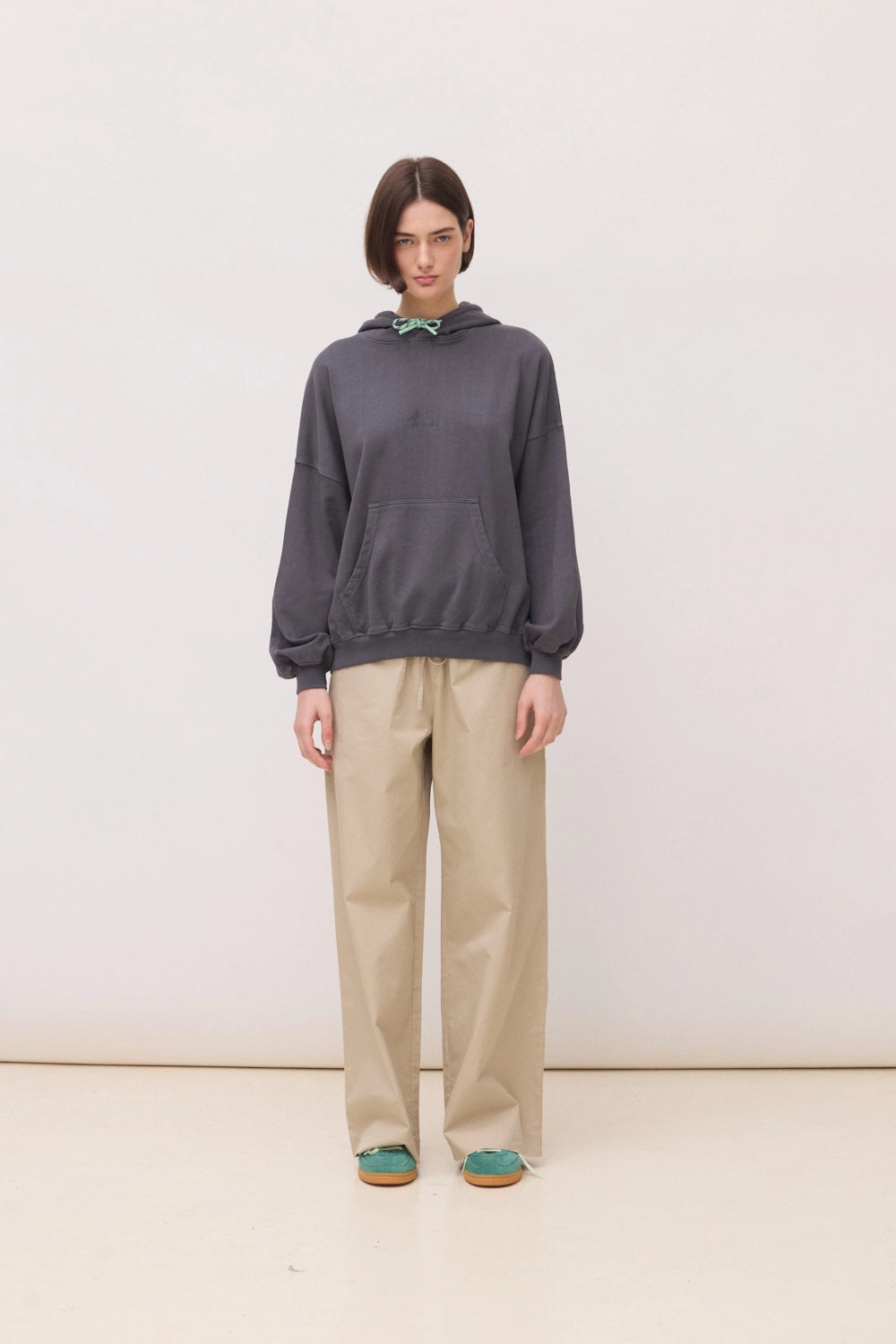 Sudadera con capucha con logo bordado en el centro delantero. Confeccionada con 100% algodón orgánico. Corte oversize y gramaje: 300 GSM.