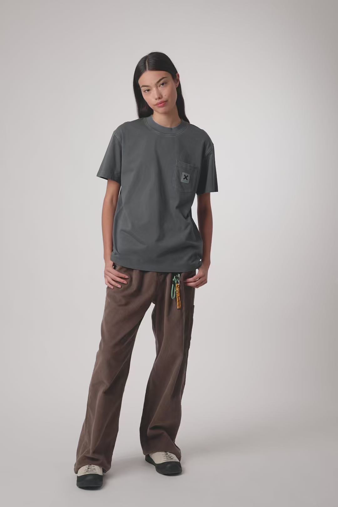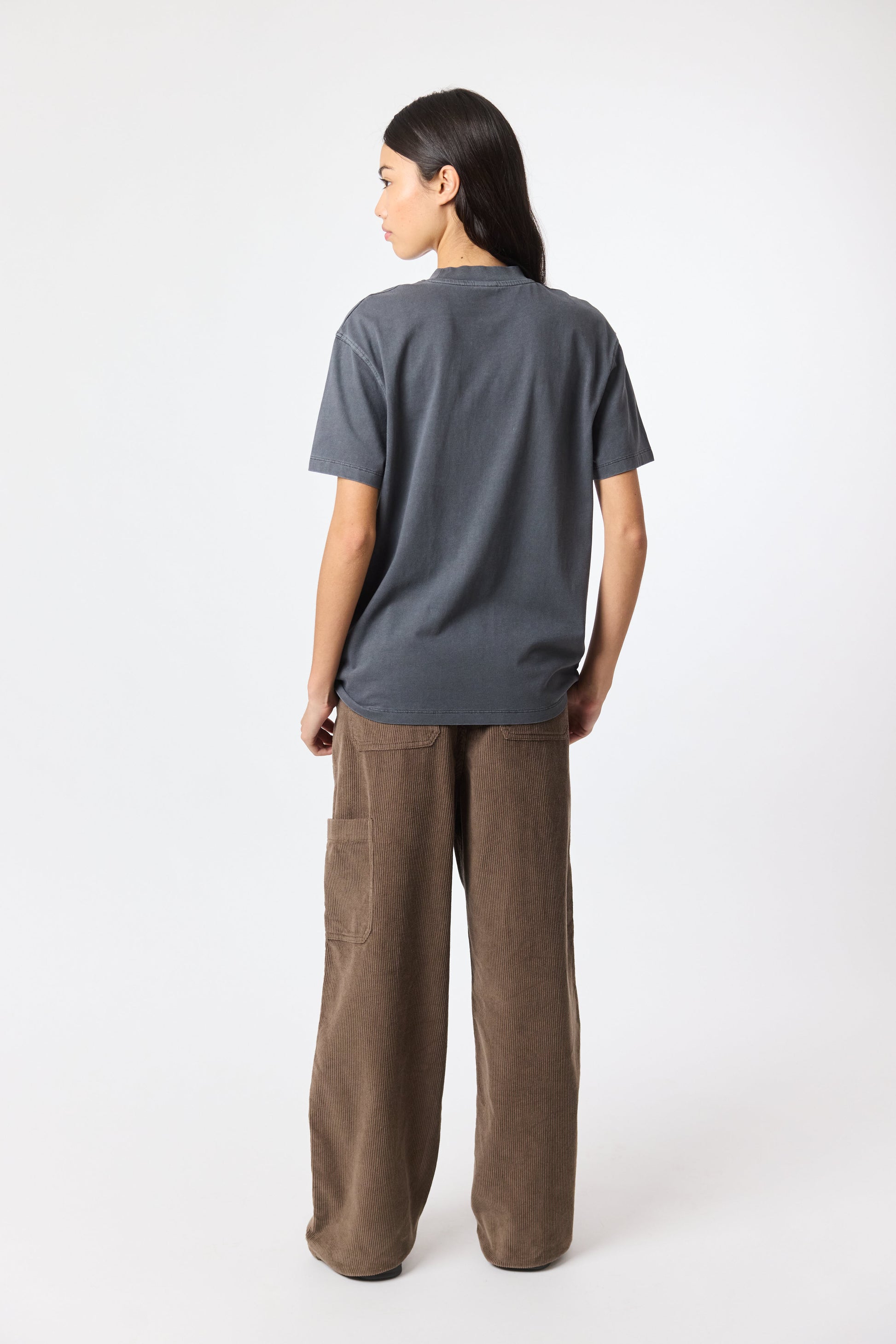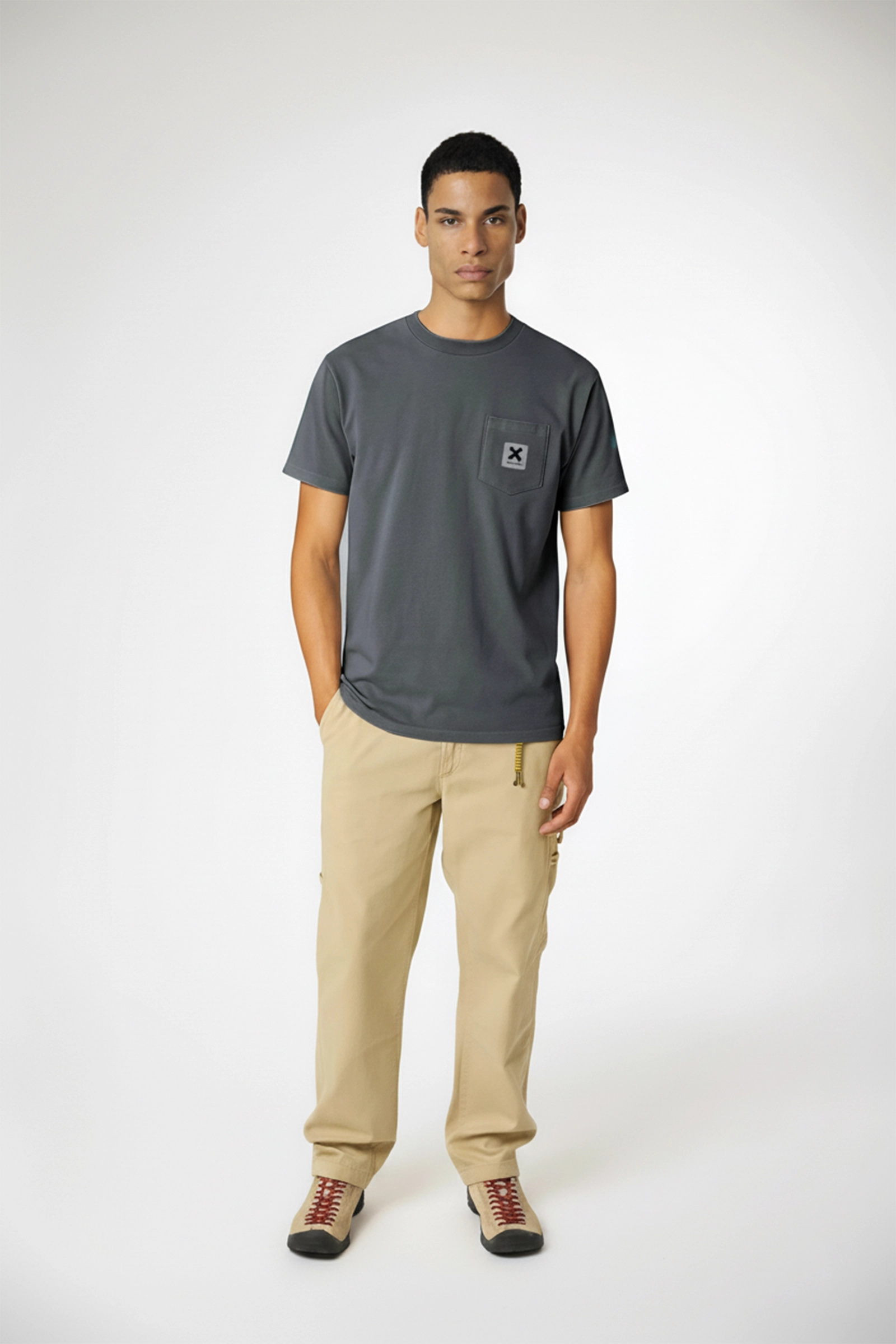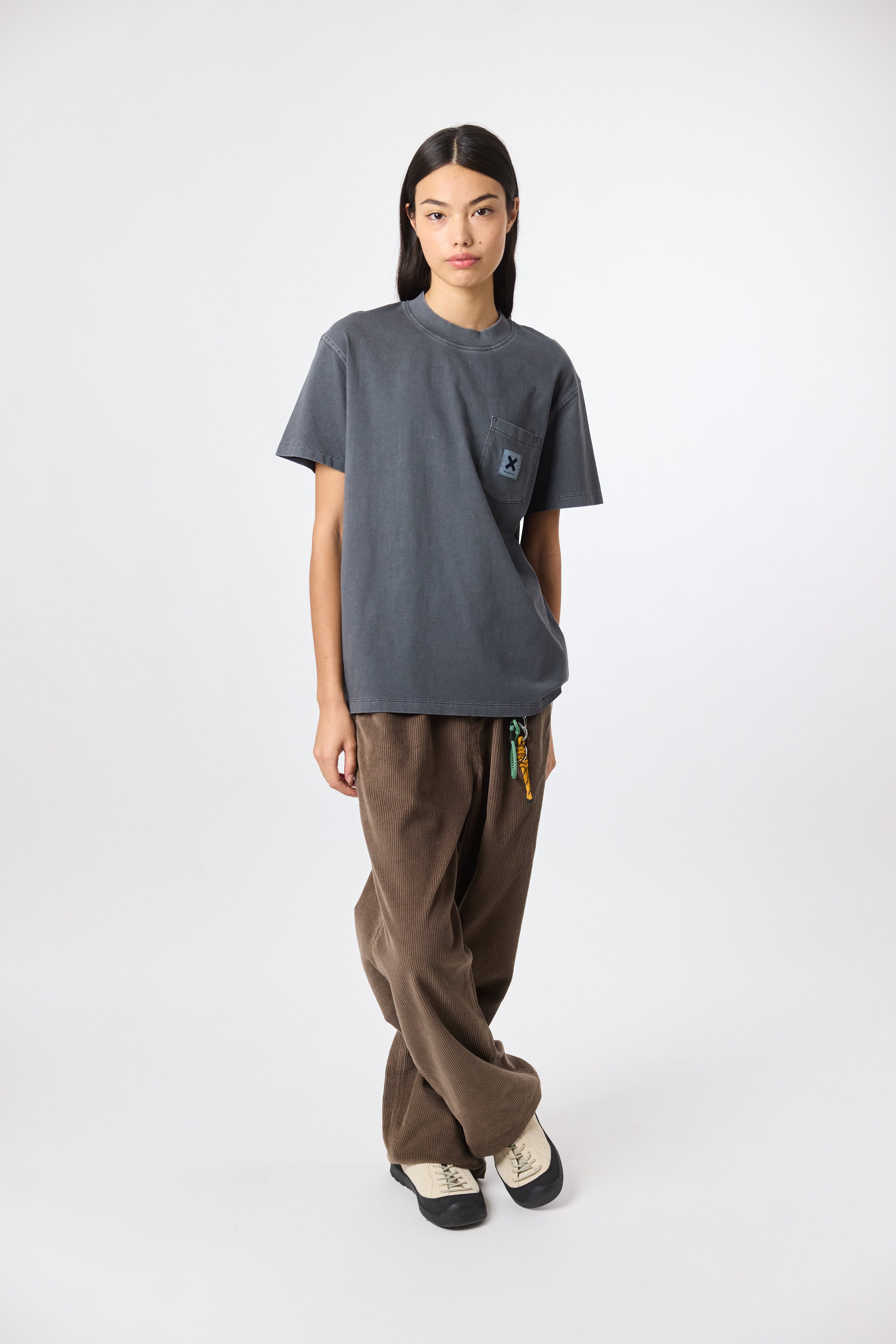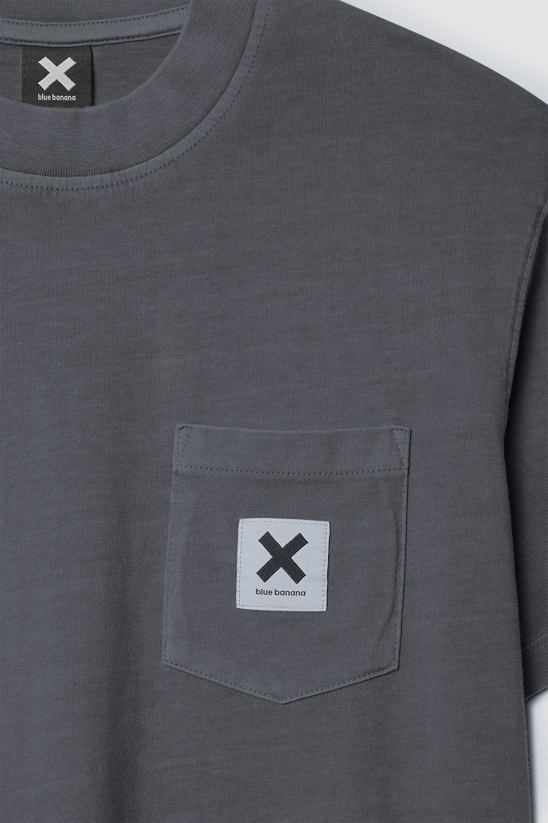 Washed-effect t-shirt with front chest pocket featuring a logo on a woven label.