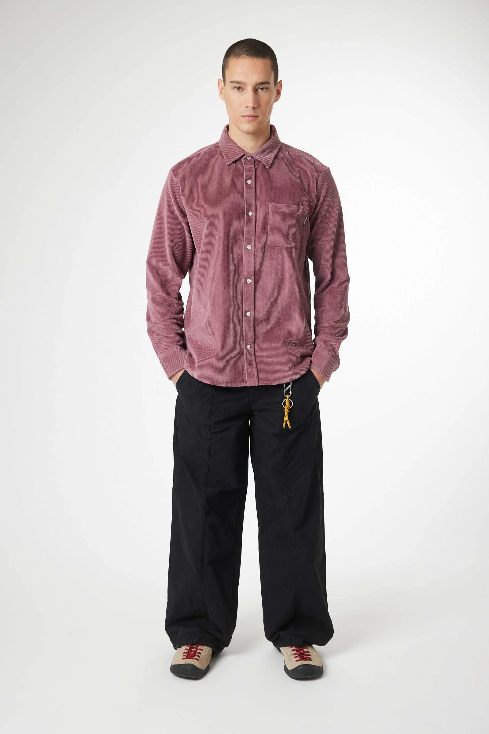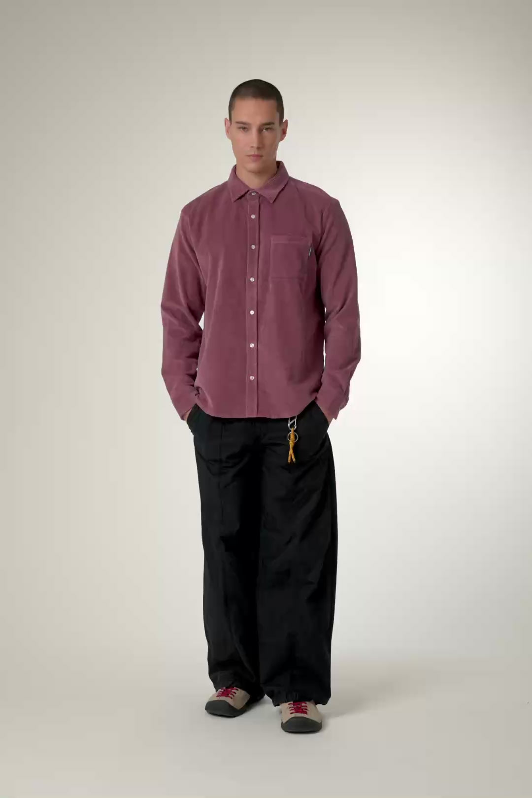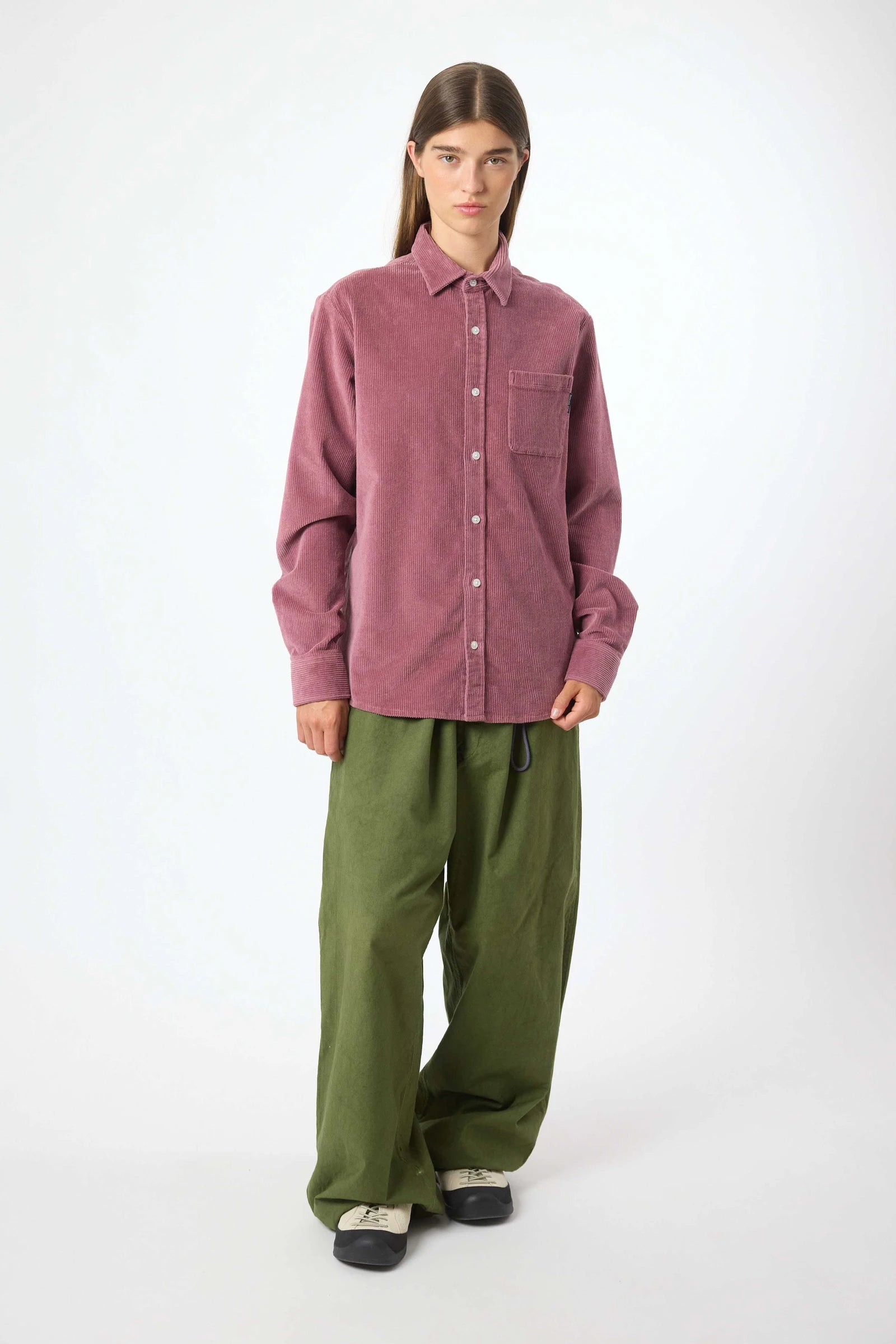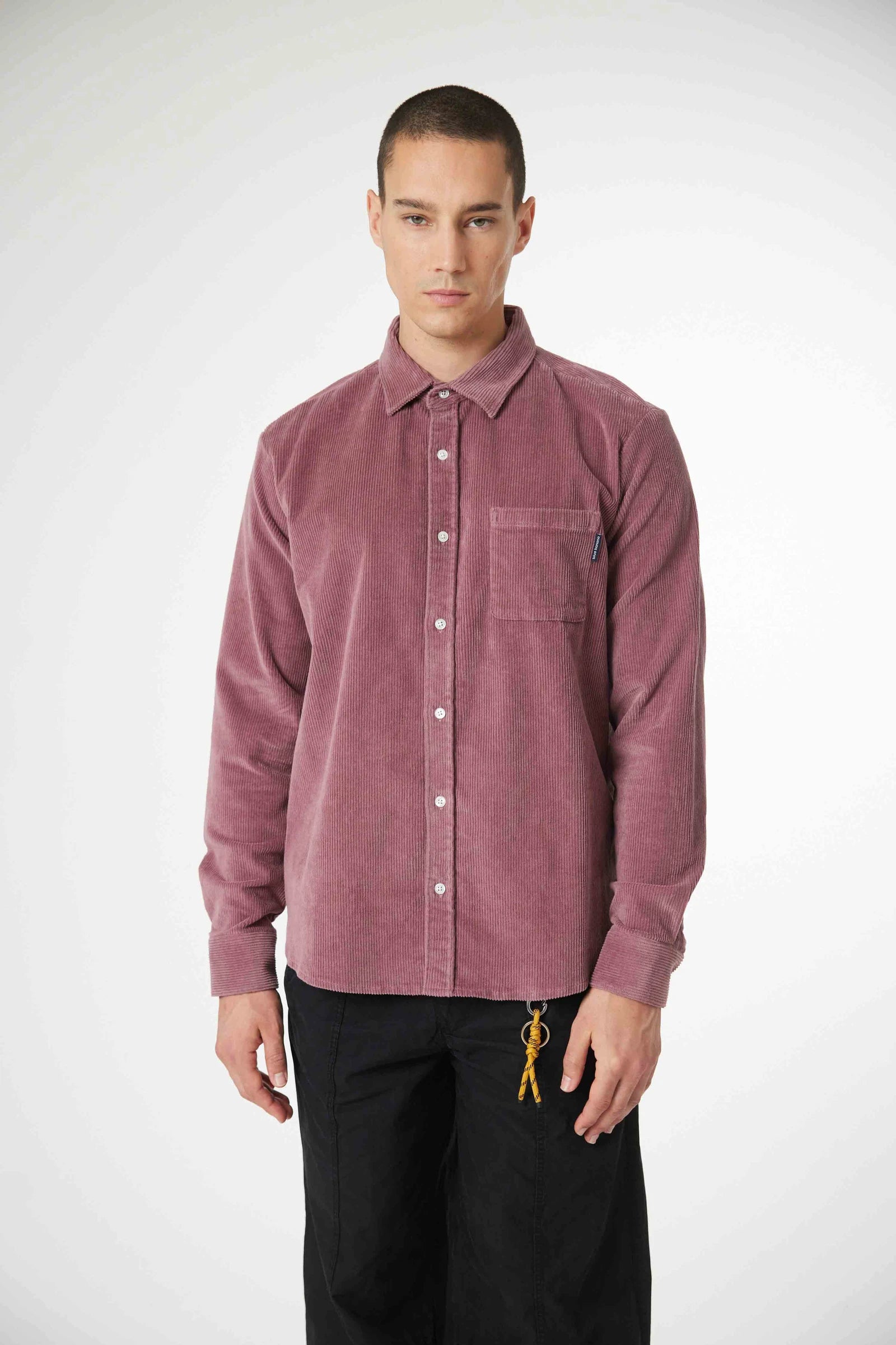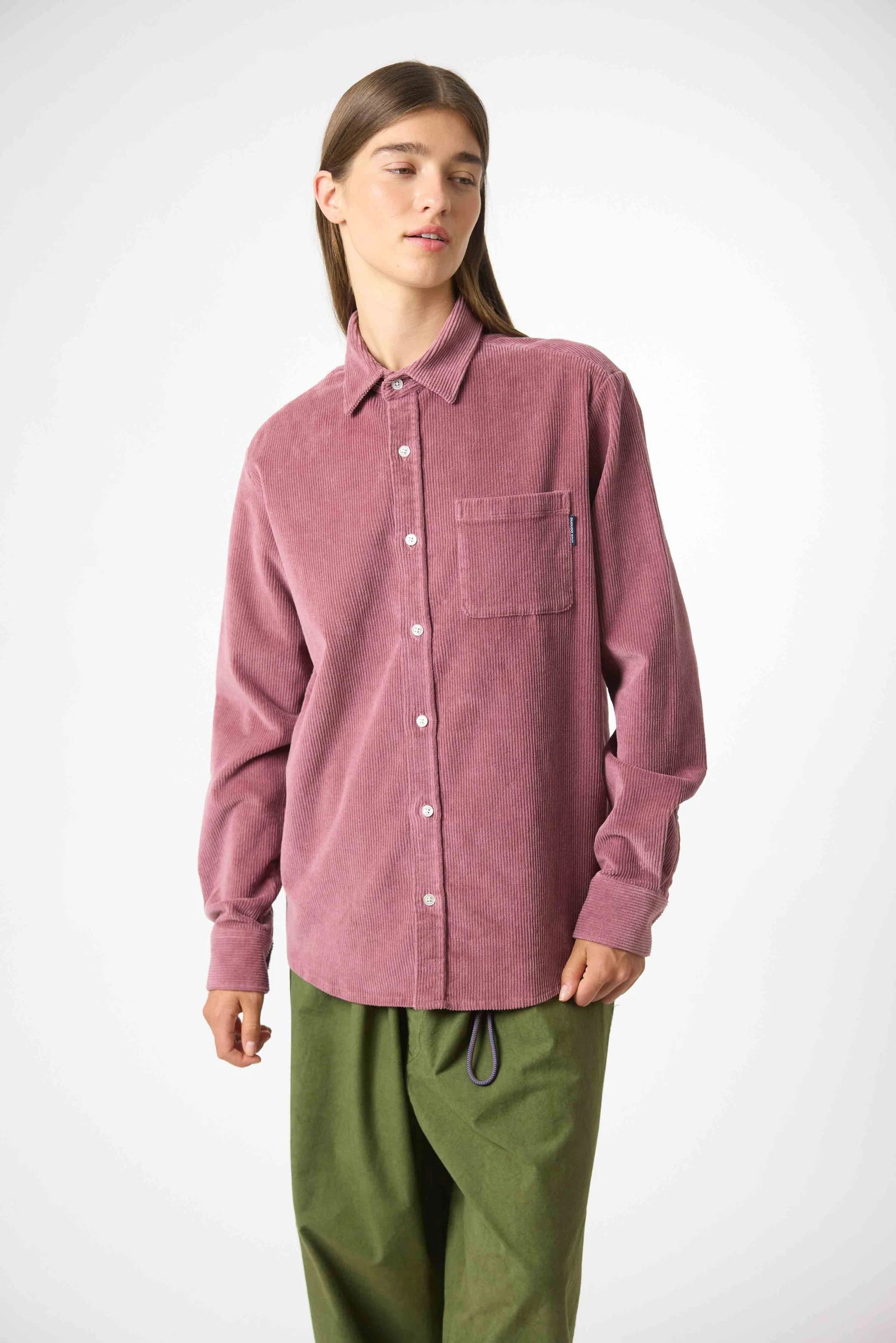 Long sleeve overshirt, cotton corduroy fabric. Relaxed fit. One patch pocket on the chest. Custom buttons. Branding label on the front pocket.