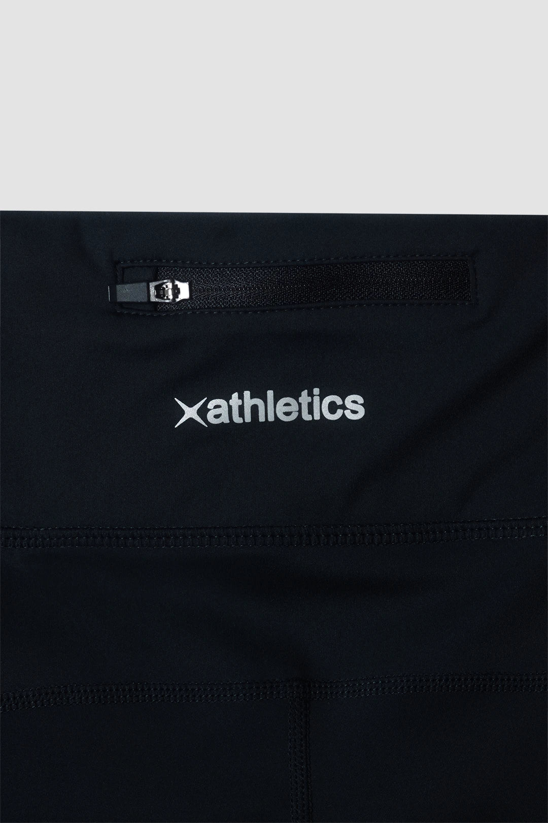 Short sports leggings made of nylon and sport lycra, quick-drying, UV50+, and breathable. Reflective logo on the upper left side and lower right back. Rear central pocket with zipper closure and elastic waistband with drawstring.