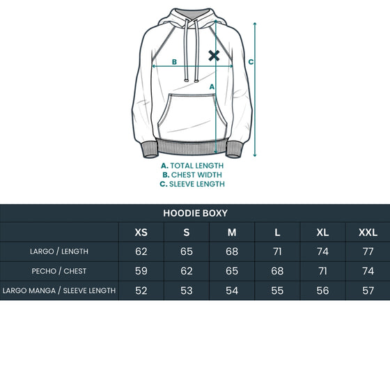 Hoodie with front print and our classic X on the back. Front lower central pocket with openings on both sides. Made of 100% organic cotton and boxy fit.