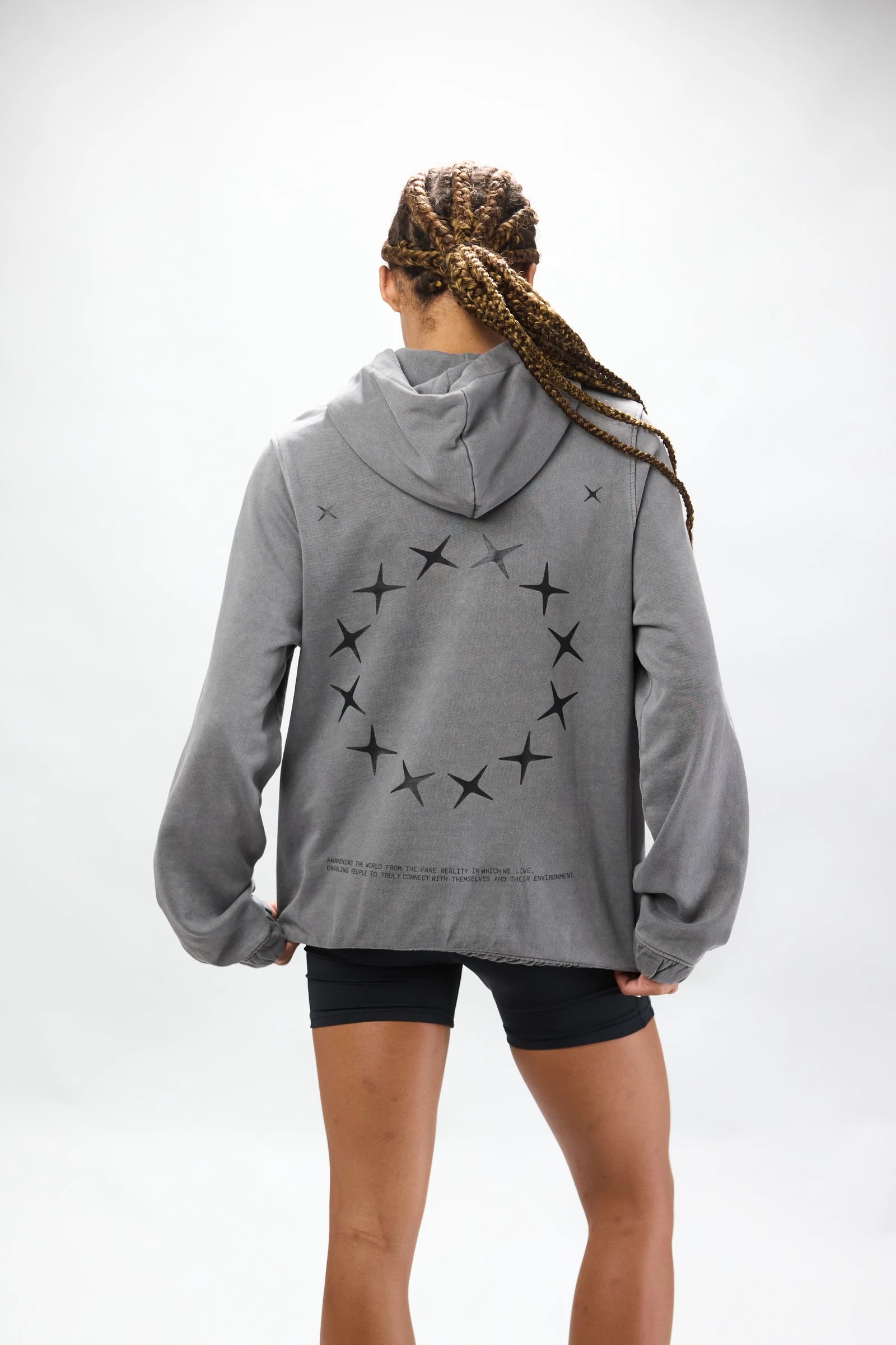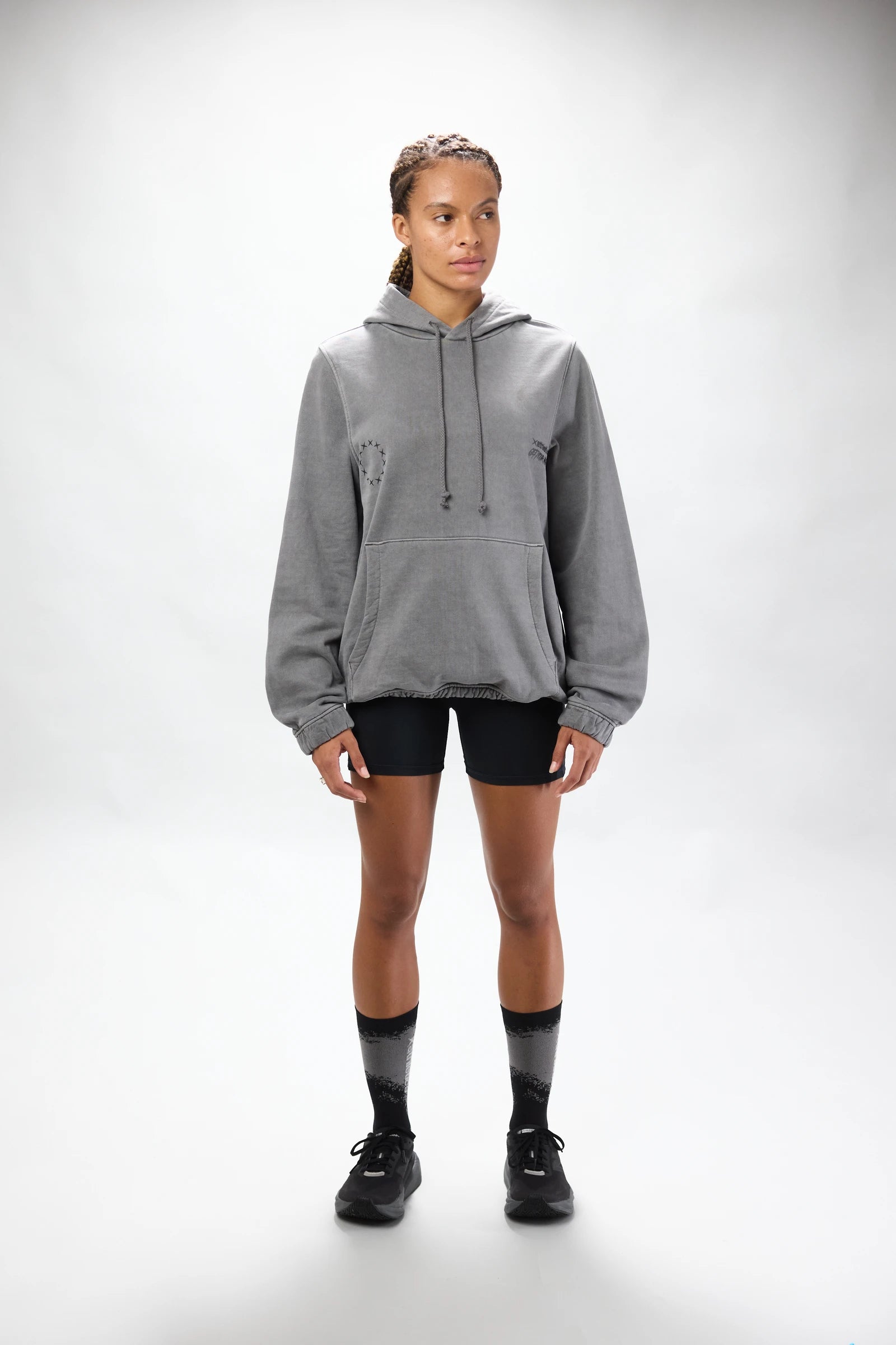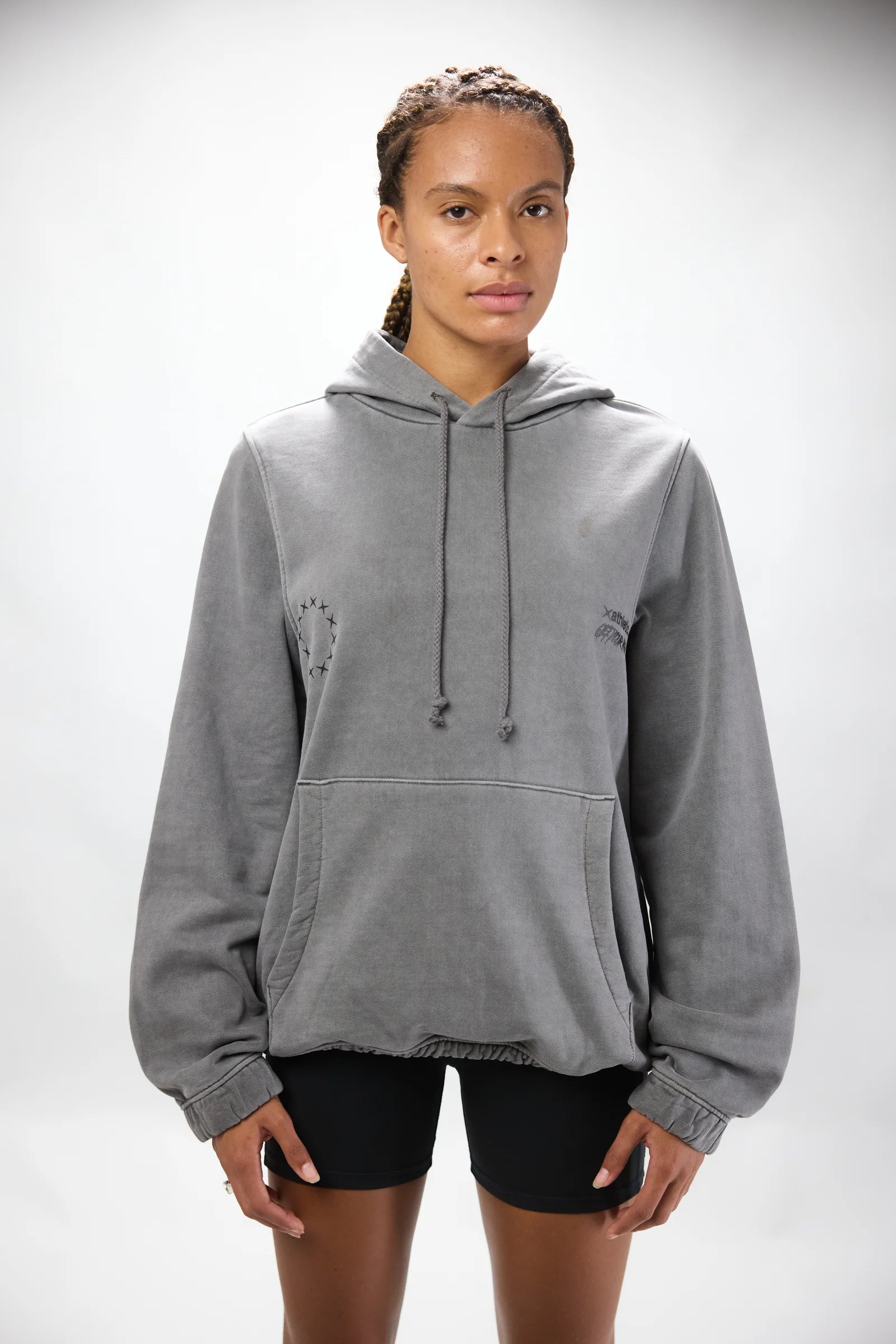 Washed effect hoodie made of 100% cotton. This sweatshirt has an oversized fit. If you prefer a more fitted look, we recommend choosing a size smaller.