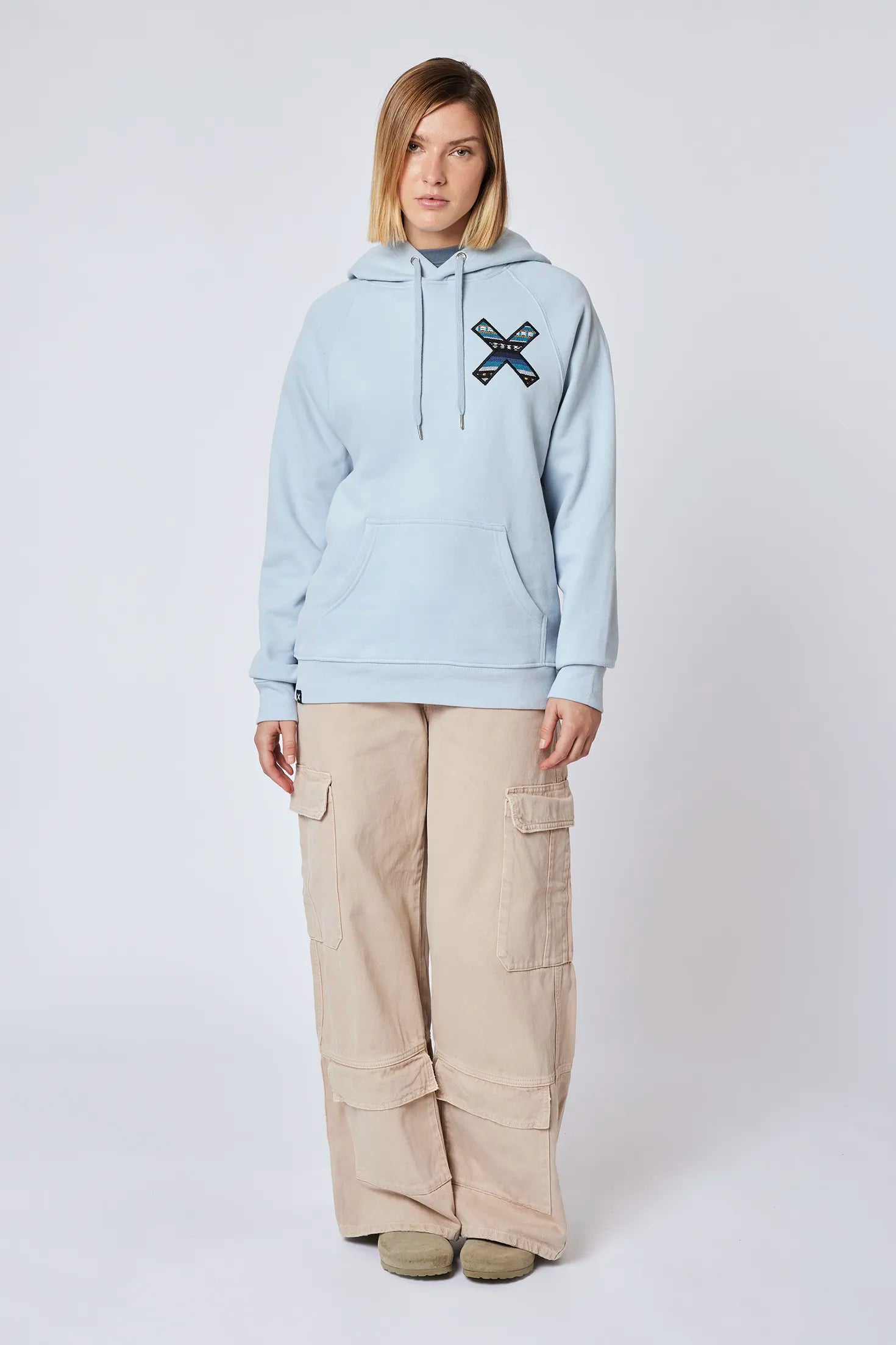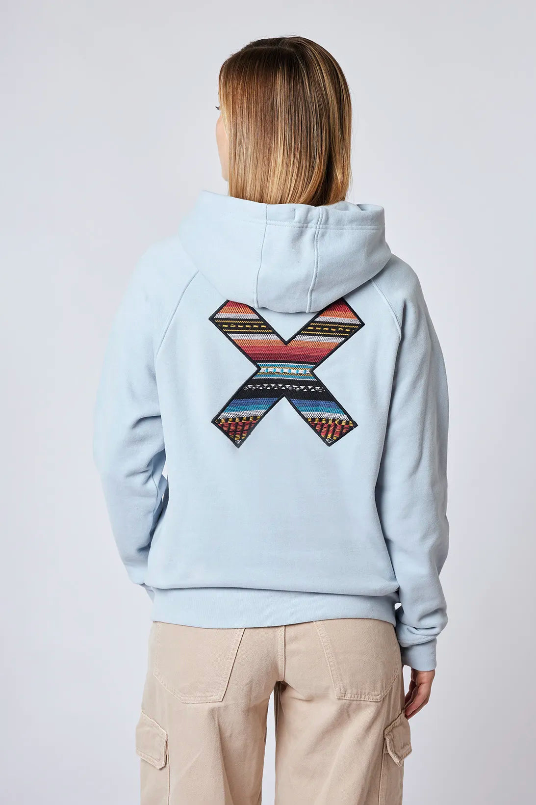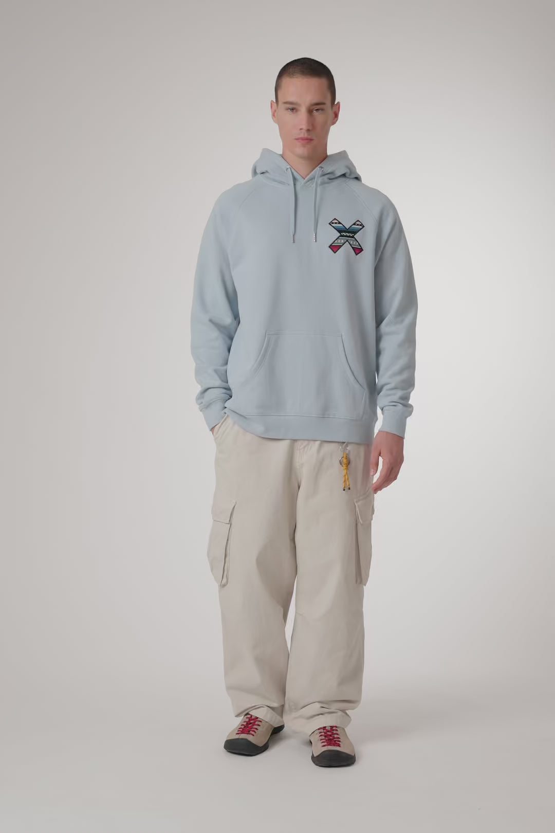 Hoodie with our classic embroidered X: front on the chest and back on the back. Lower central front pocket with opening on both sides. Made with 100% organic cotton and regular fit cut.