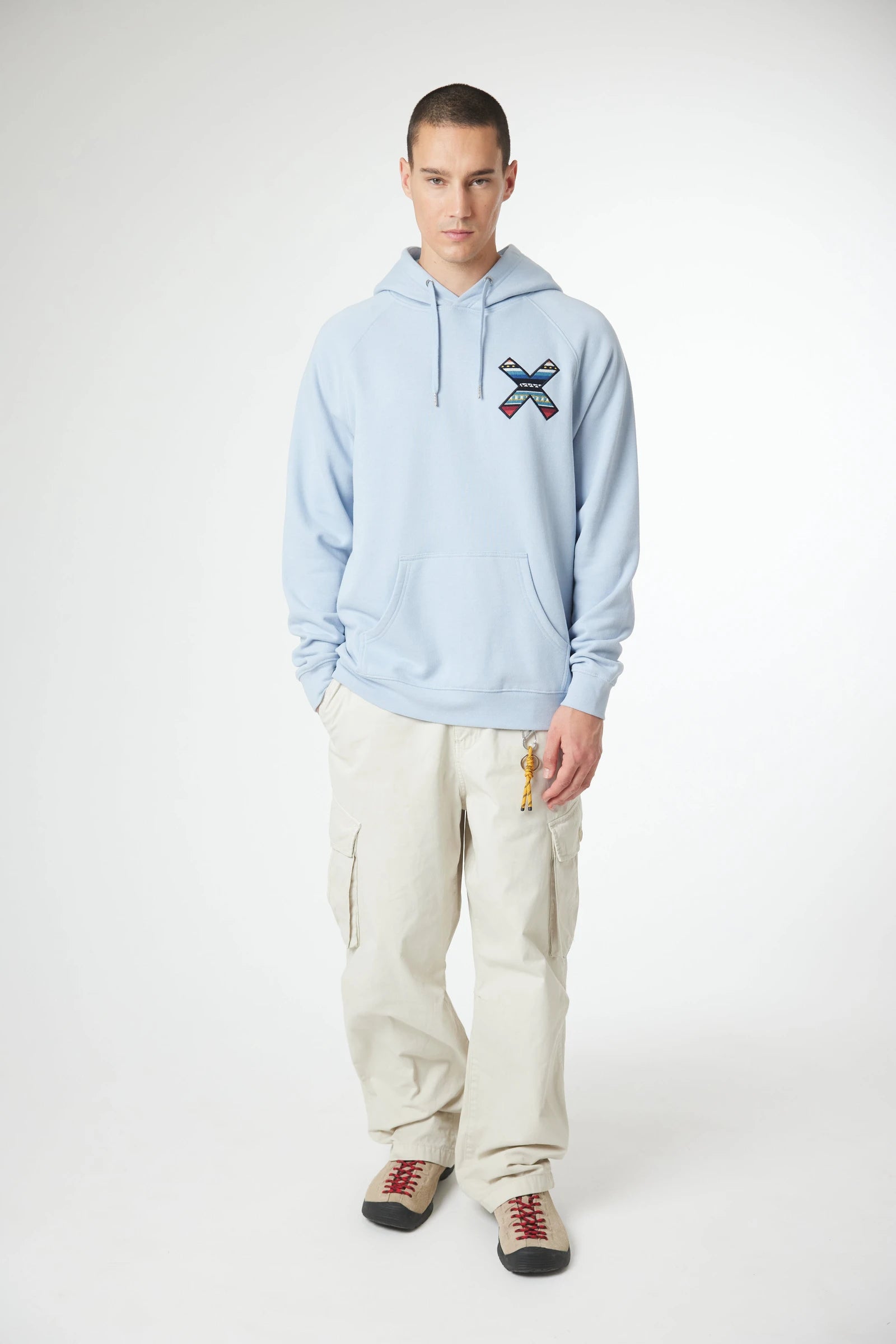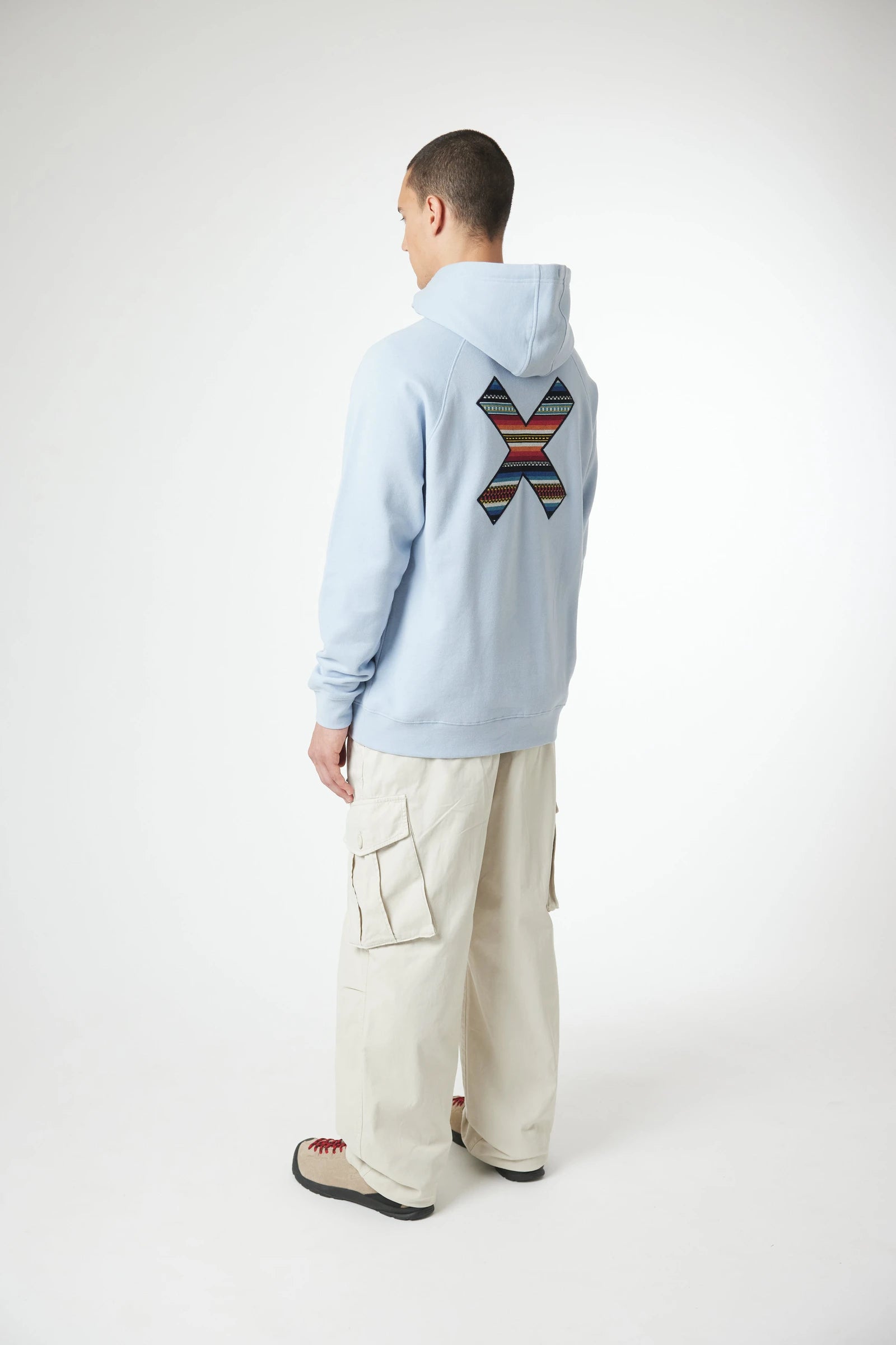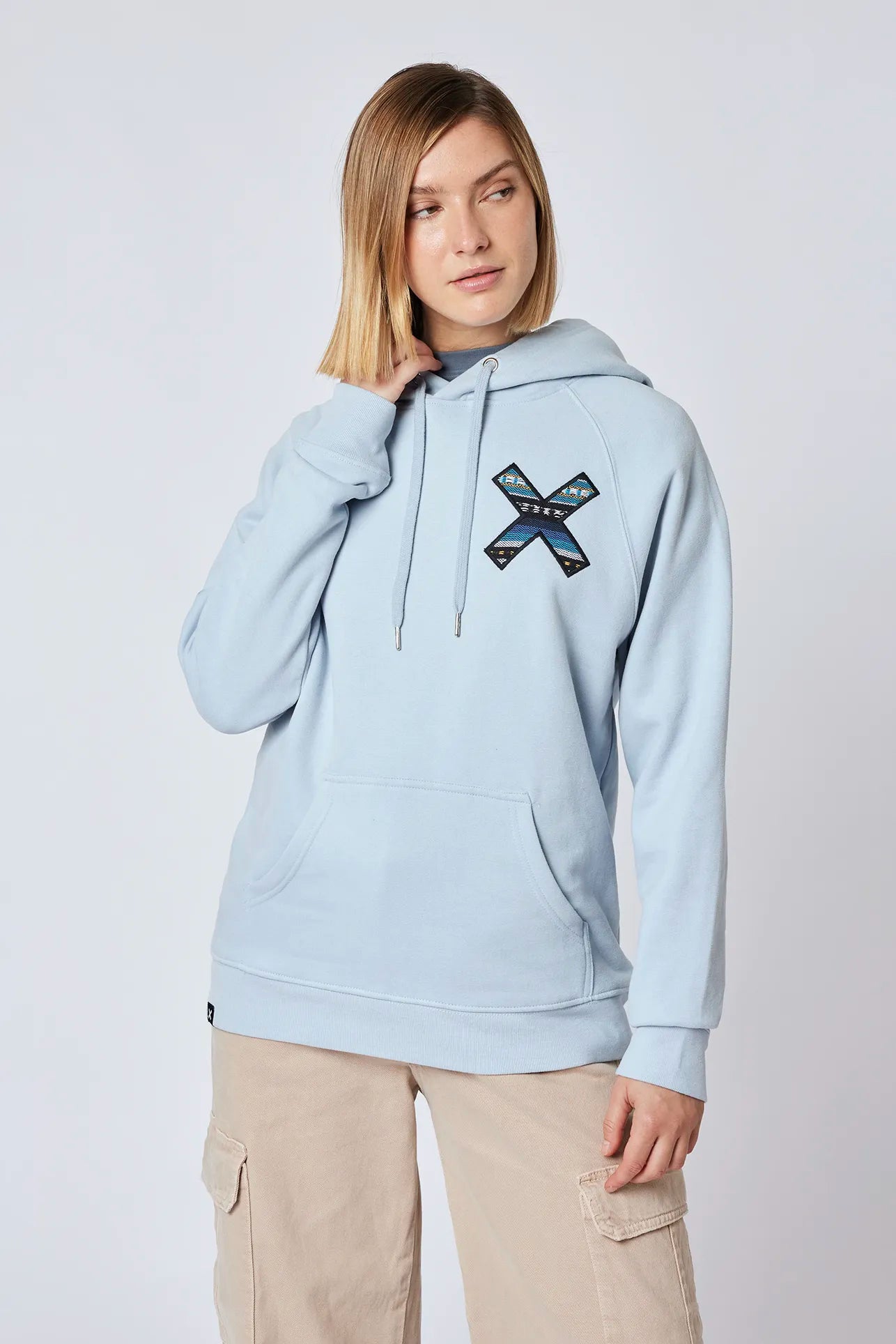 Hoodie with our classic embroidered X: front on the chest and back on the back. Lower central front pocket with opening on both sides. Made with 100% organic cotton and regular fit cut.