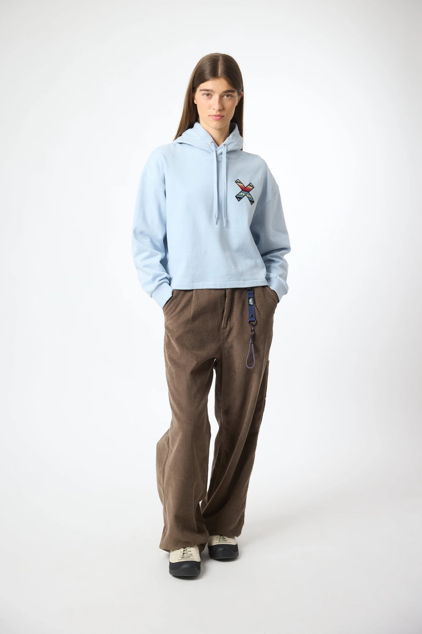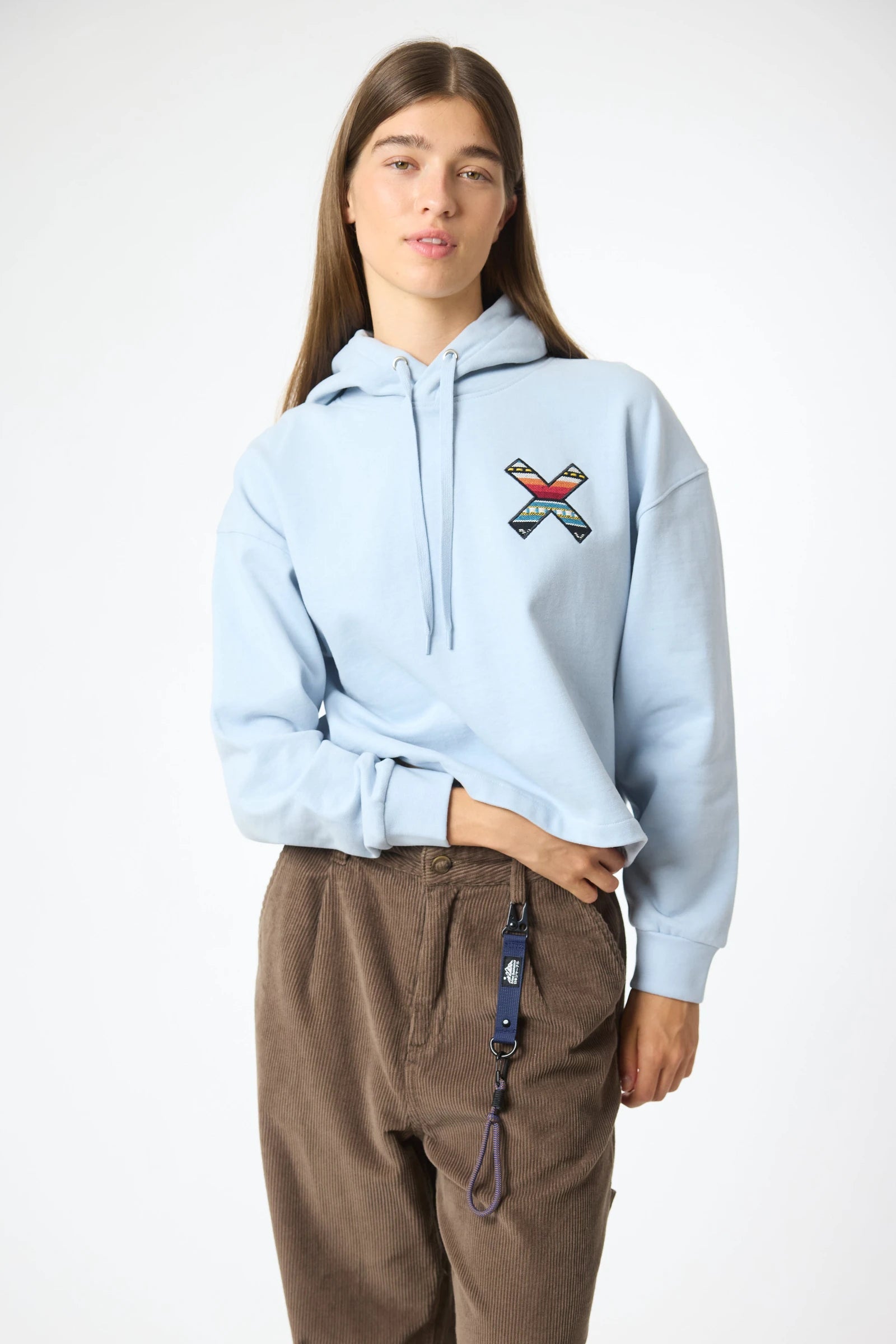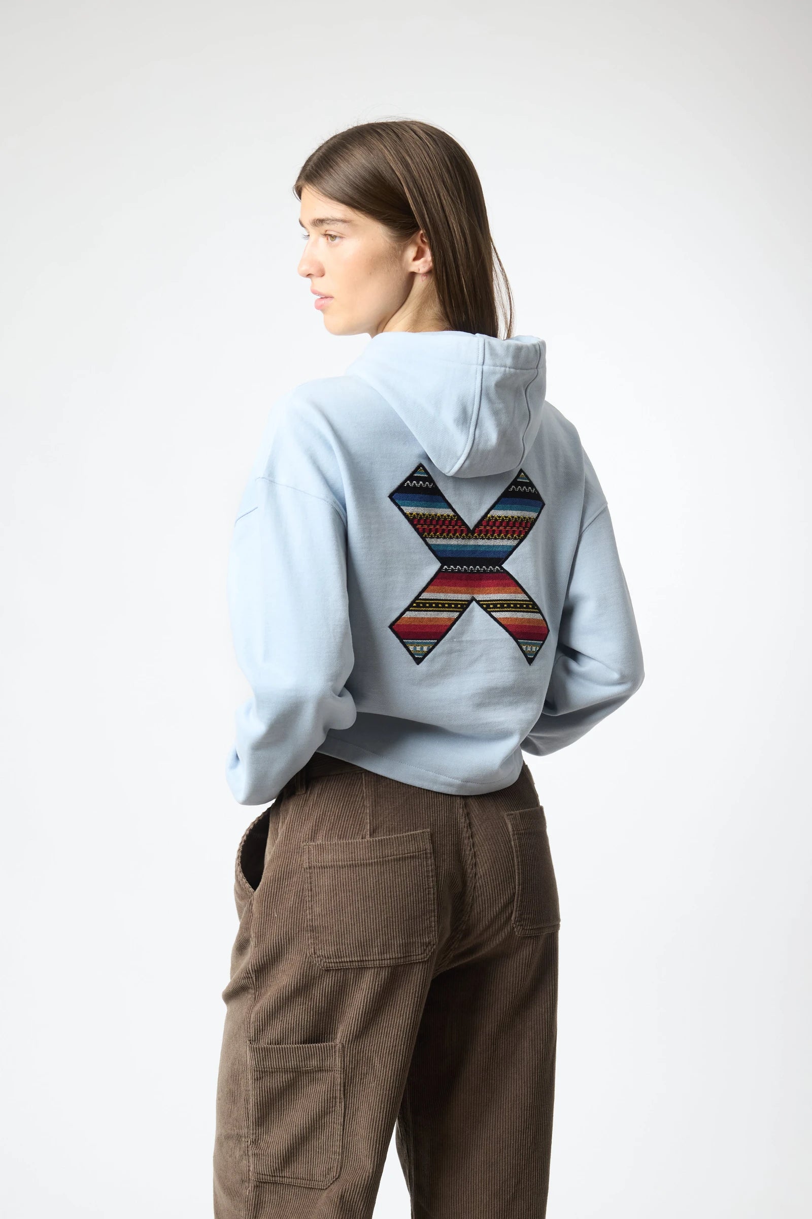 Hoodie with our classic X embroidered: front on the chest and back. Made of 100% organic cotton and crop fit.