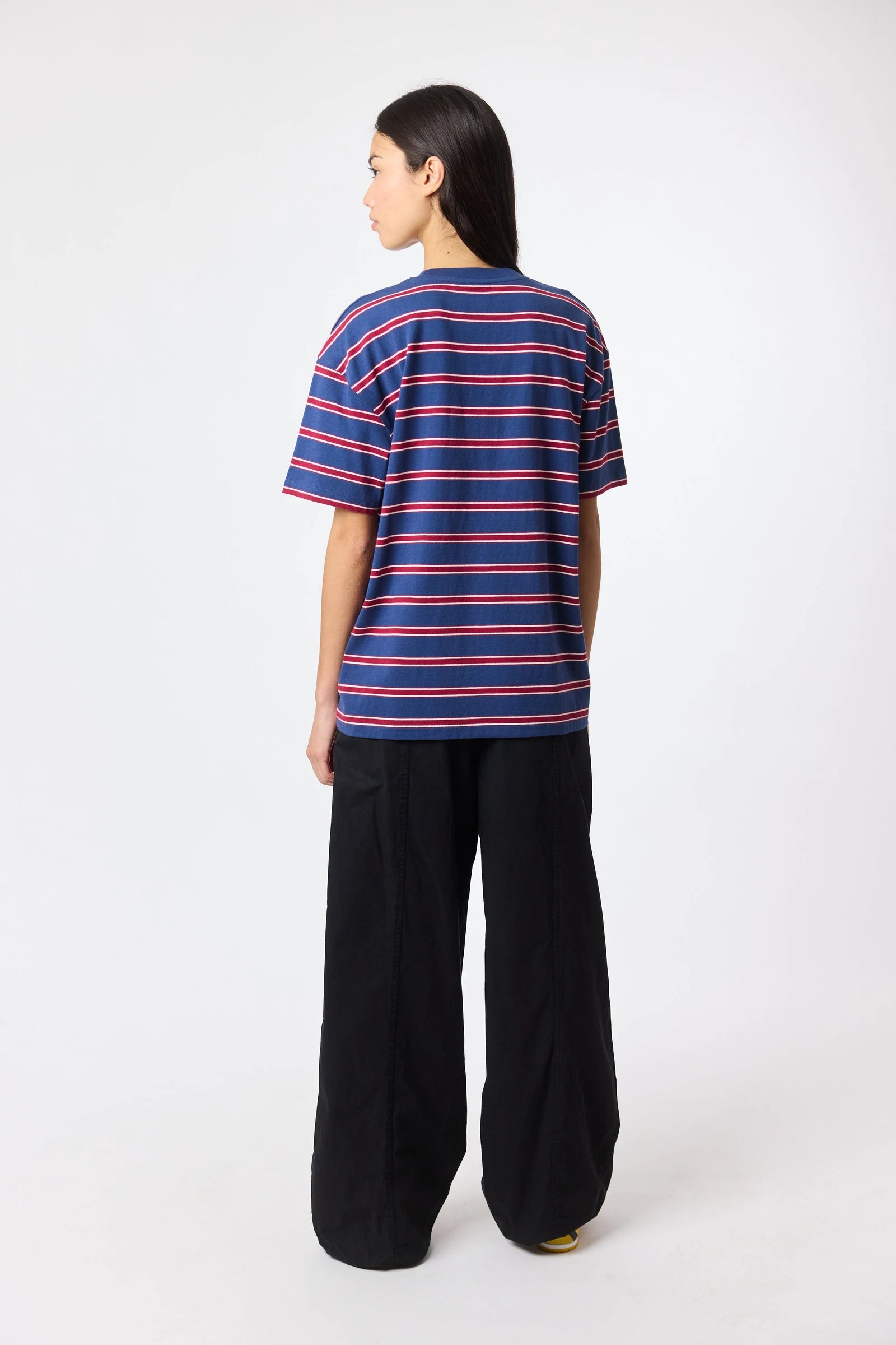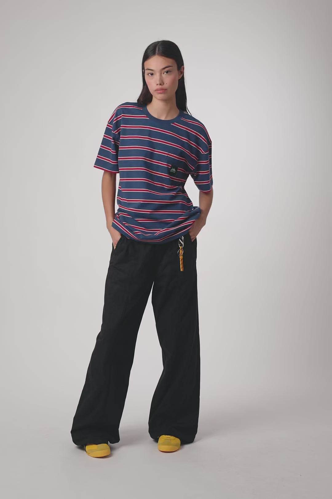Striped T-shirt with front embroidery on the chest. Made of 100% organic cotton and oversized fit.