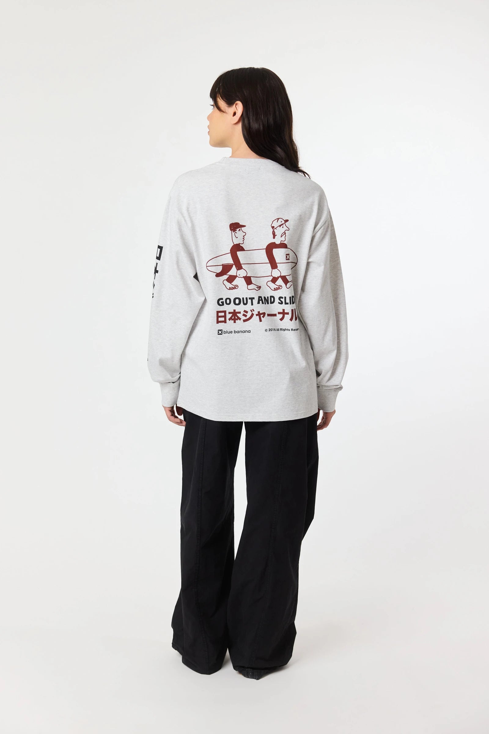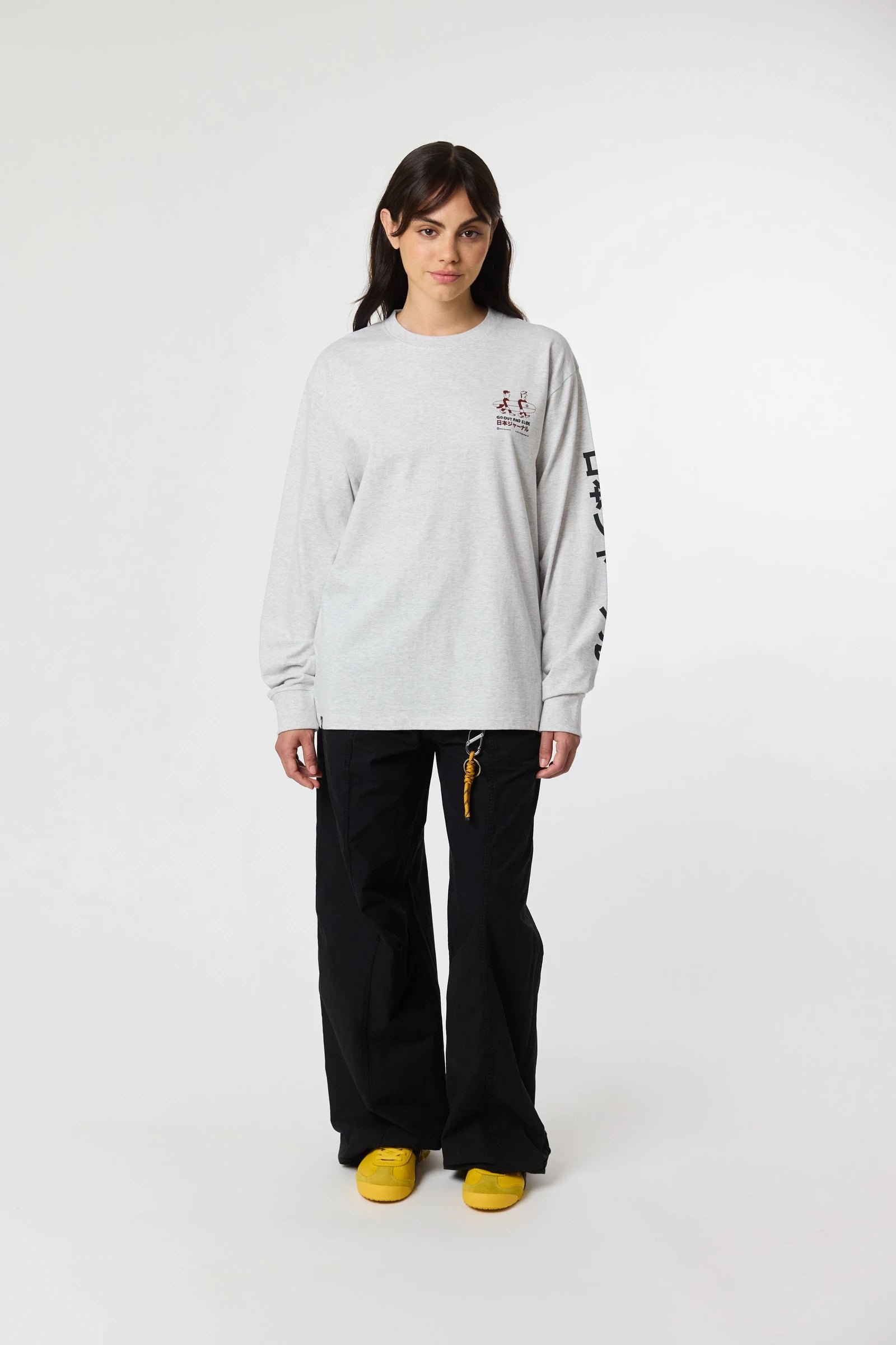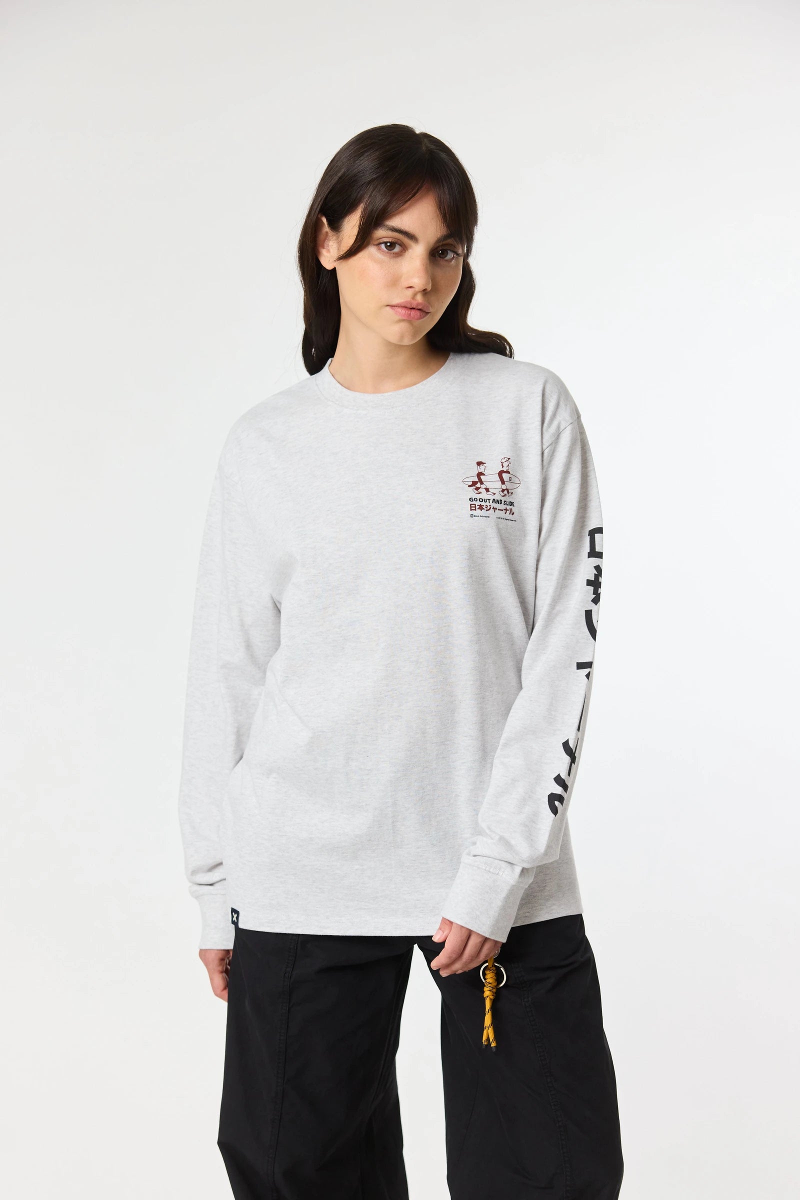 Long sleeve T-shirt with front print on the chest and back. Made of 100% organic cotton and regular fit.