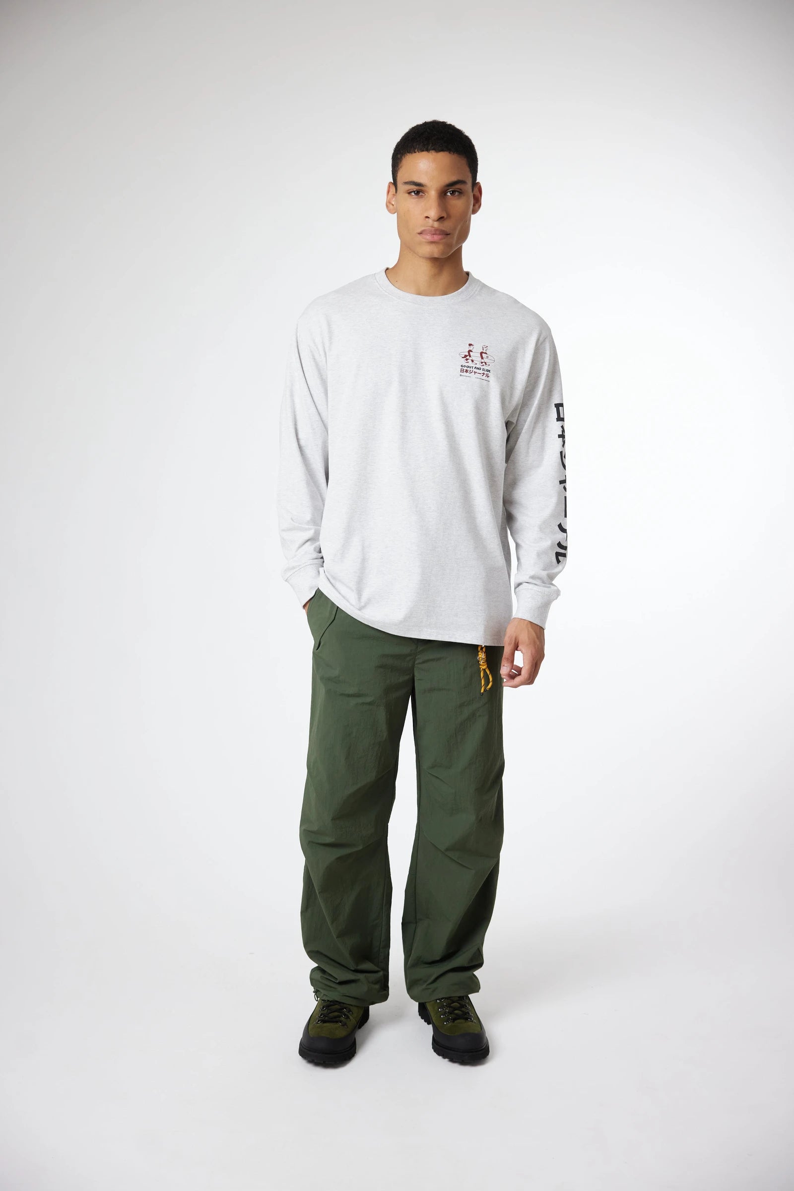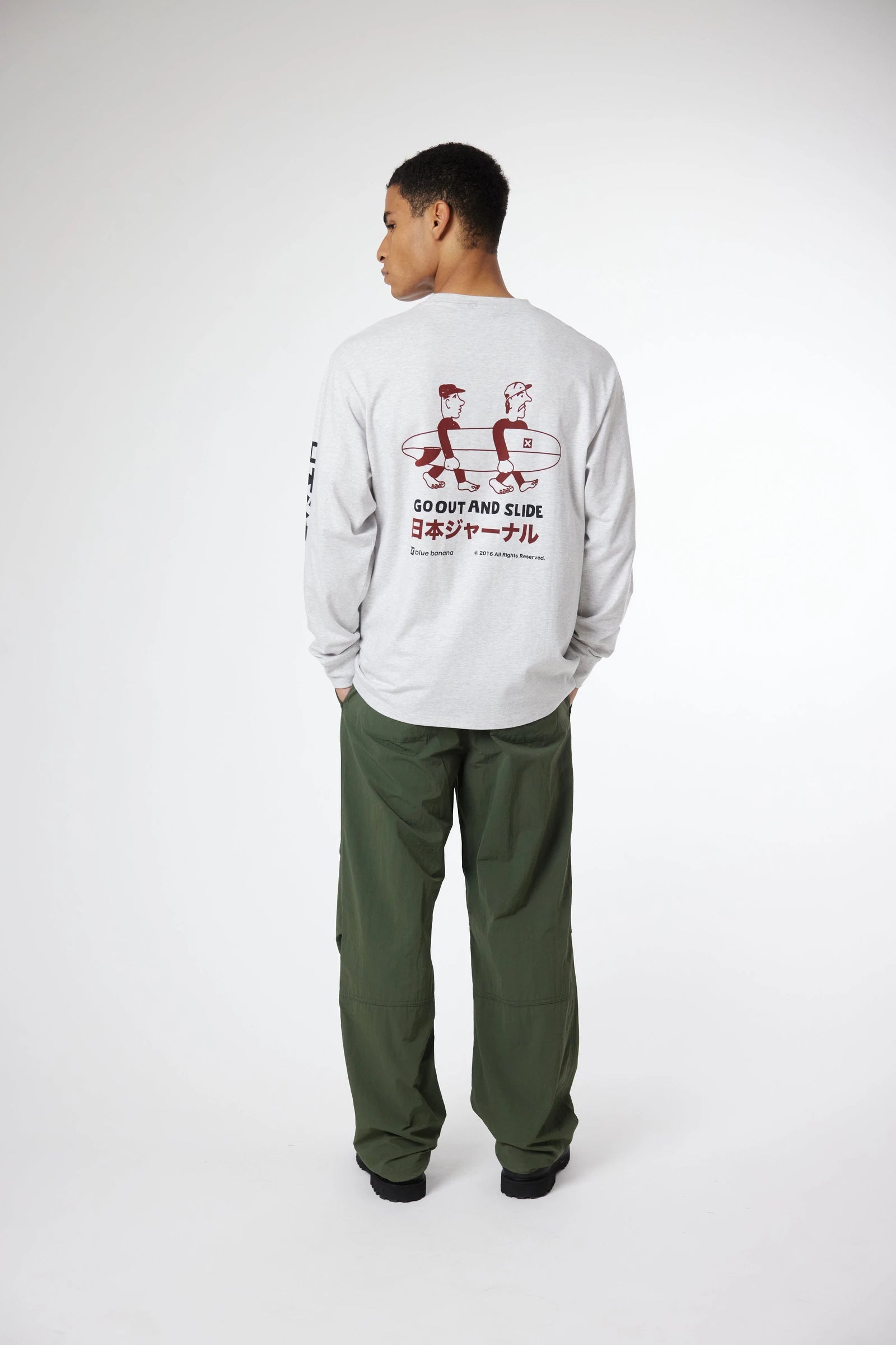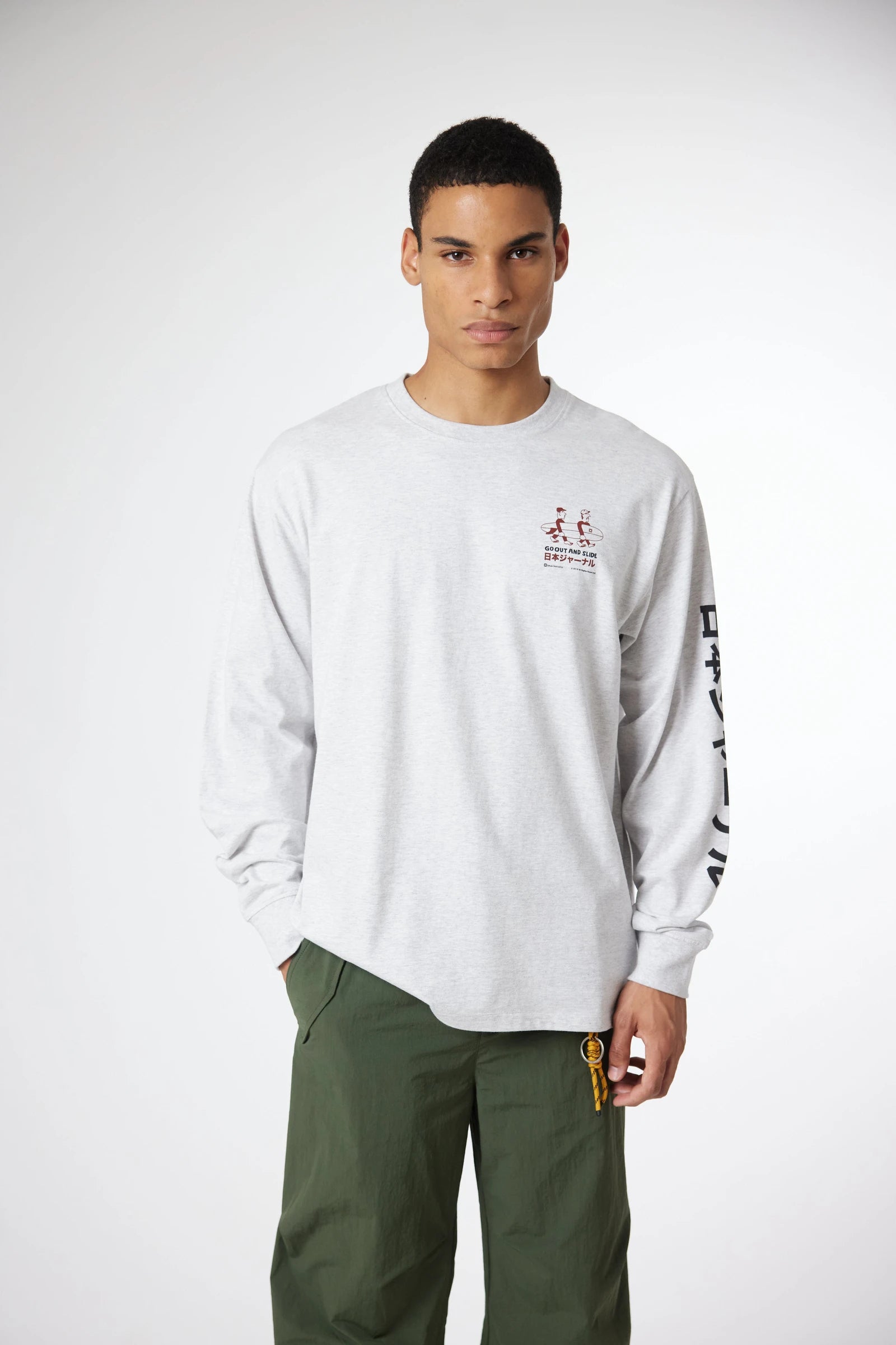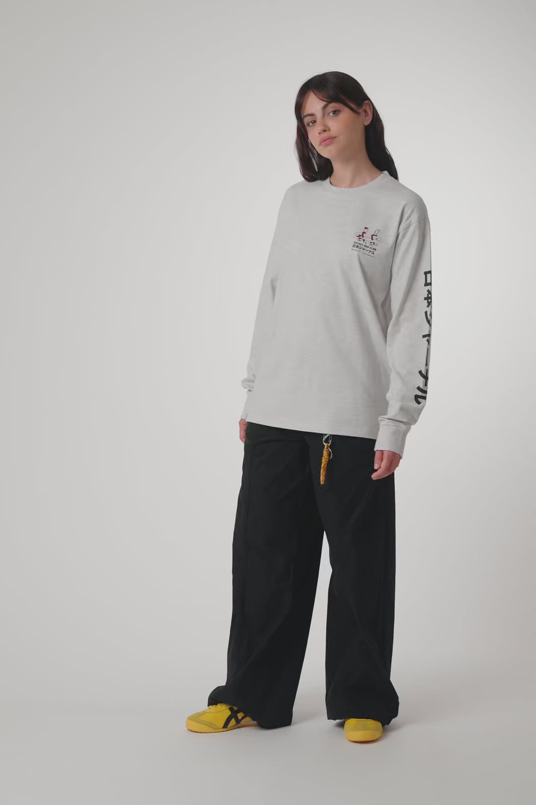 Long sleeve T-shirt with front print on the chest and back. Made of 100% organic cotton and regular fit.