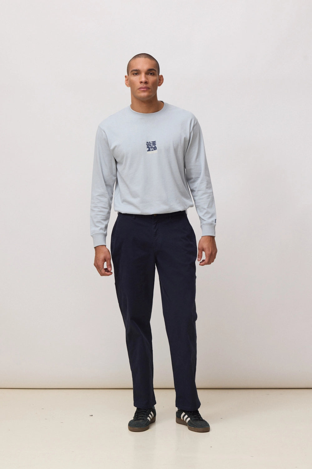 Pantalón jogger recto. Con cinturilla elástica ajustable con cordón, abertura con cremallera y botón personalizado. Bolsillos en costuras laterales. Bolsillo de ojal trasero con etiqueta decorativa y gusset en entrepierna. Confeccionado en un tejido 100% algodón.