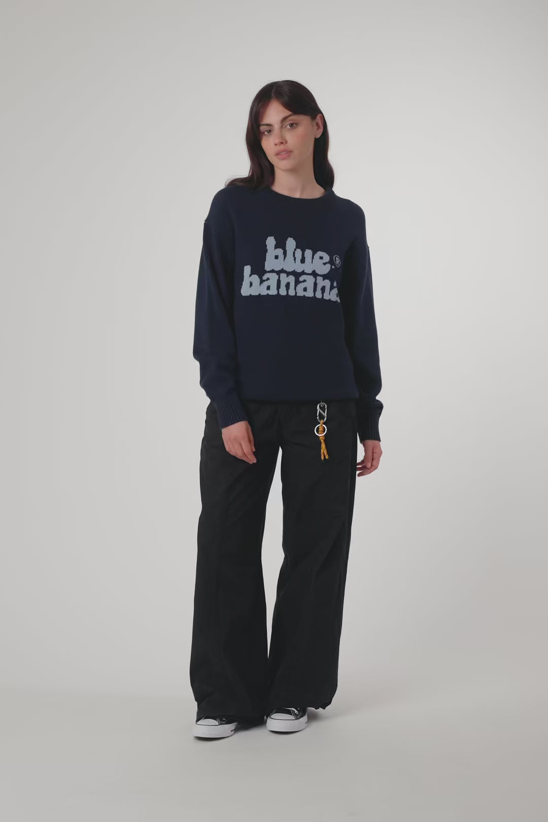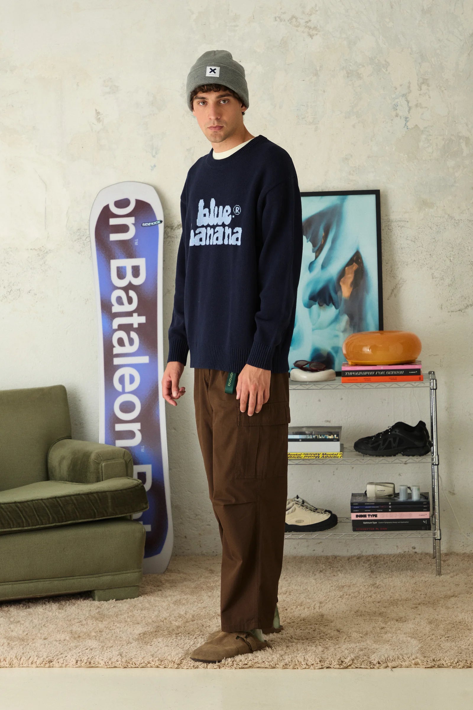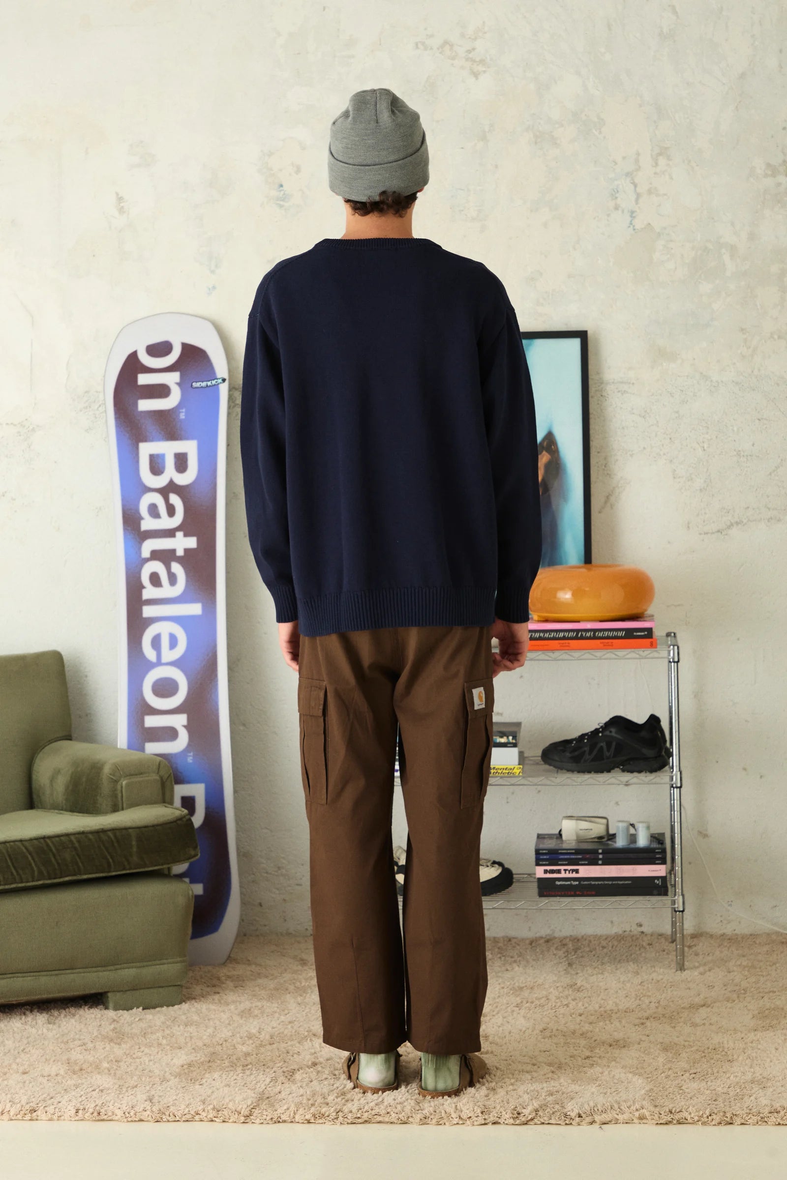 Knit sweater made of 100% cotton. With localized intarsia on chest. Crew neck and ribbed finishes. With decorative branding label at hem.
