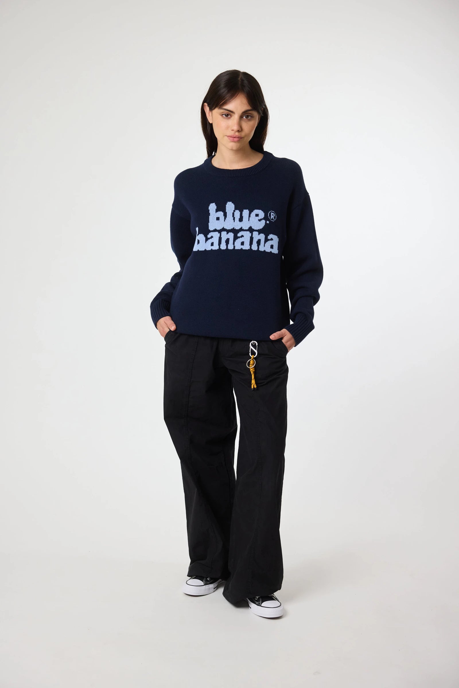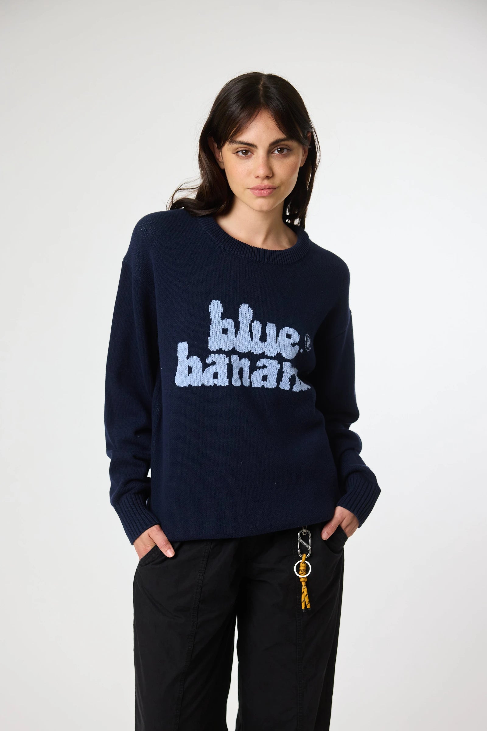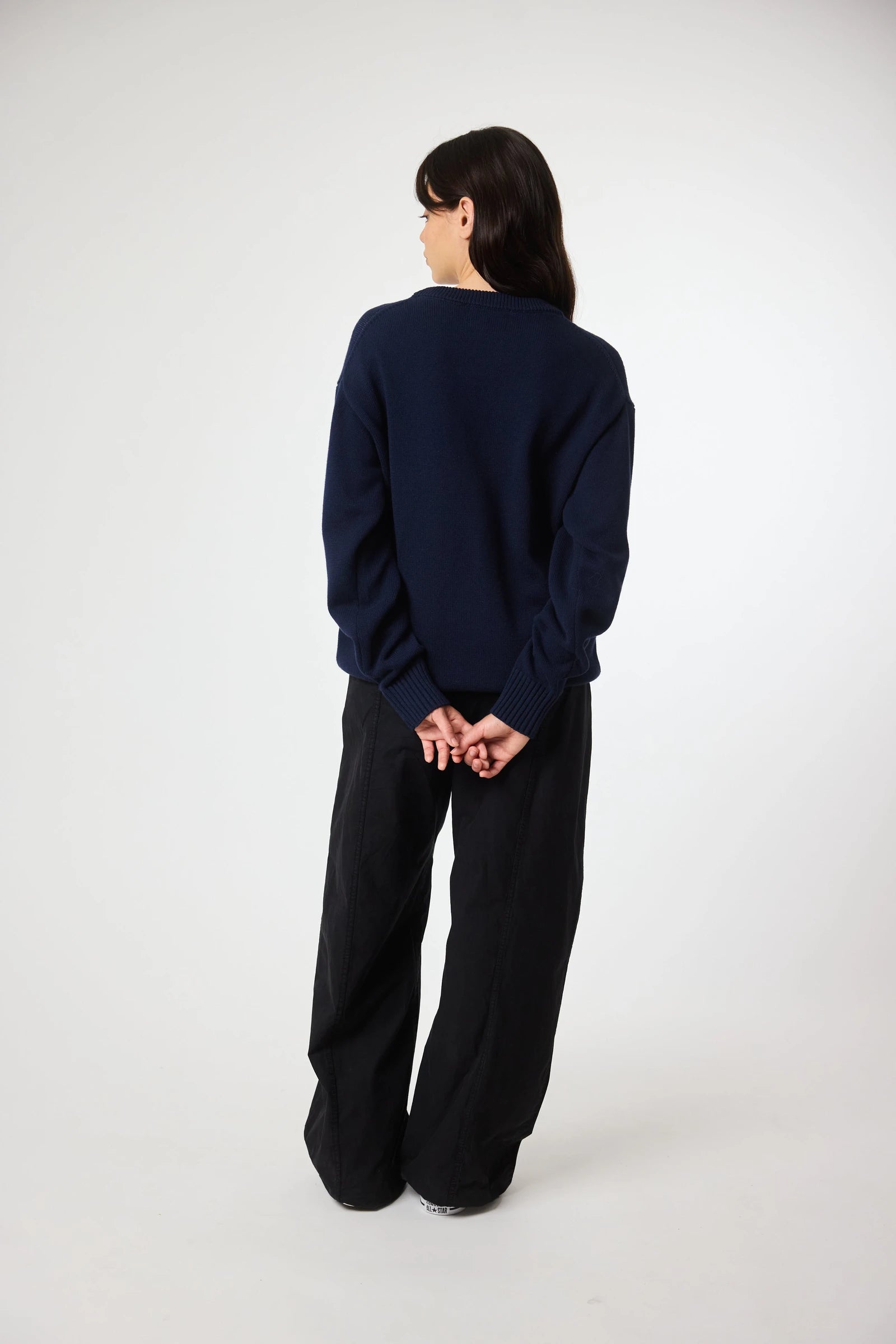Knit sweater made of 100% cotton. With localized intarsia on chest. Crew neck and ribbed finishes. With decorative branding label at hem.