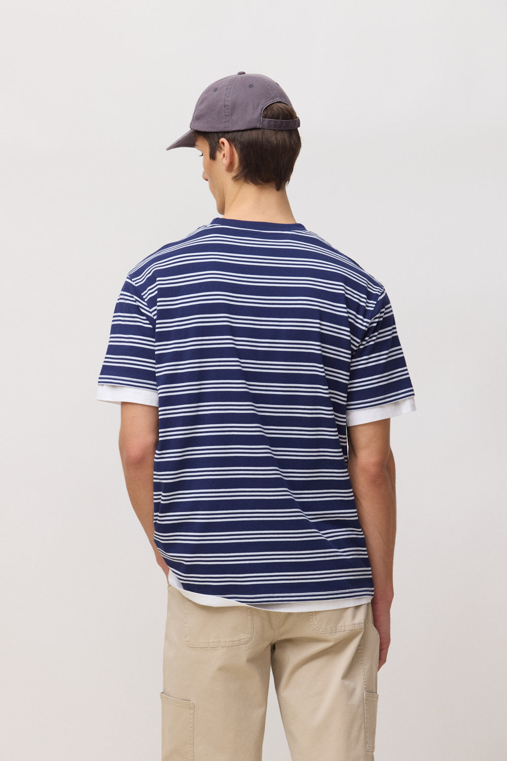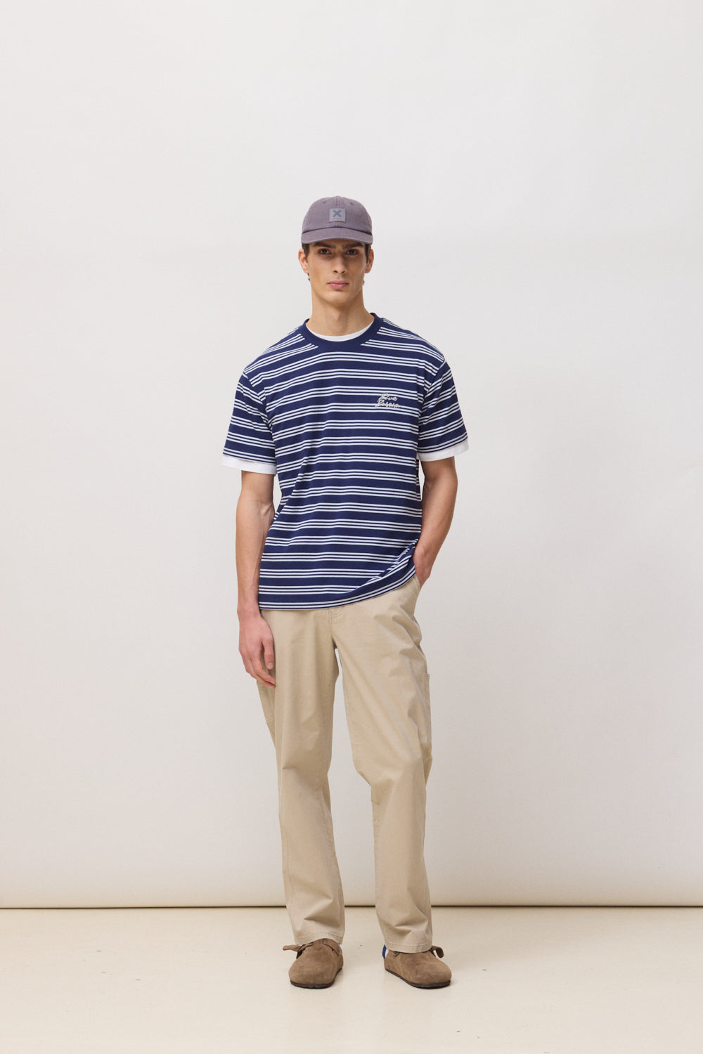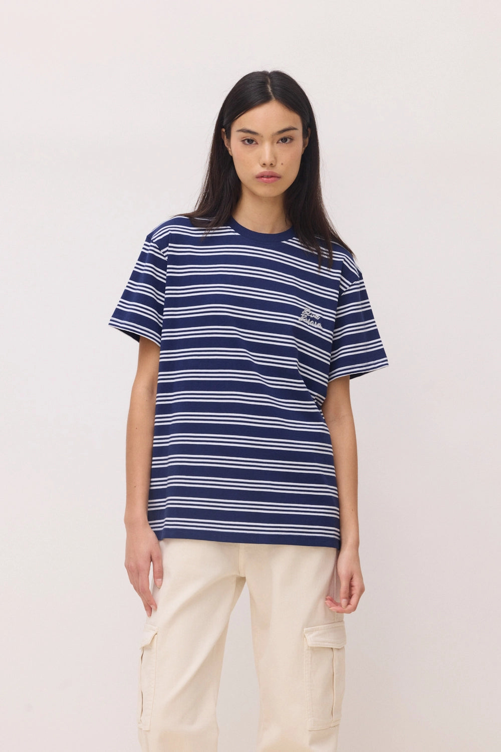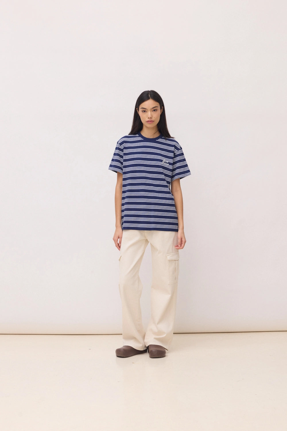 Striped T-shirt with front chest embroidery. Made from 100% organic cotton. Regular fit with a weight of 200 GSM.