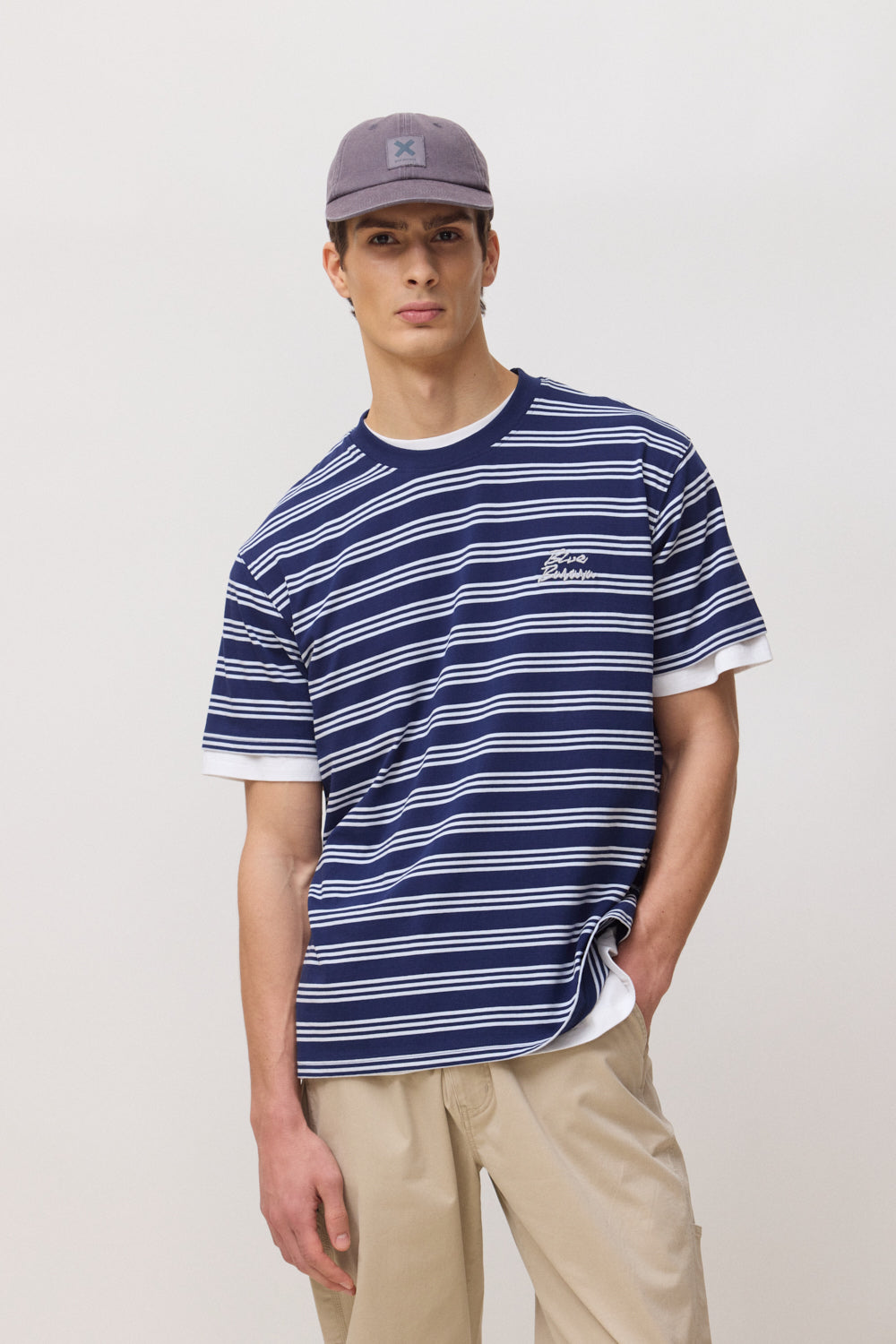 - Camiseta a rayas con bordado delantero en la parte del pecho