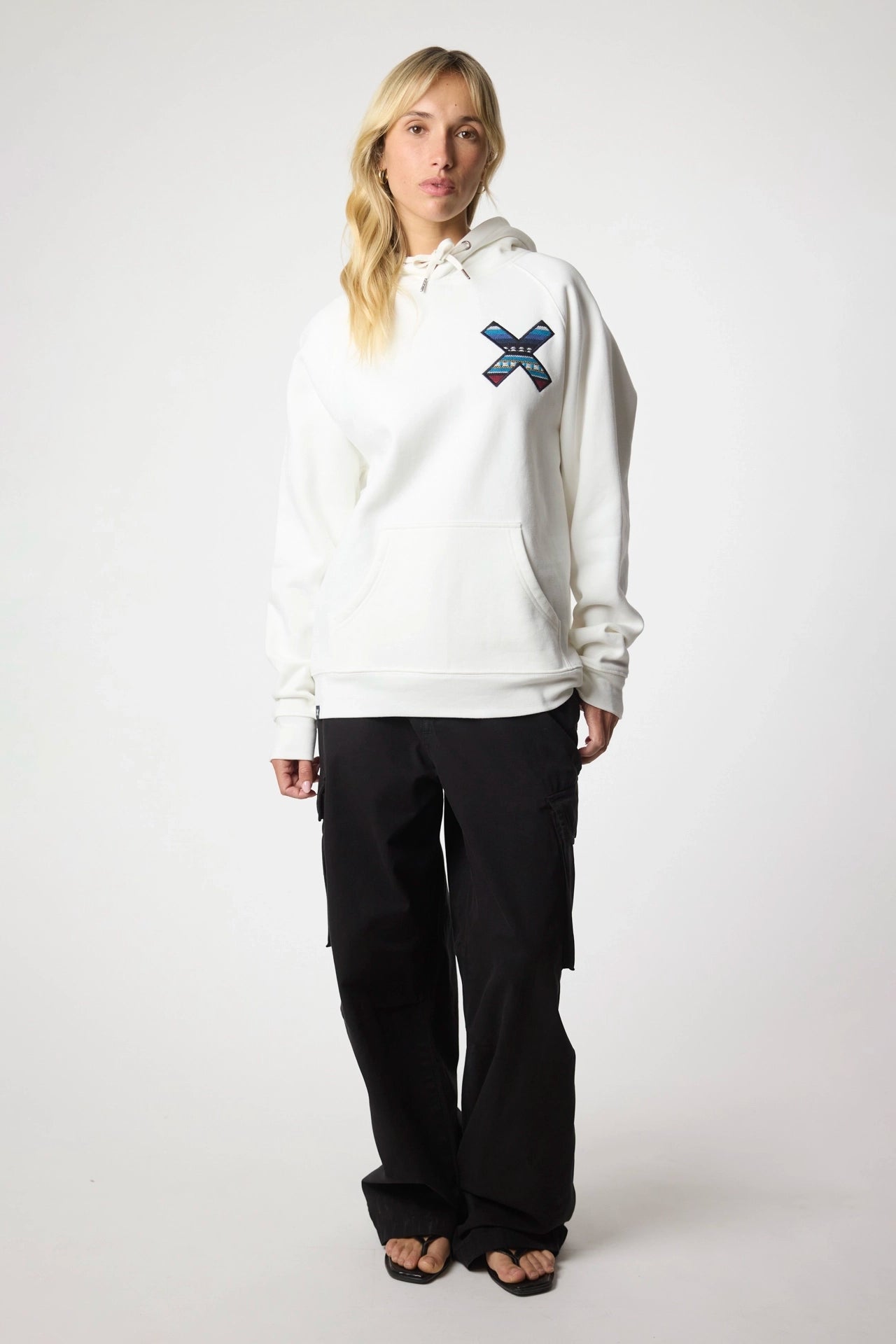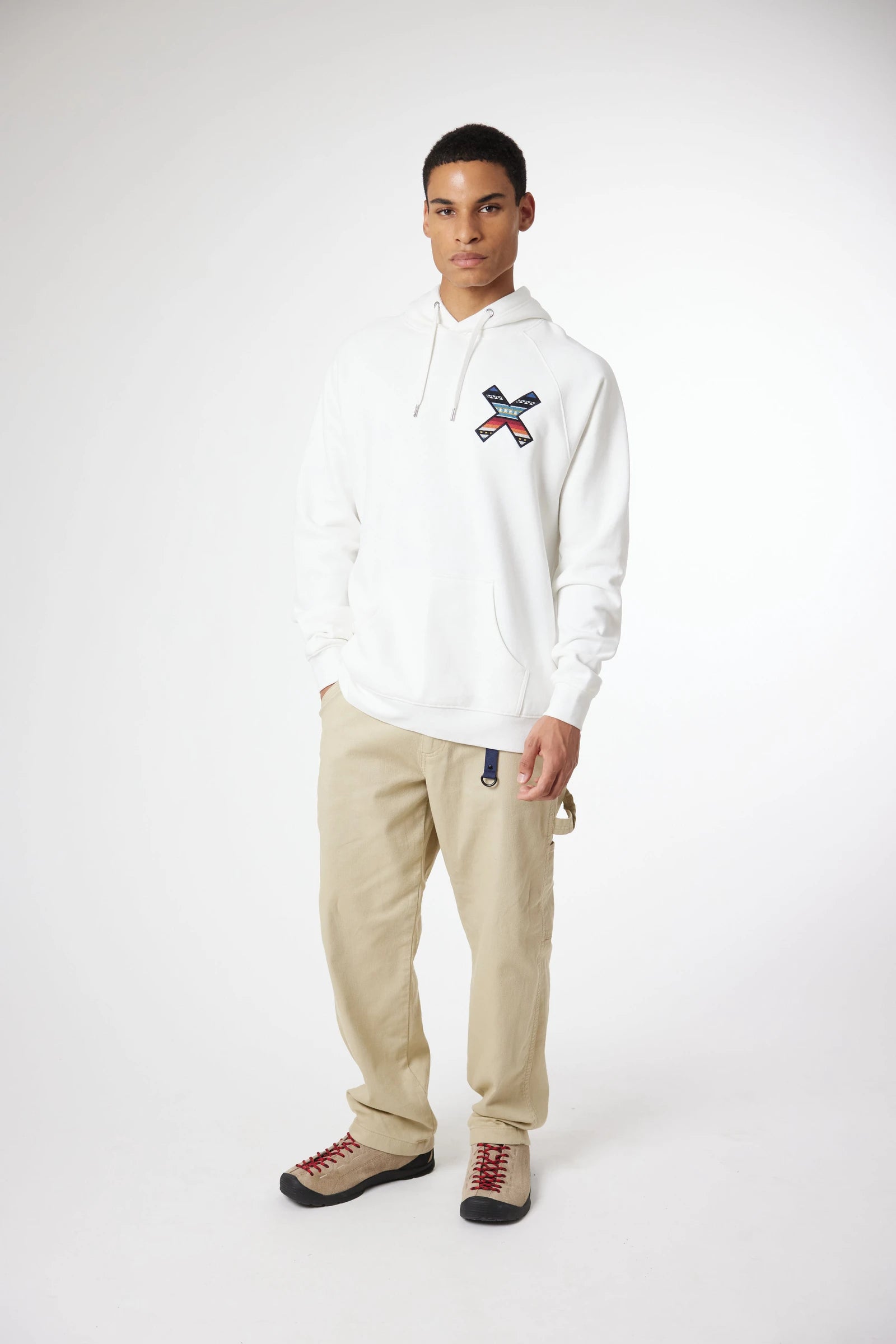 Hoodie with our classic embroidered X: front on the chest and back on the back. Lower central front pocket with opening on both sides. Made with 100% organic cotton and regular fit cut.