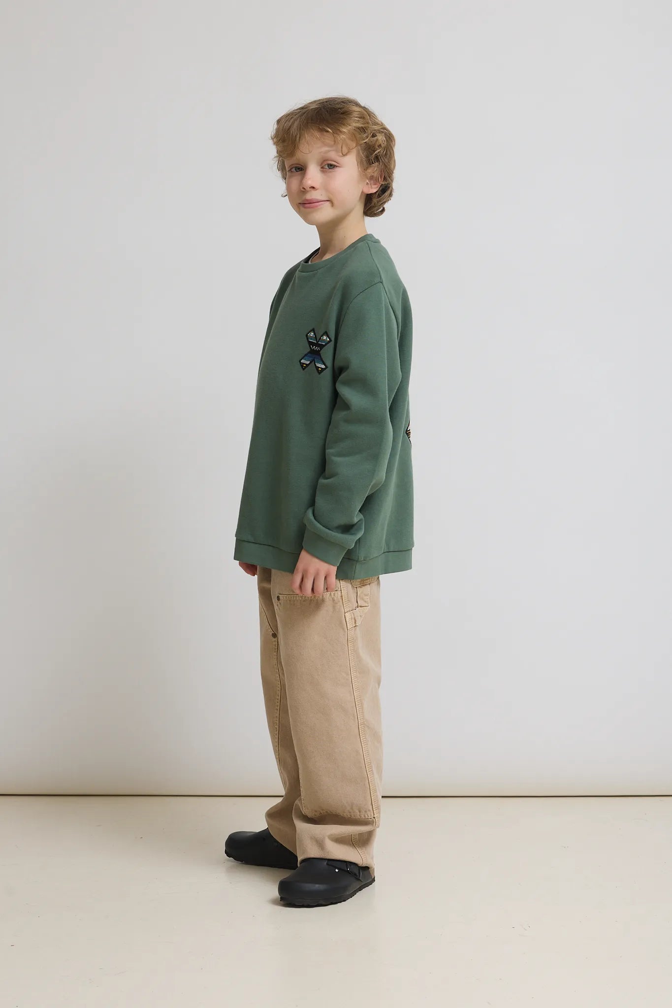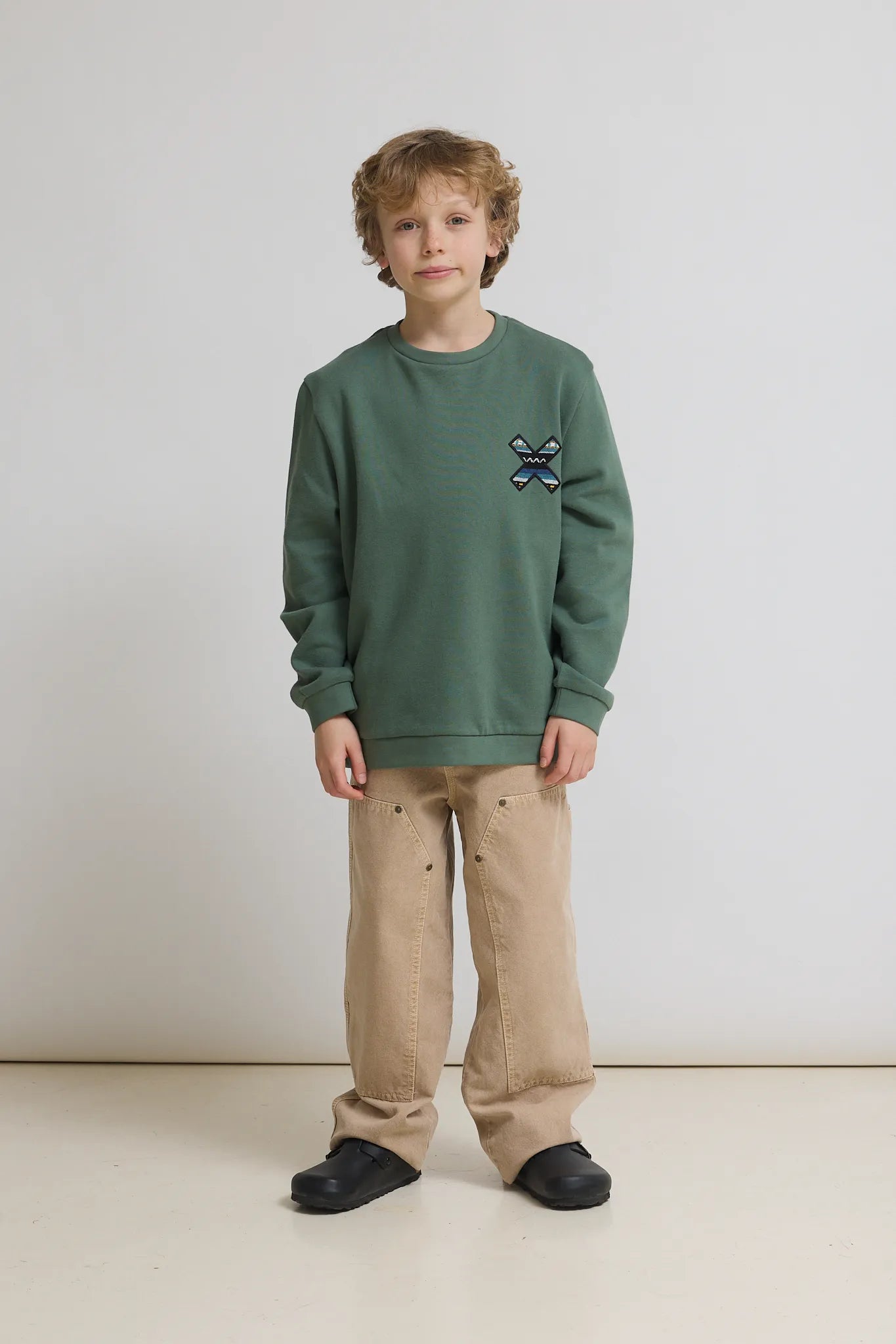 Sudadera con nuestra clásica X bordada: delantera en el pecho y trasera en la espalda. Confeccionada con 100% algodón orgánico.
