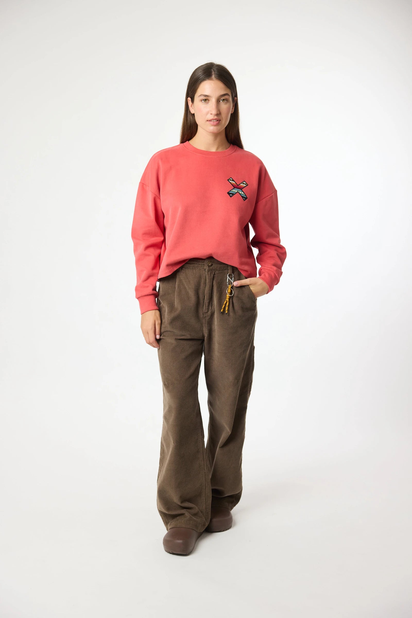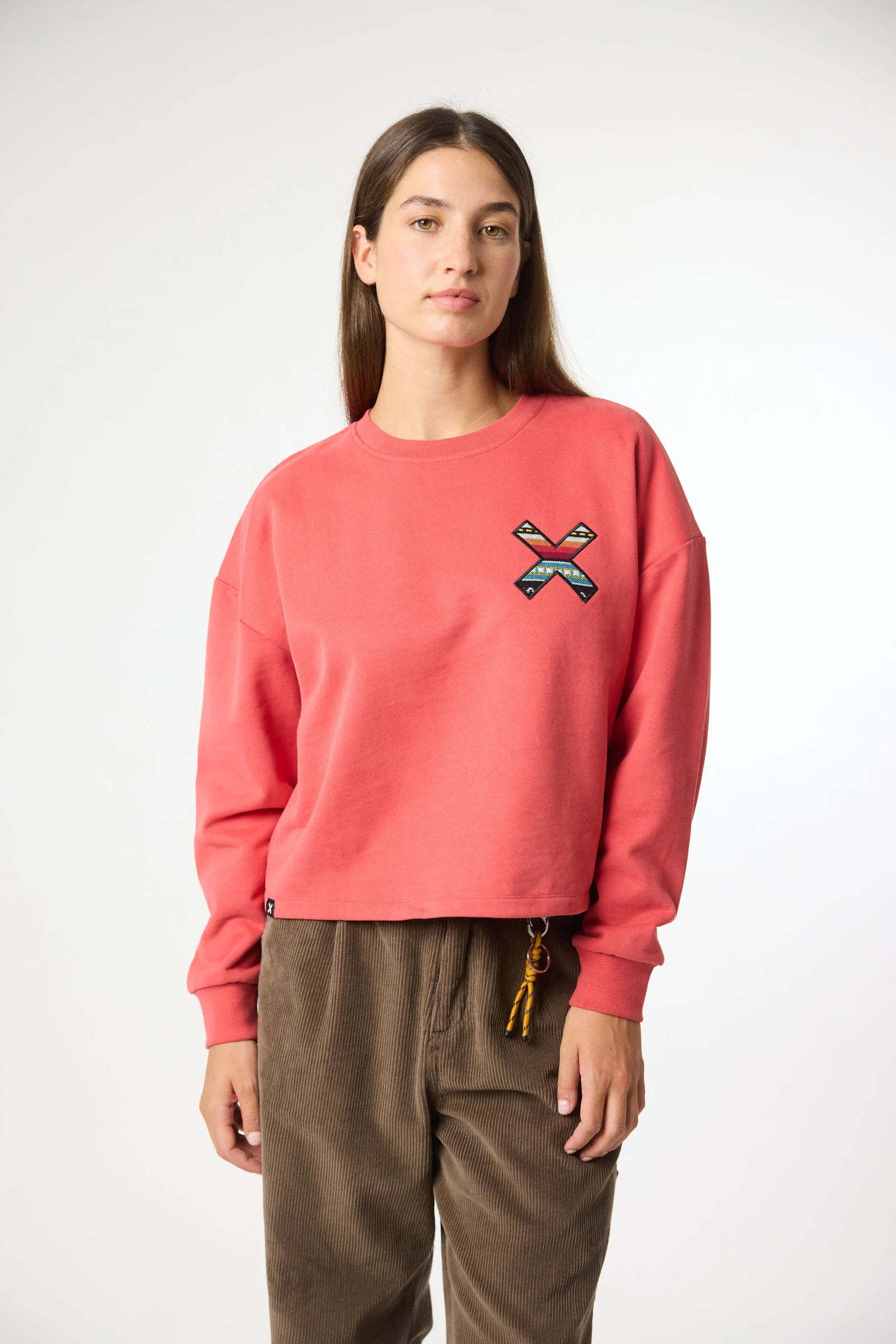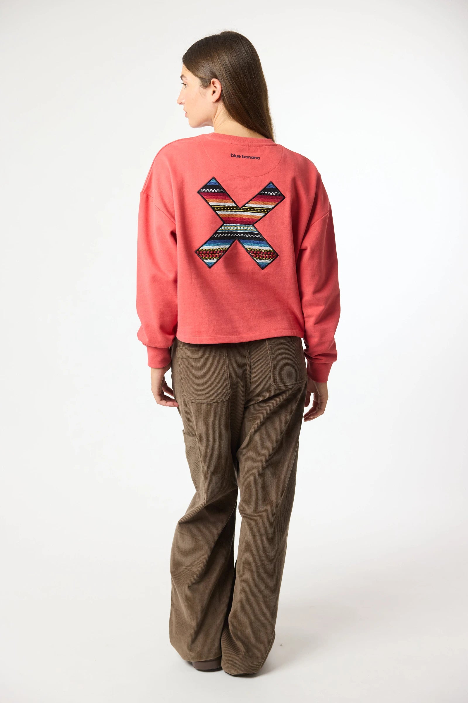 Sweatshirt with our classic X embroidered: front on the chest and back. Made of 100% organic cotton and crop fit.