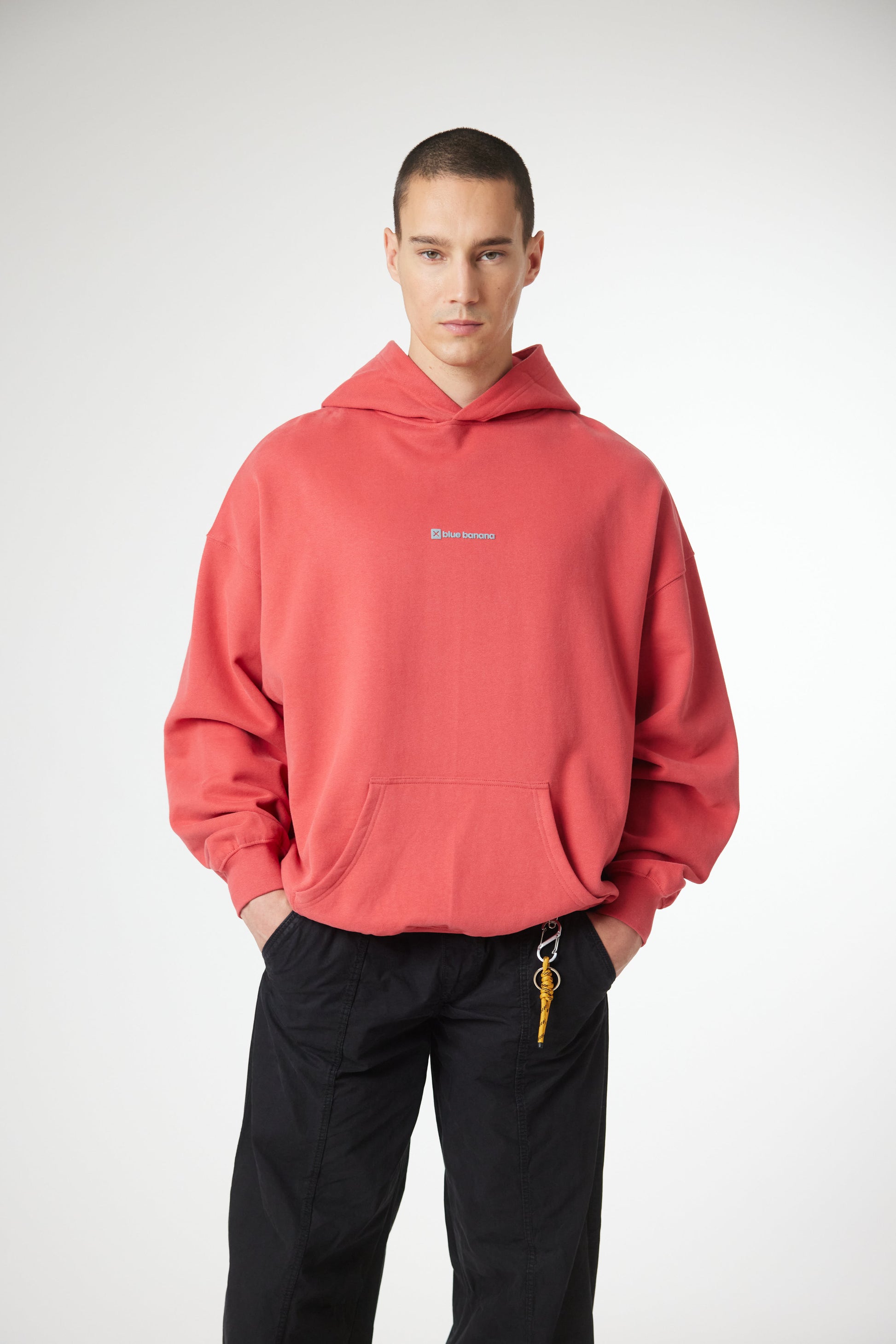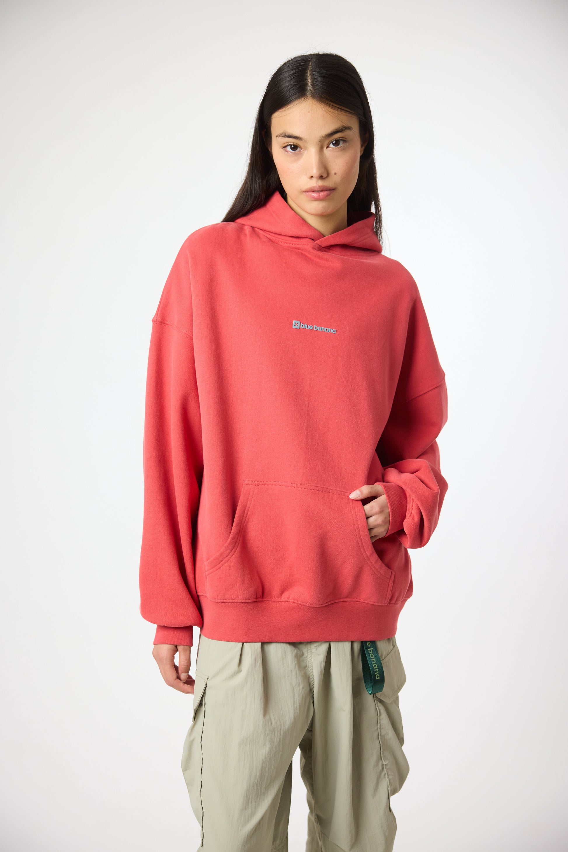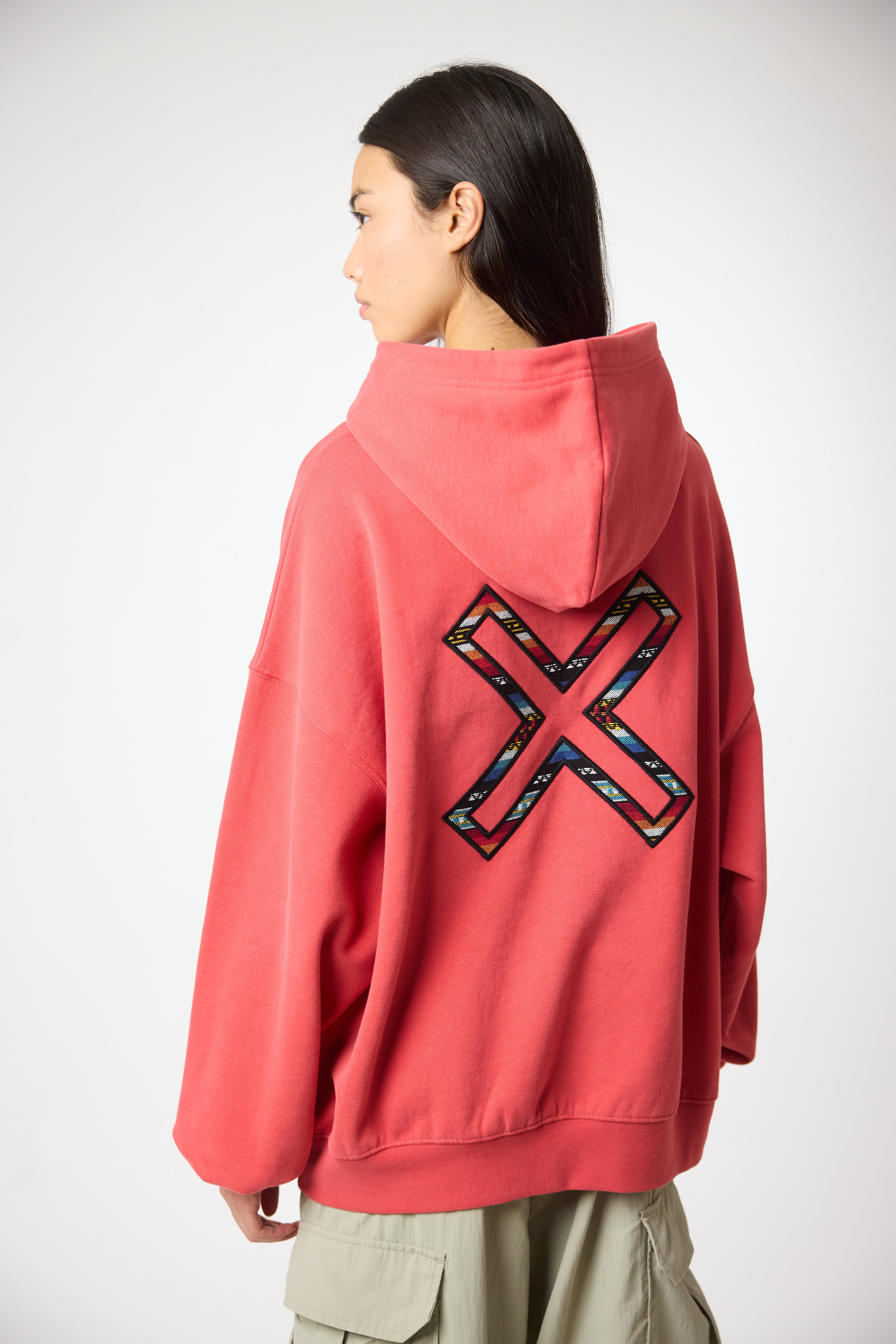 Hoodie with front print and our classic X on the back. Front lower central pocket with openings on both sides. Made of 100% organic cotton and boxy fit.
