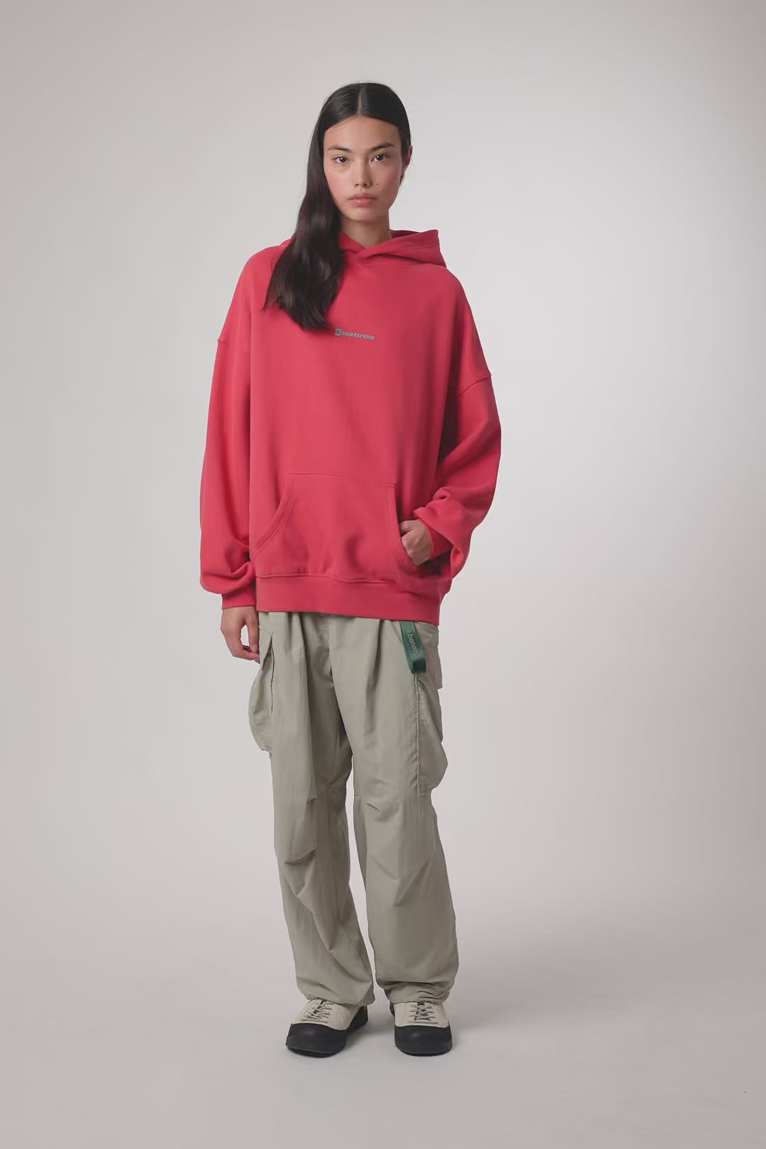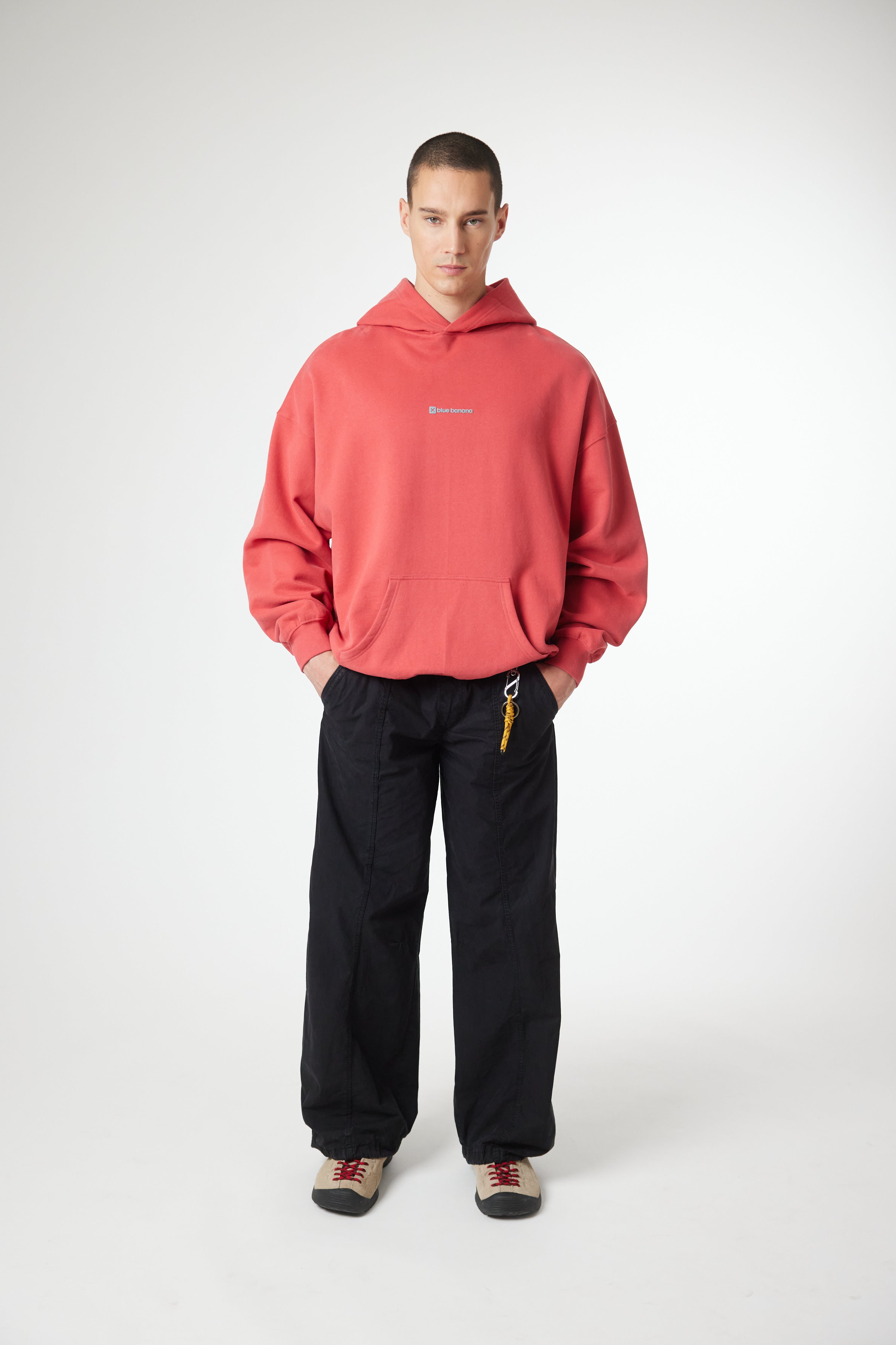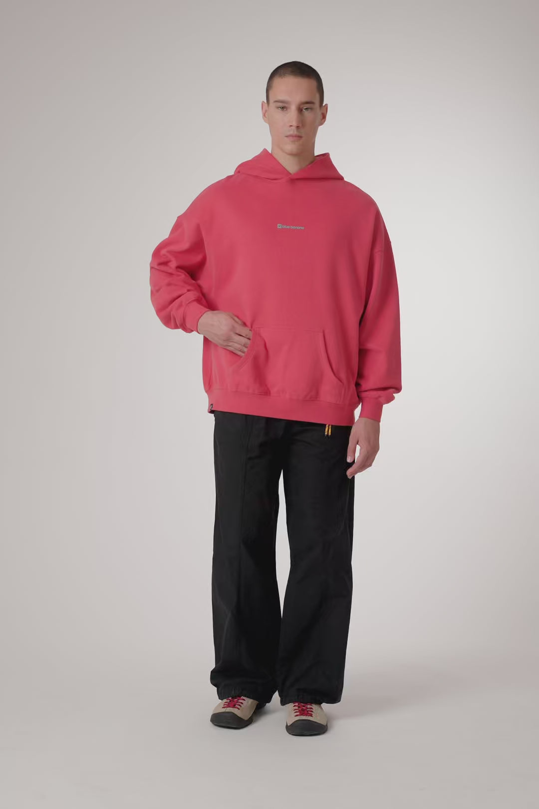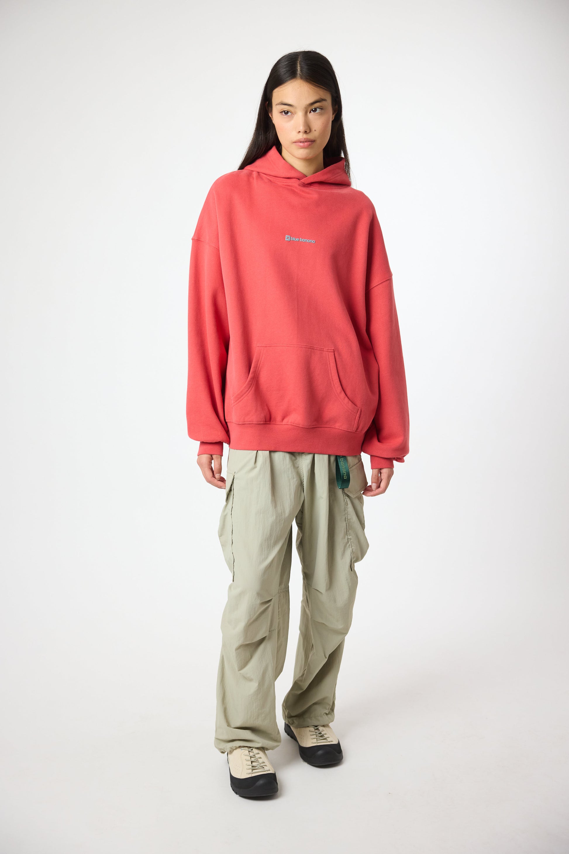 Hoodie with front print and our classic X on the back. Front lower central pocket with openings on both sides. Made of 100% organic cotton and boxy fit.