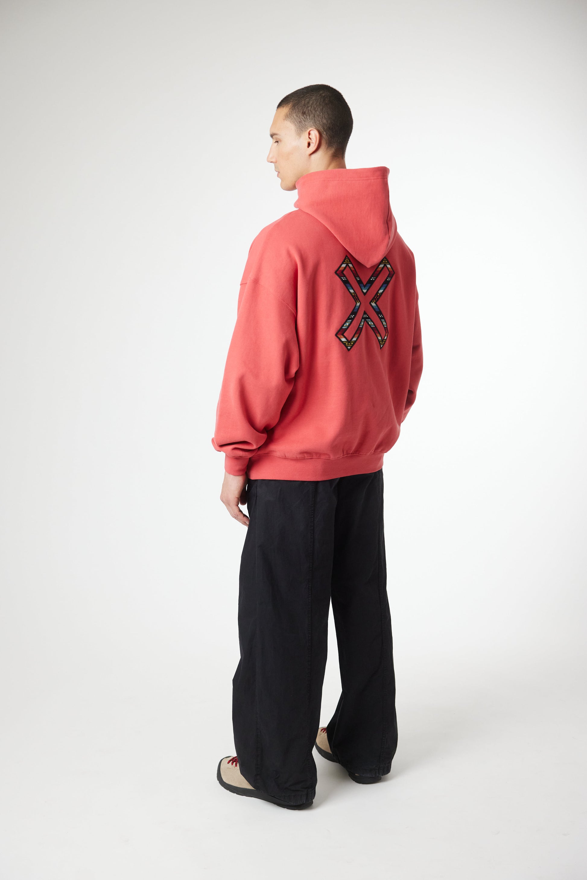 Hoodie with front print and our classic X on the back.