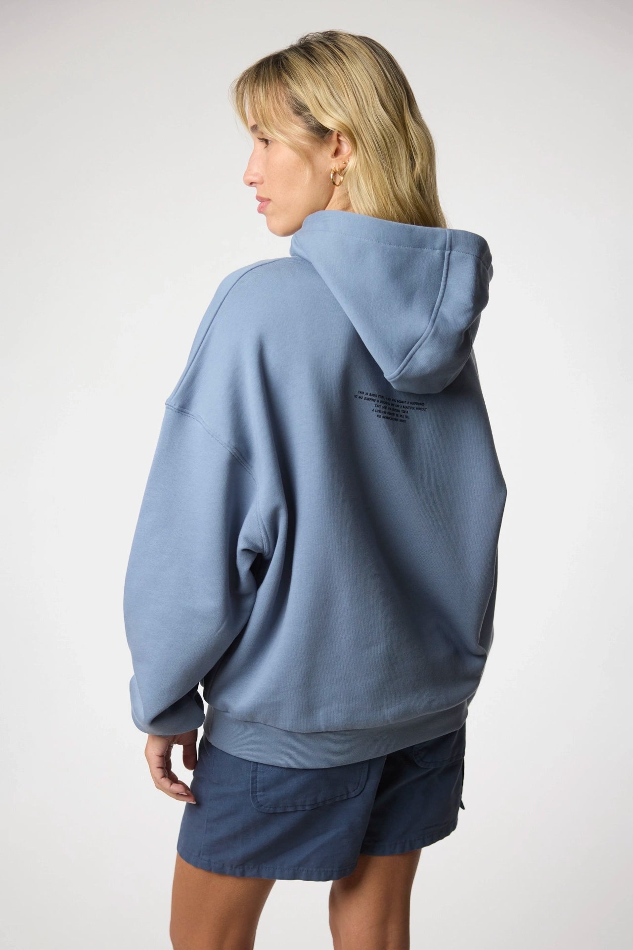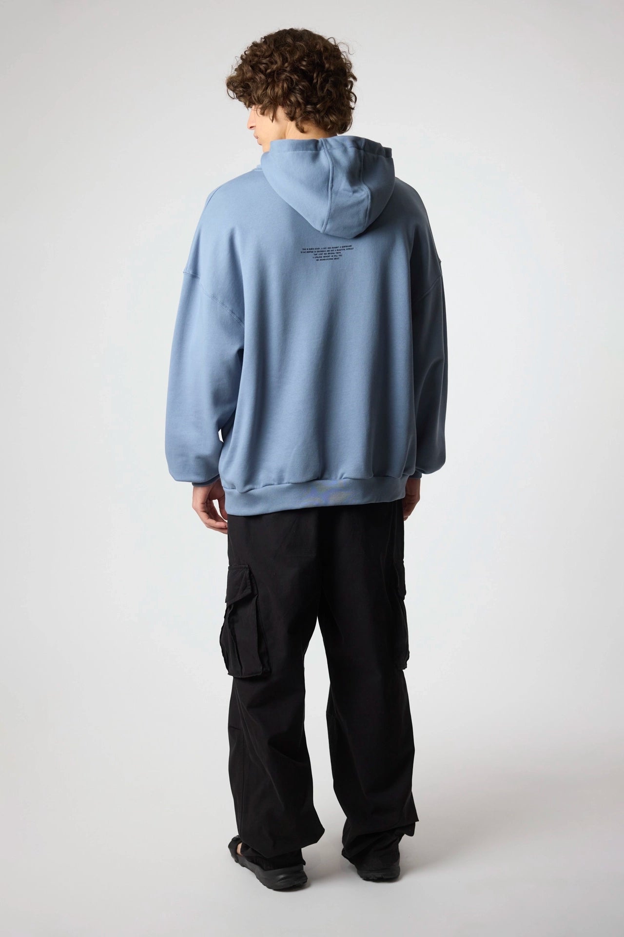 Hoodie with front print. Made from 100% organic cotton with a front central pocket. Unbrushed for a lighter summer feel. Boxy fit.