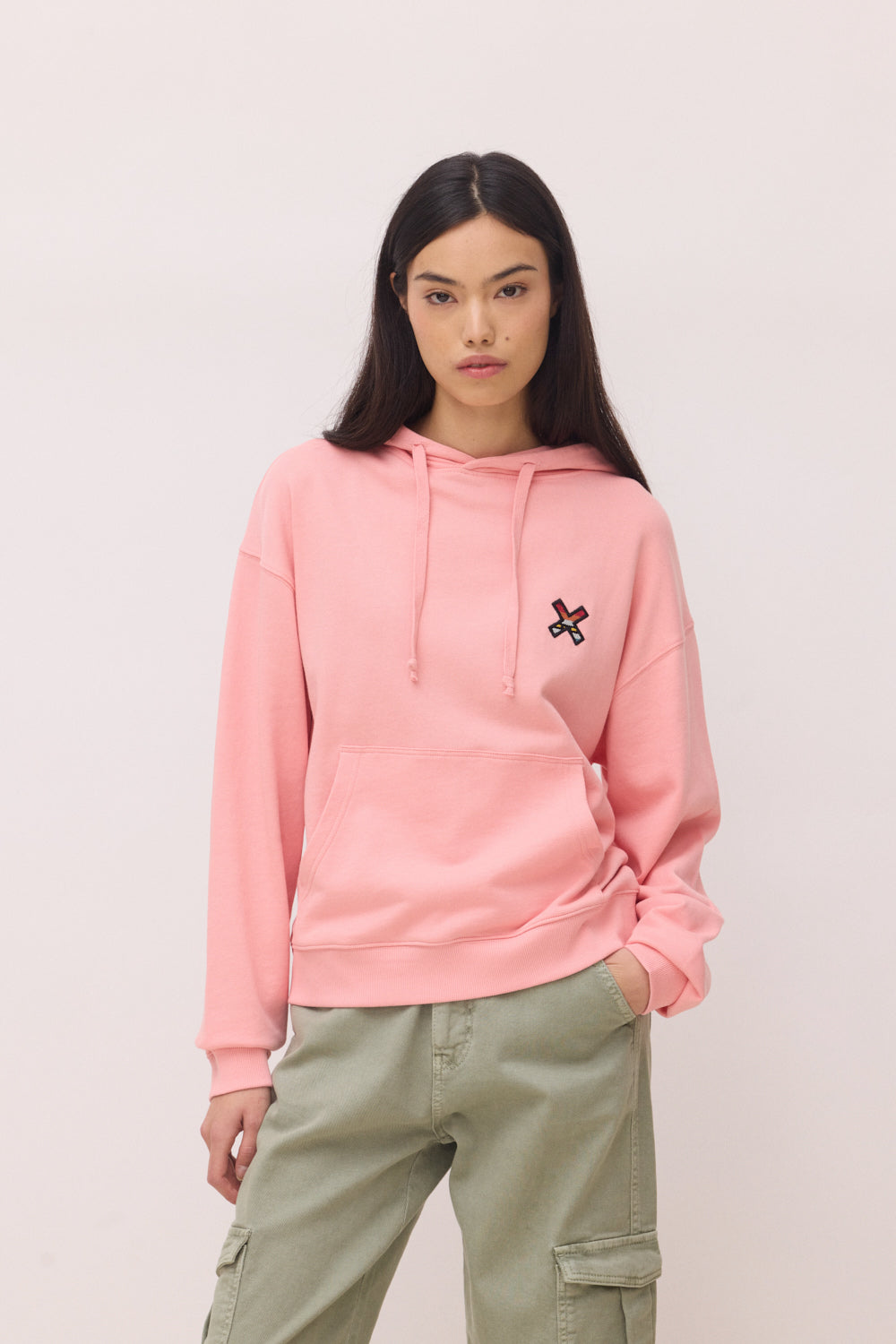 Hooded sweatshirt with our classic X on the chest and back. Lower central front pocket with opening on both sides. Made with 100% organic cotton.