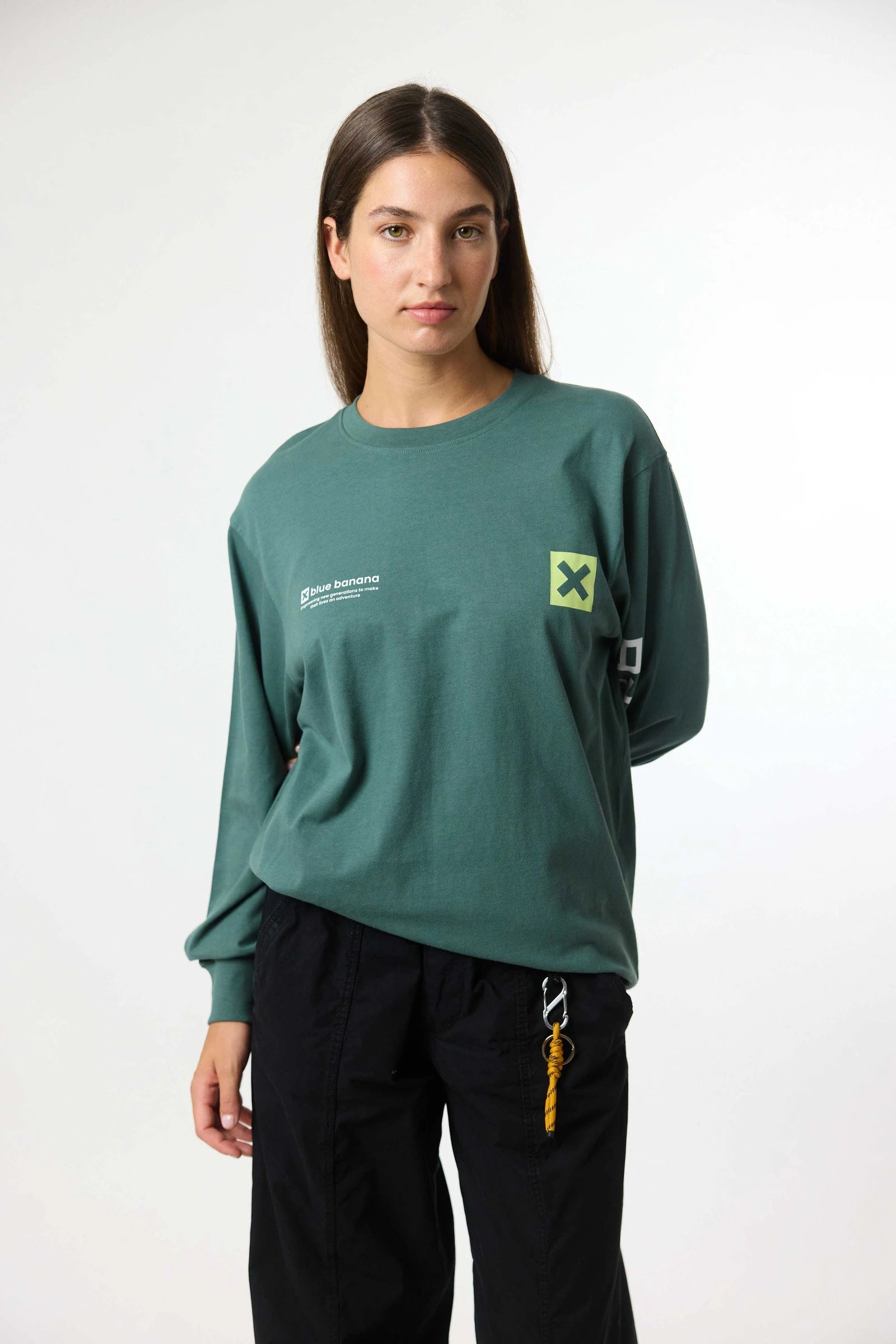 Long sleeve T-shirt with front and back print. Made of 100% organic cotton and regular fit.