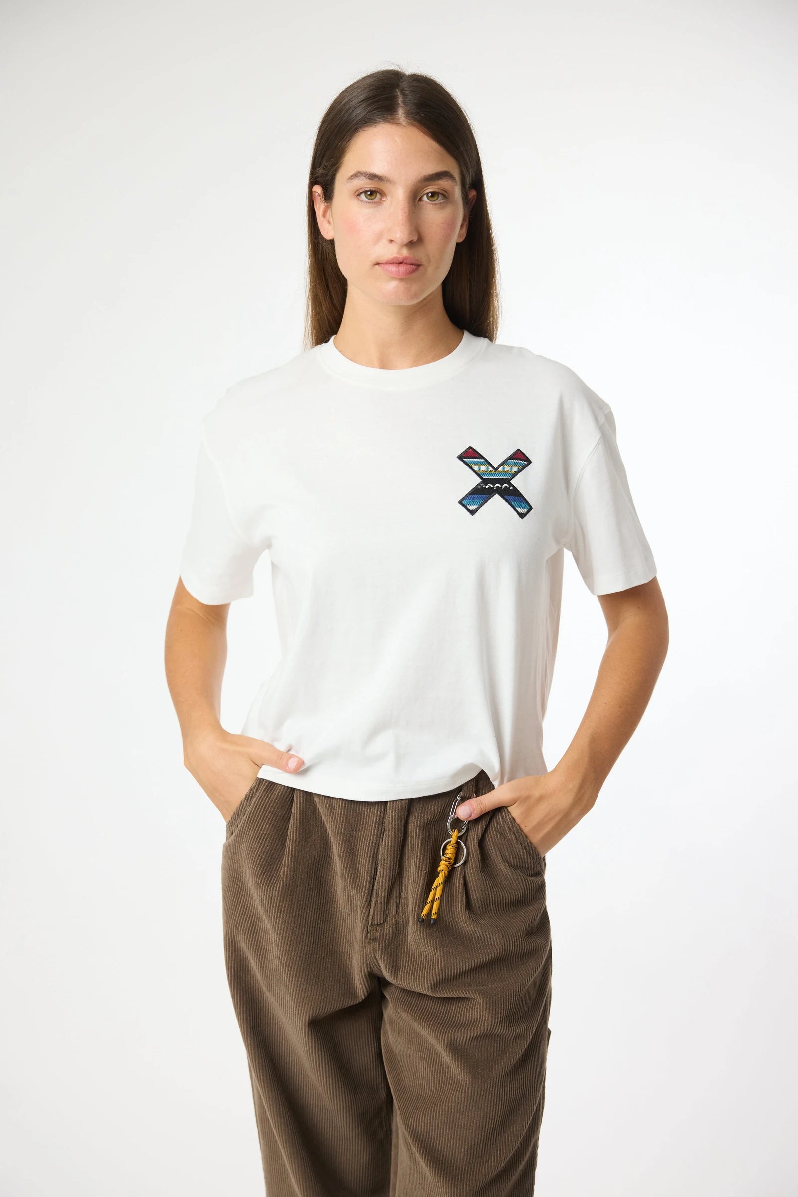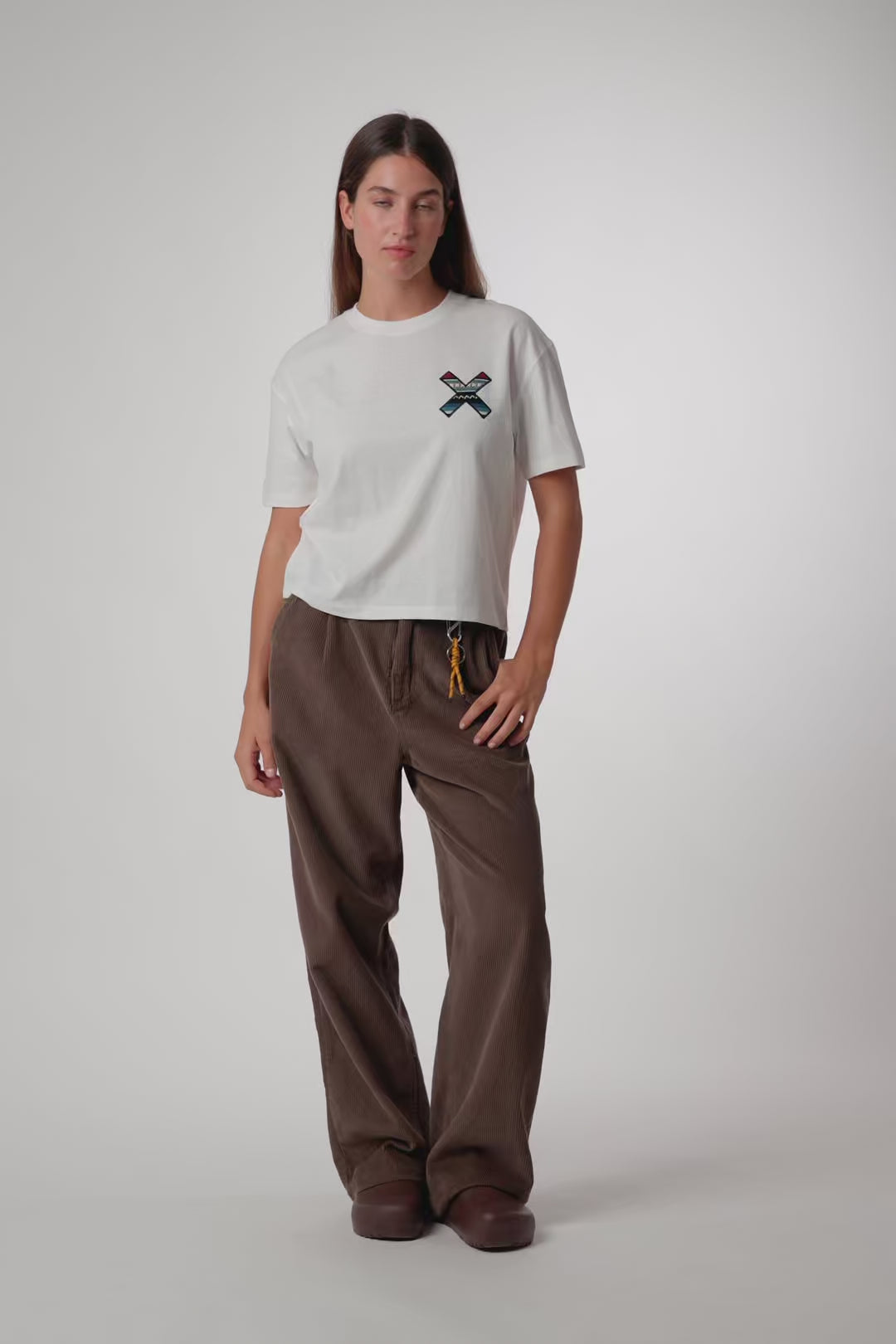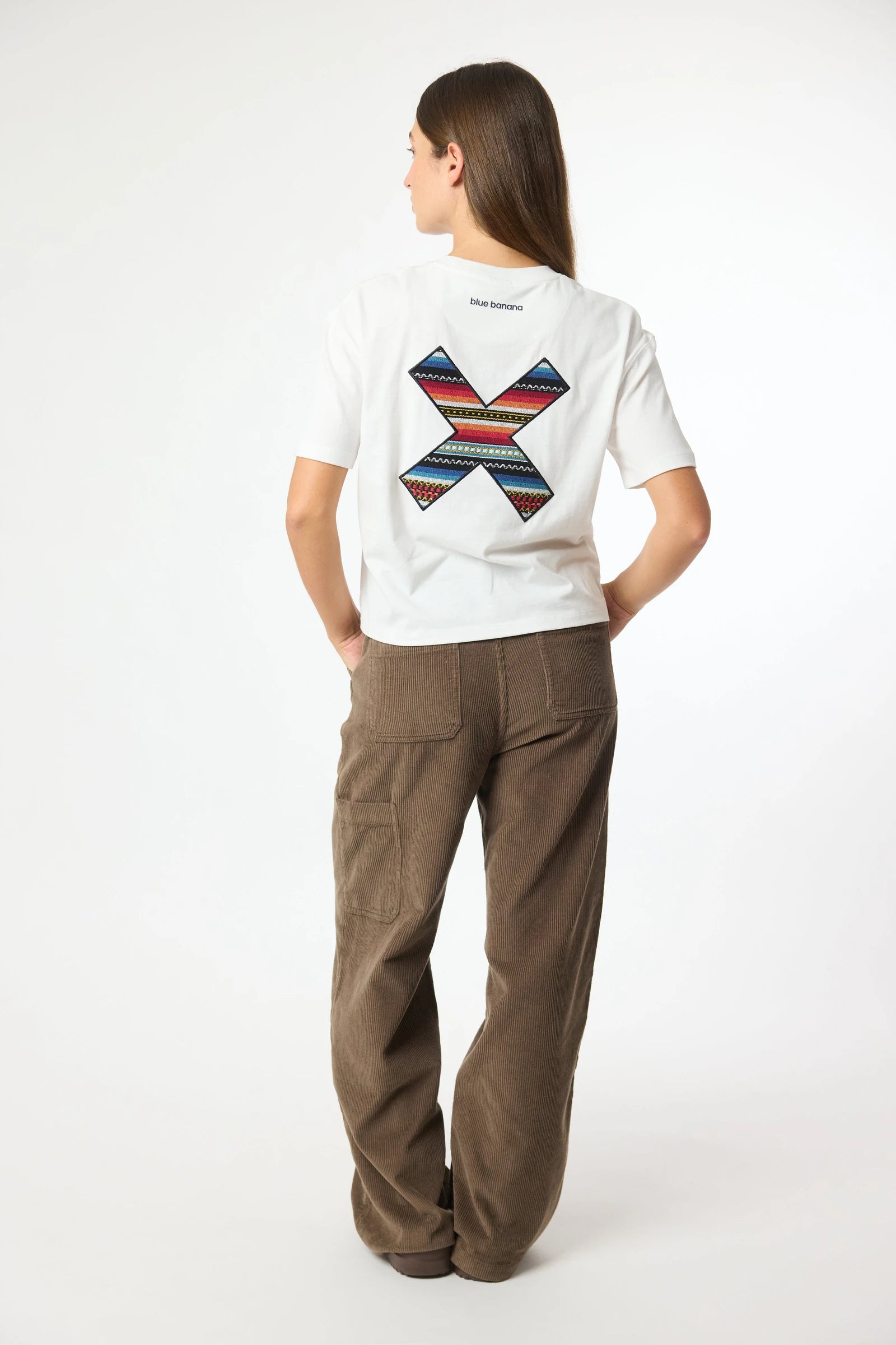 T-shirt with our classic X embroidered: front on the chest and back. Made of 100% organic cotton and crop fit.