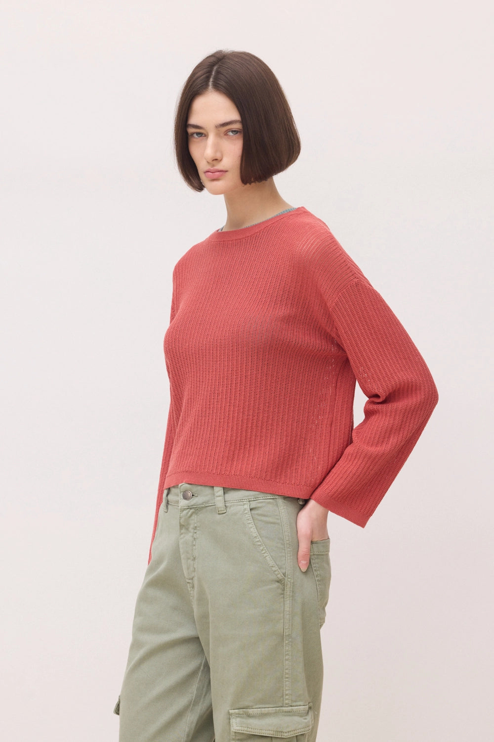 - Jersey de punto calado con estructura de canalé