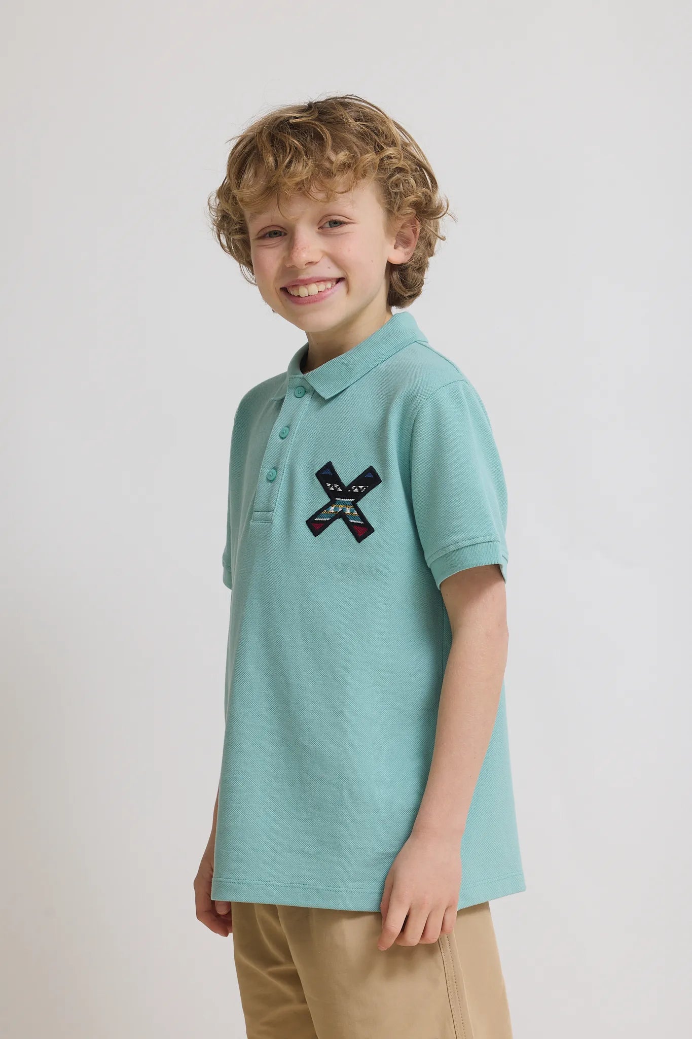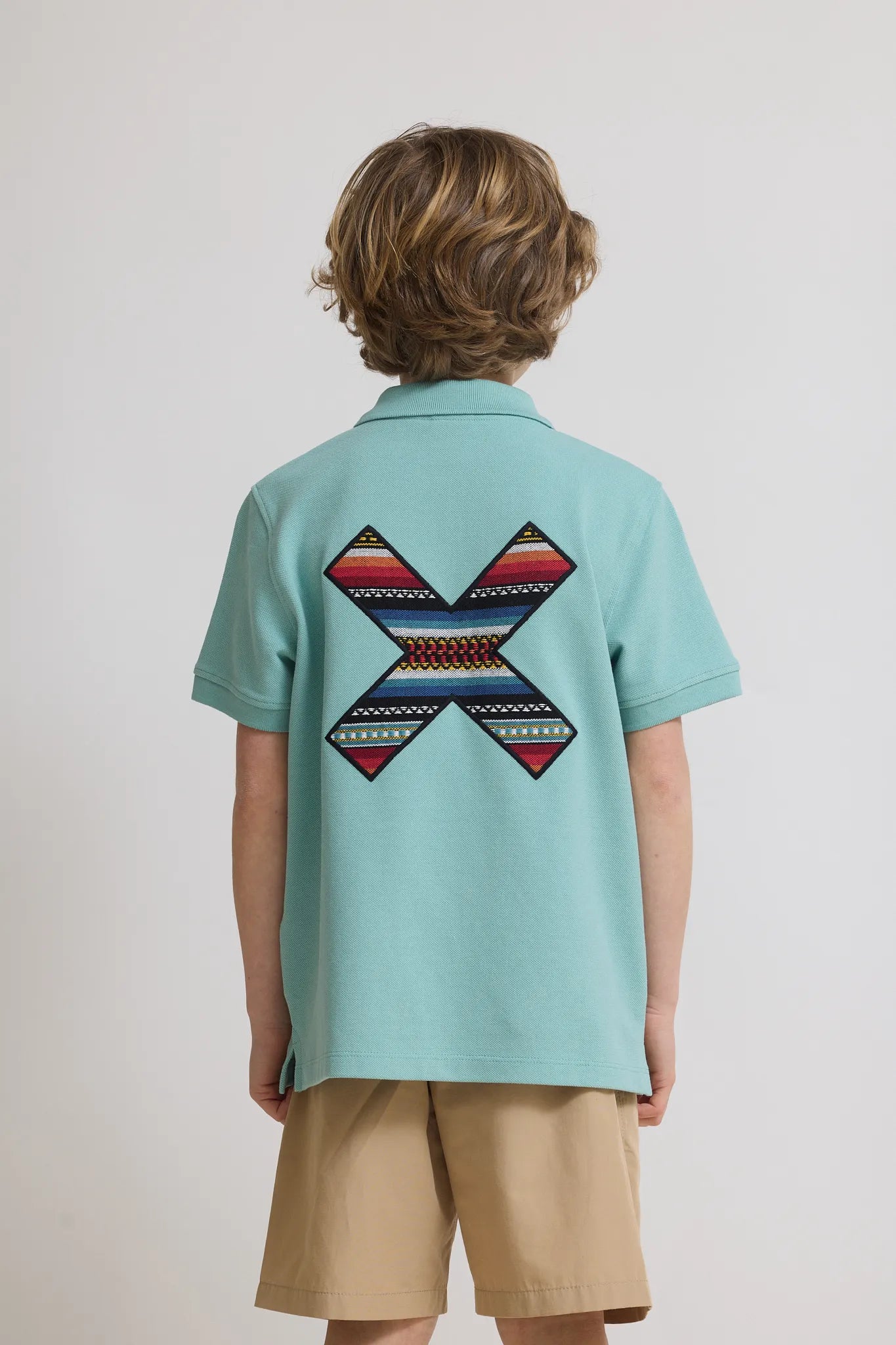 - Polo con nuestra clásica X bordada: delantera en el pecho y trasera en la espalda