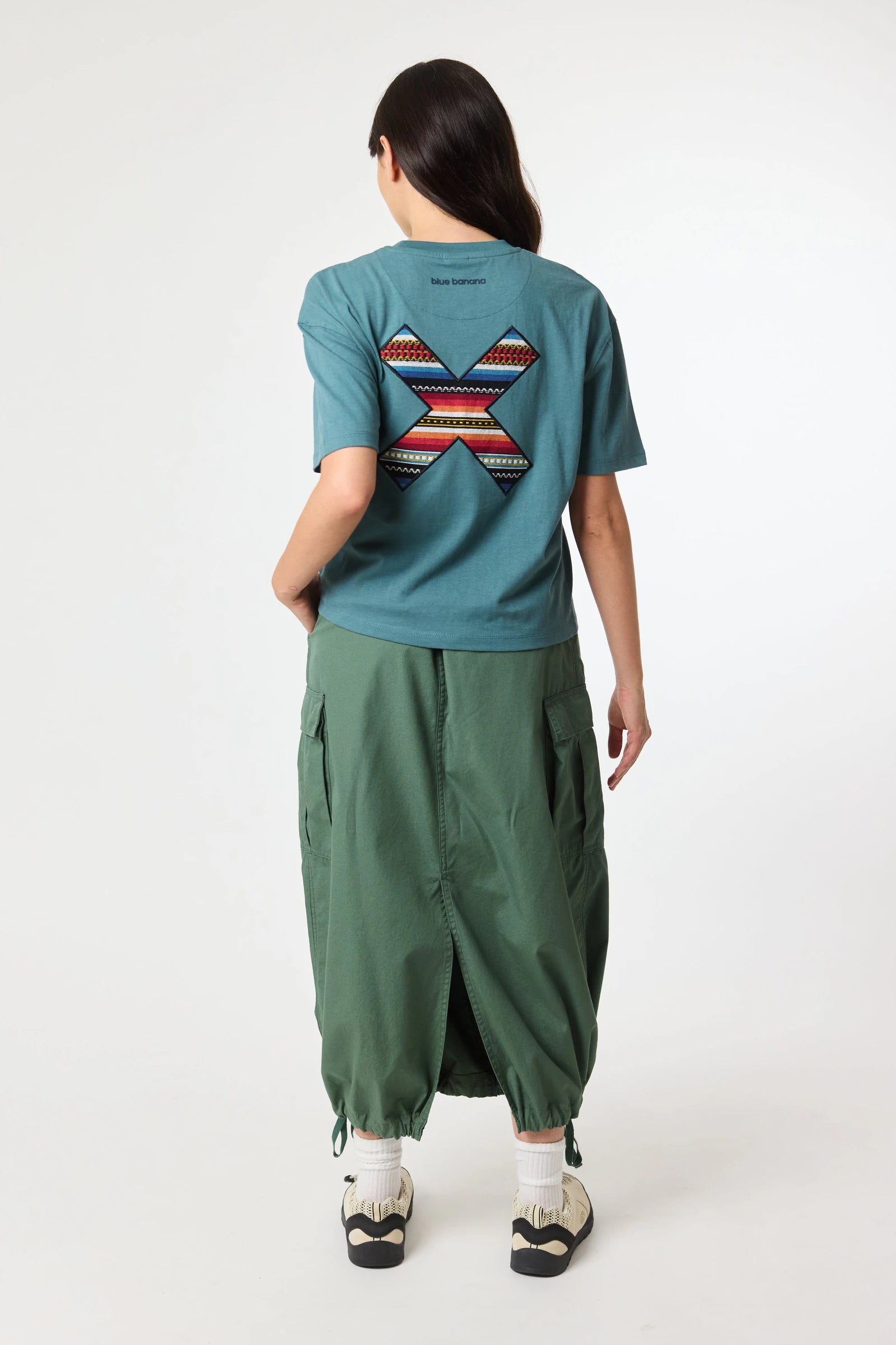 T-shirt avec notre classique X brodée : sur la poitrine et dans le dos. Confectionné en coton 100% biologique et coupe crop.