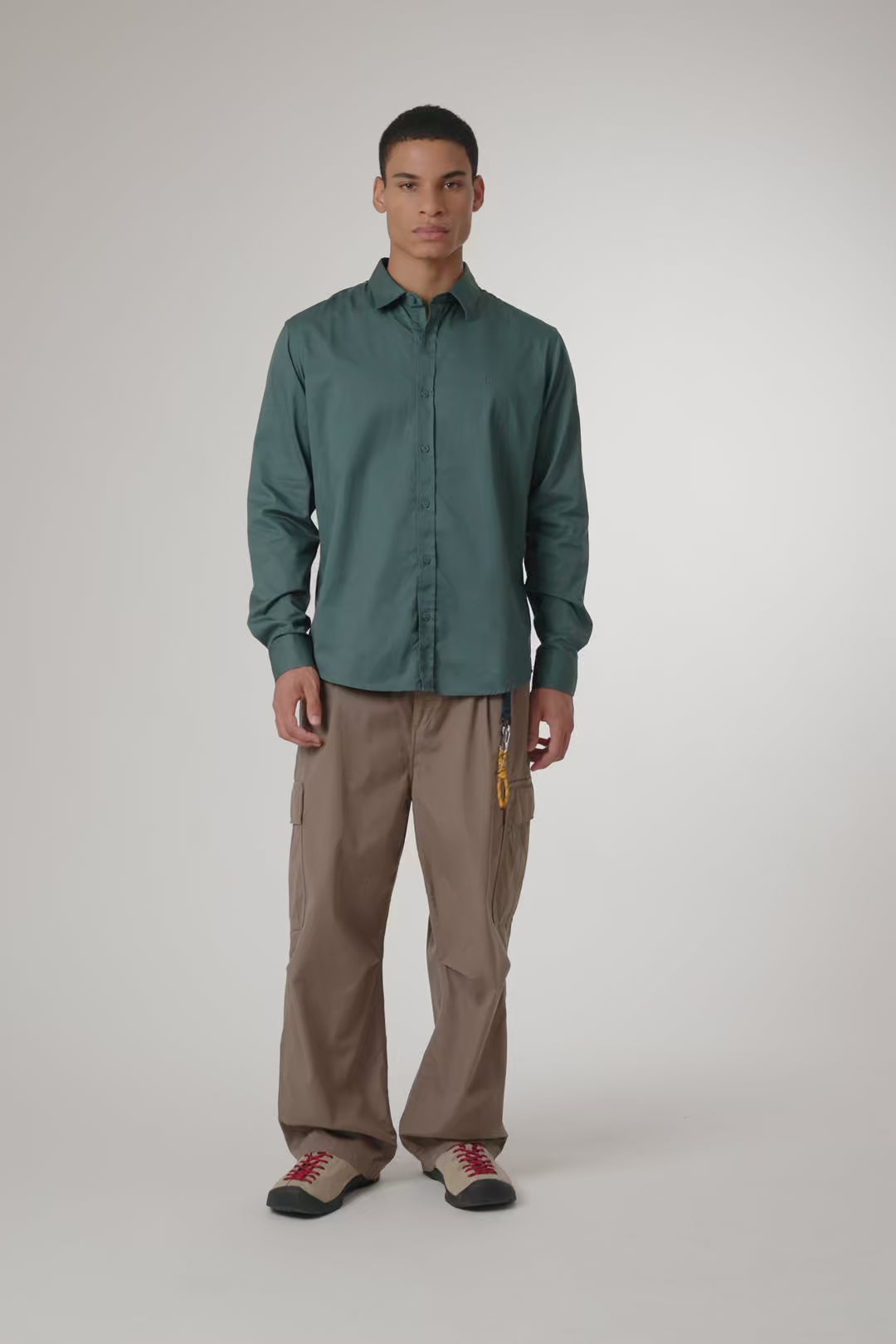 Chemise à manches longues, 100% coton. Motif décoratif brodé sur la poitrine. Boutons personnalisés. Étiquette de marque sur la patte du poignet.