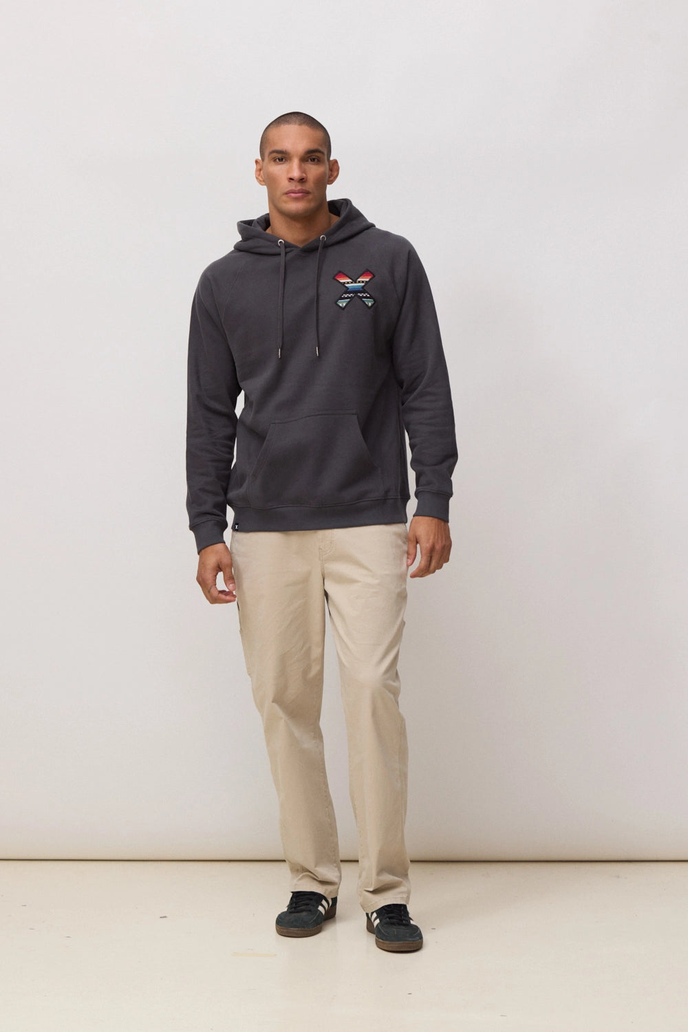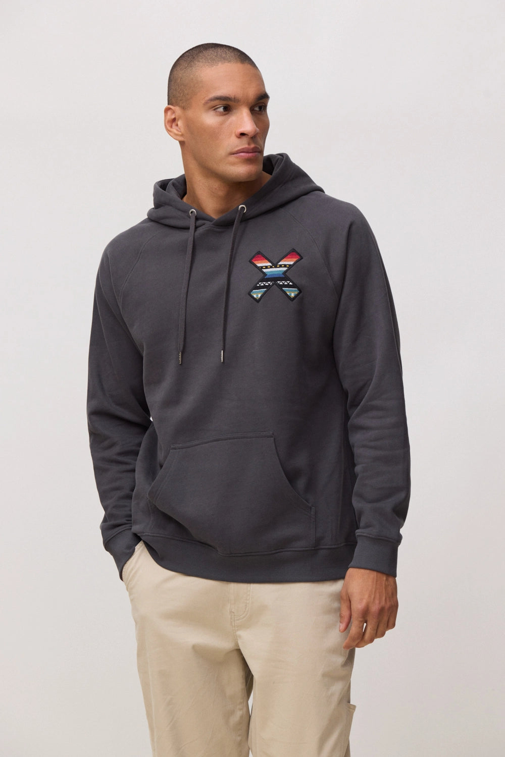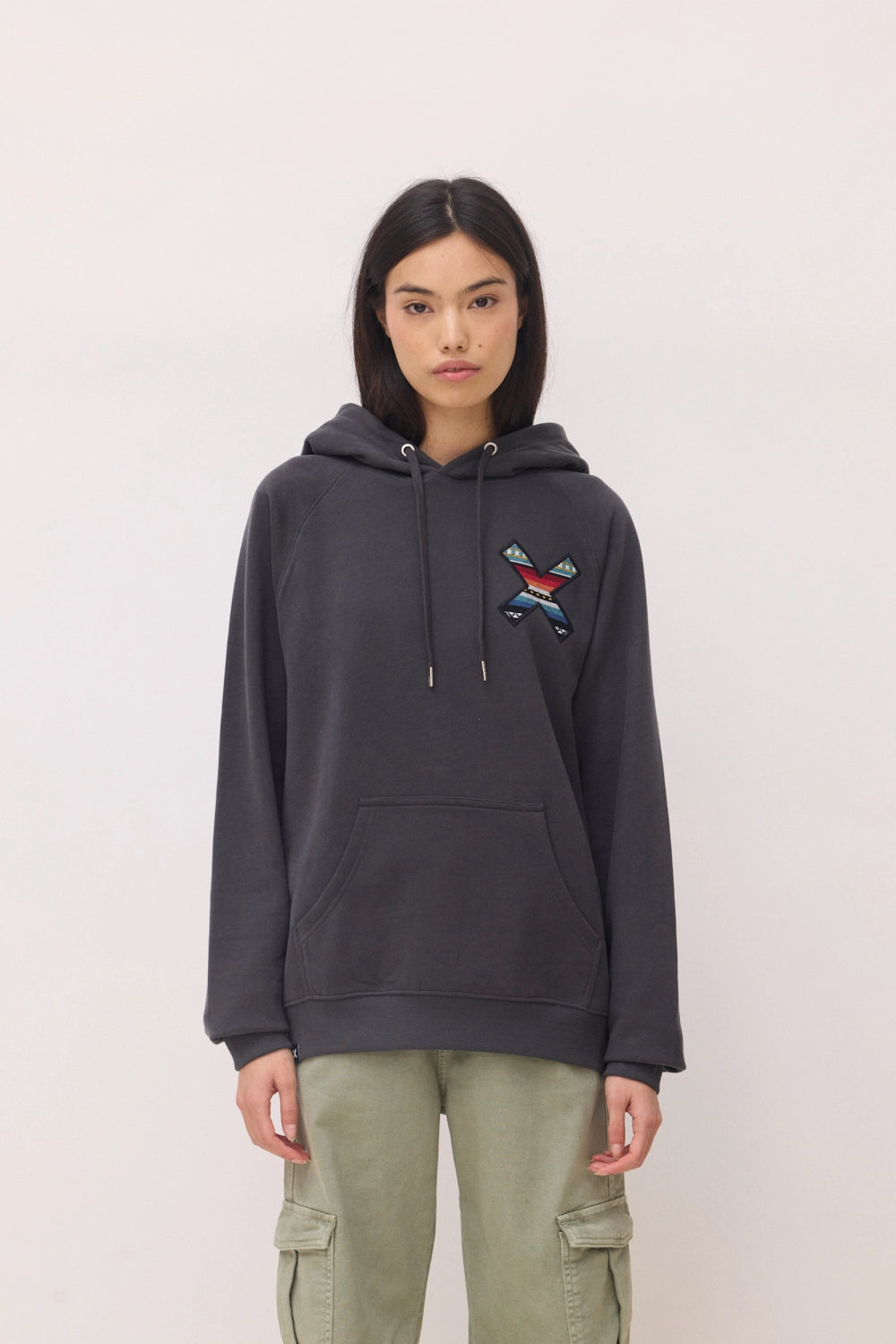 Sudadera con capucha con nuestra clásica X bordada: delantera en el pecho y trasera en la espalda. Confeccionada con 100% algodón orgánico y corte regular fit.