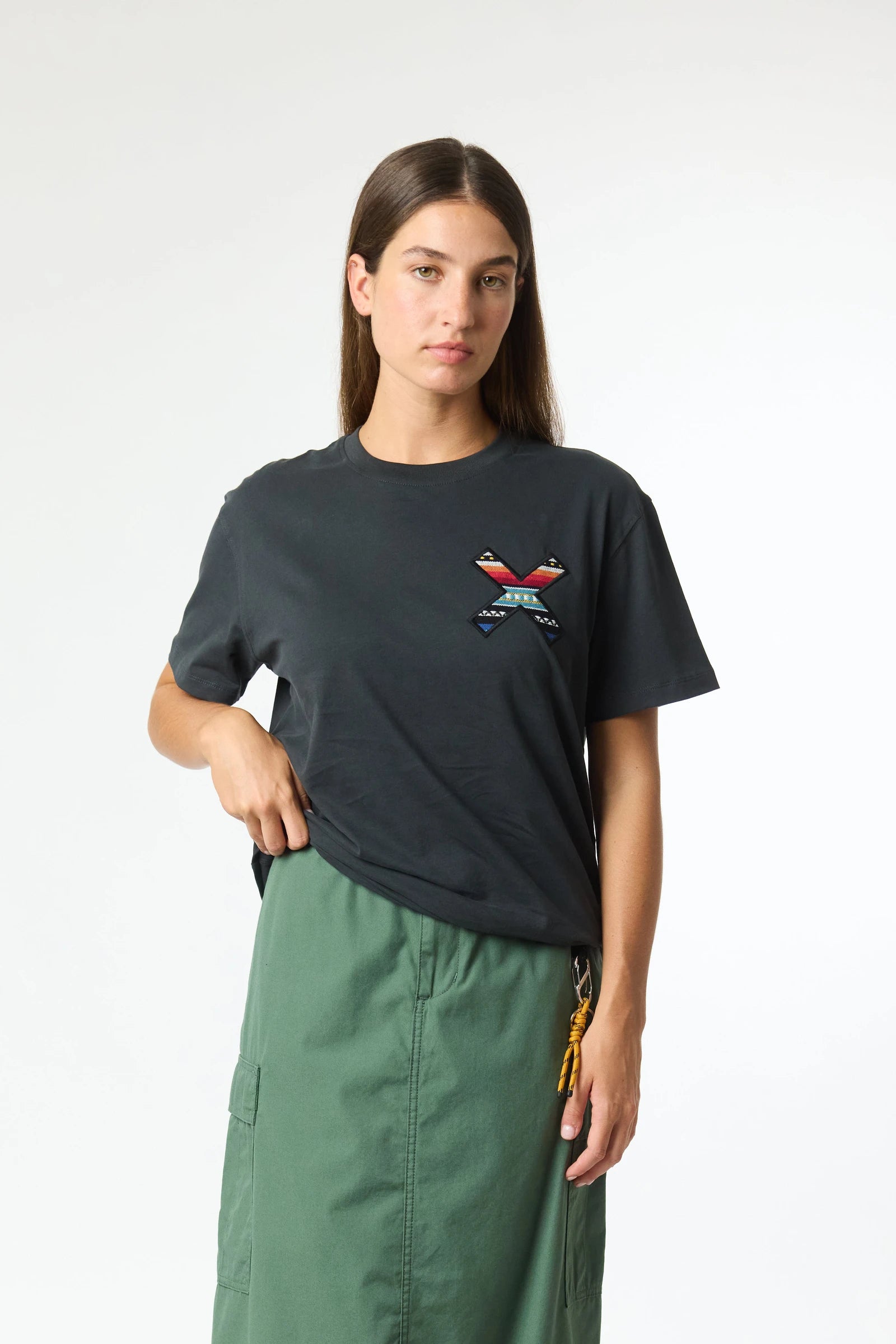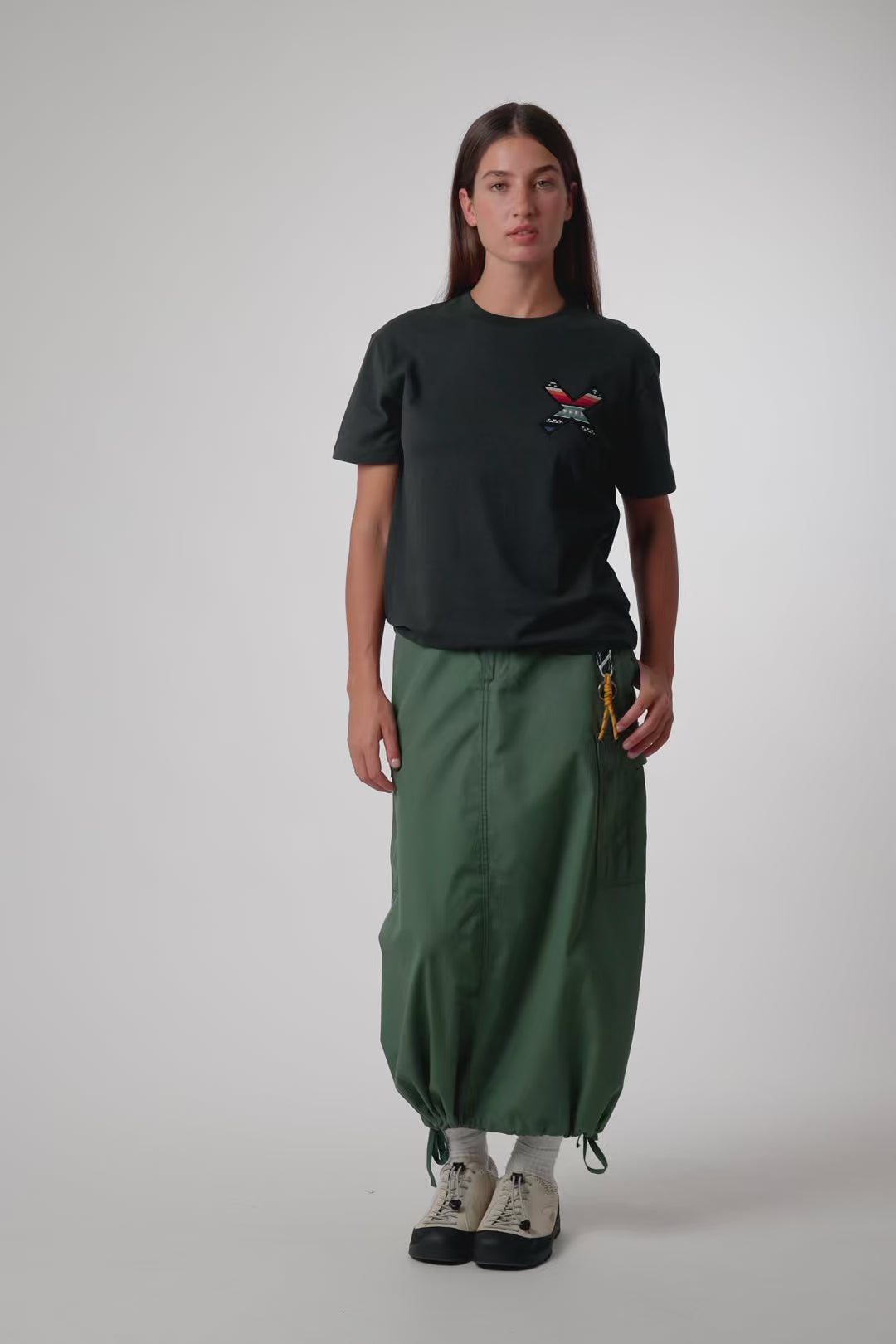 T-shirt avec notre X classique brodée : à l’avant sur la poitrine et à l’arrière dans le dos. Confectionné en coton 100% biologique et coupe crop.