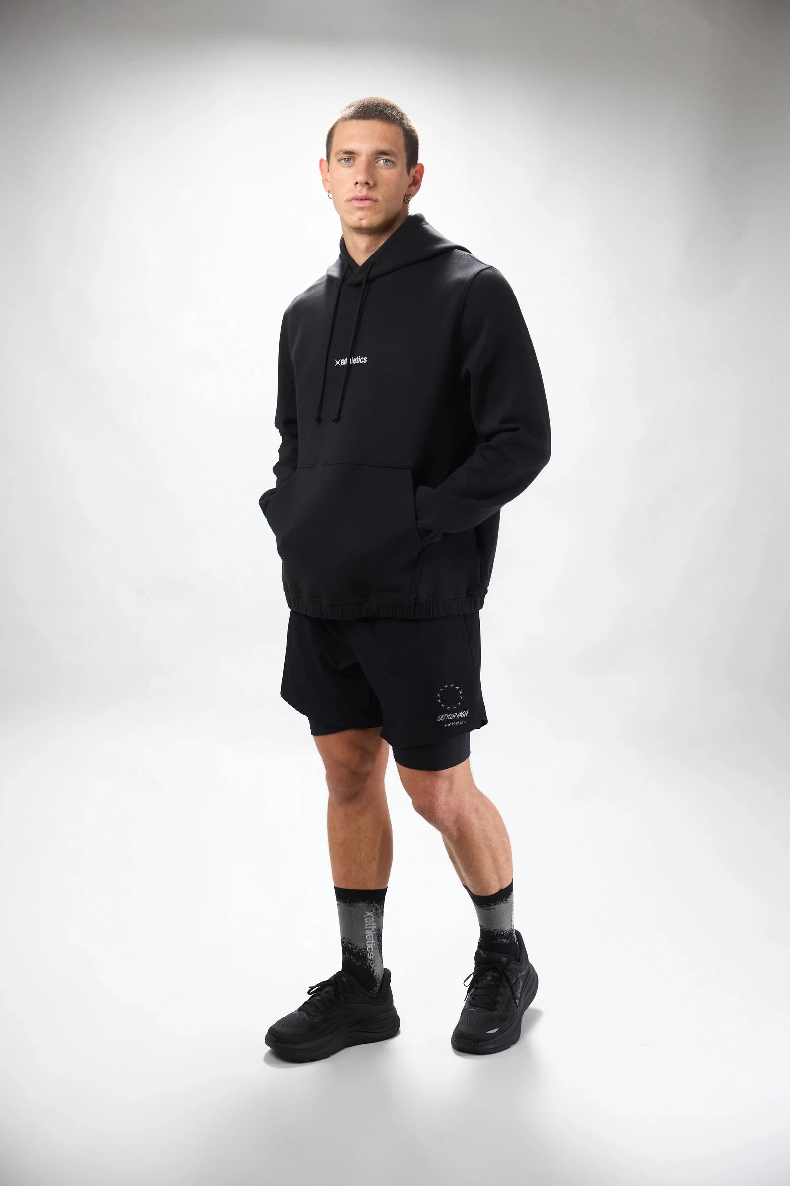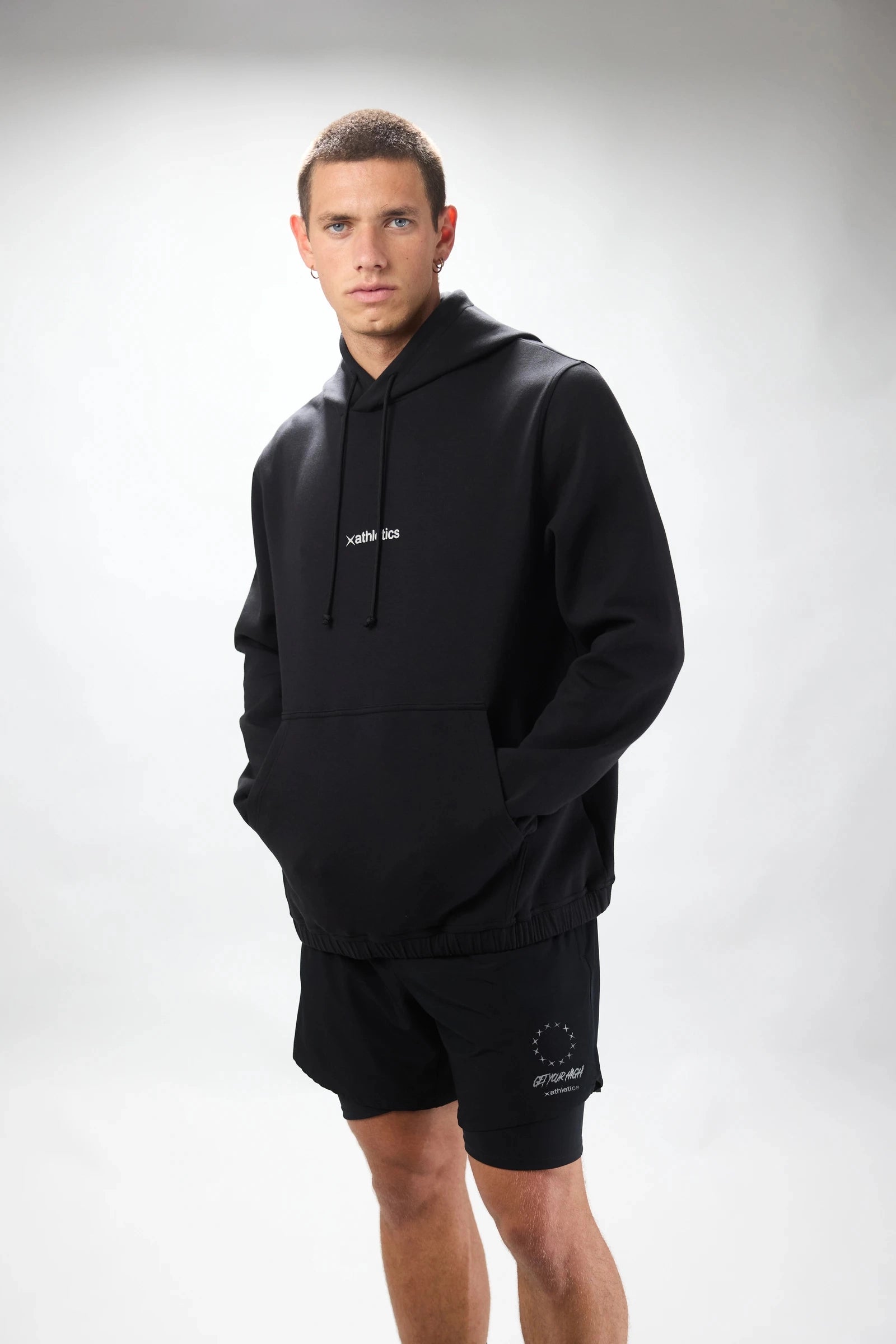 Sweat à capuche fabriqué en coton et polyester. Ourlet élastique et ajustable à la taille. Poche kangourou avec fermetures éclair. Logo centré à l’avant et à l’arrière.