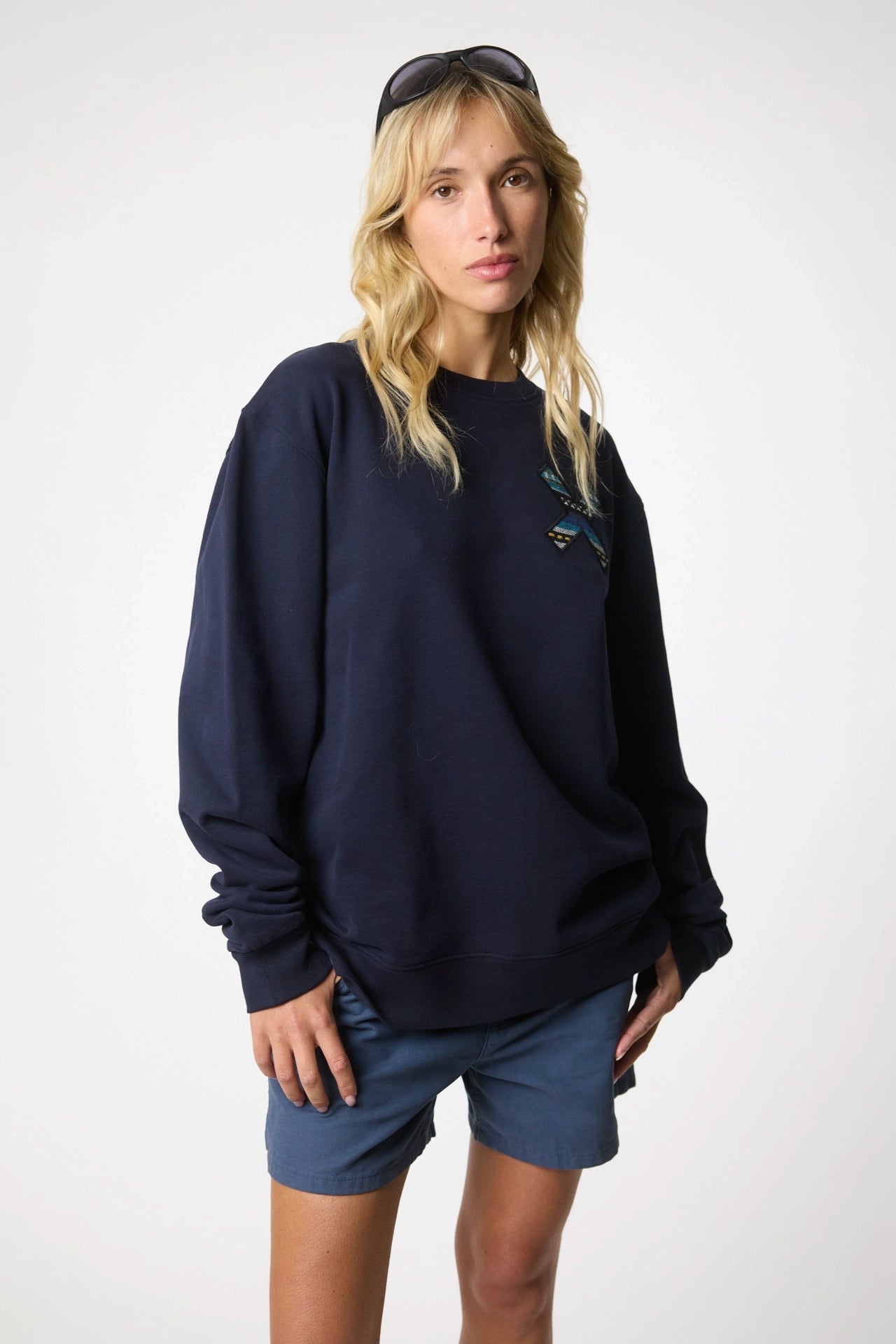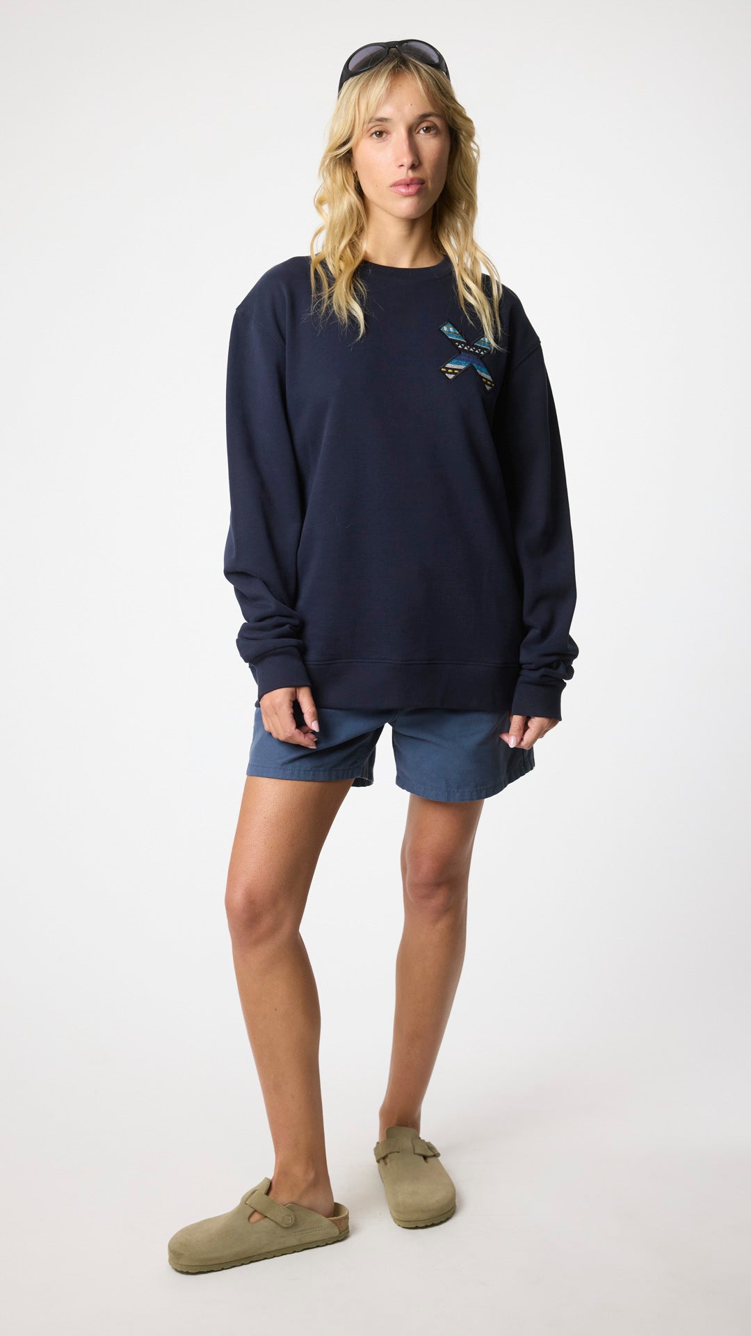 Sweat-shirt avec notre classique X brodée : à l'avant sur la poitrine et à l'arrière sur le dos. Fabriqué avec 100% de coton biologique et une coupe régulière.