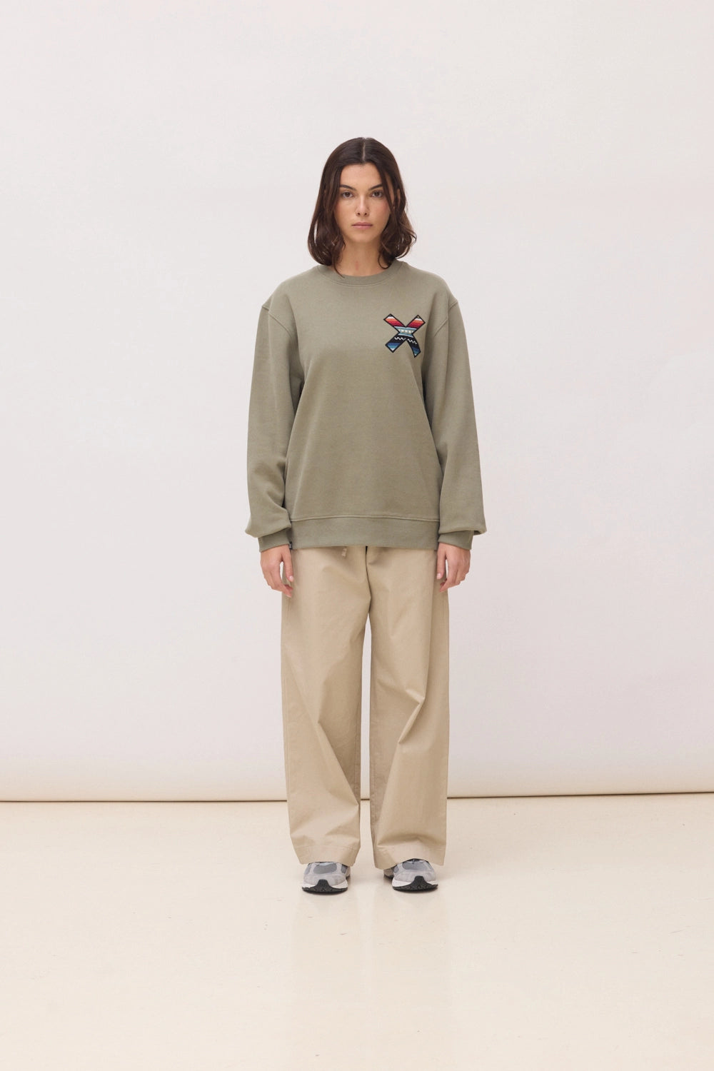 Sweat avec notre X brodé classique : devant sur la poitrine et dos sur le dos. Confectionné en 100% coton biologique.