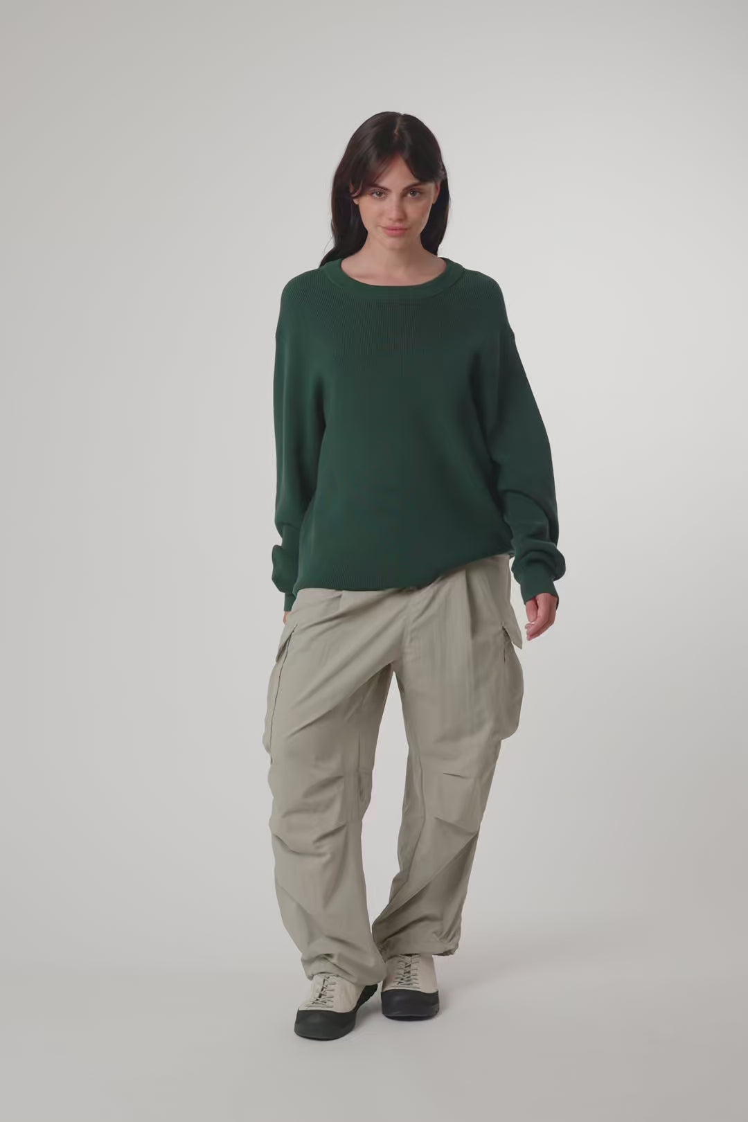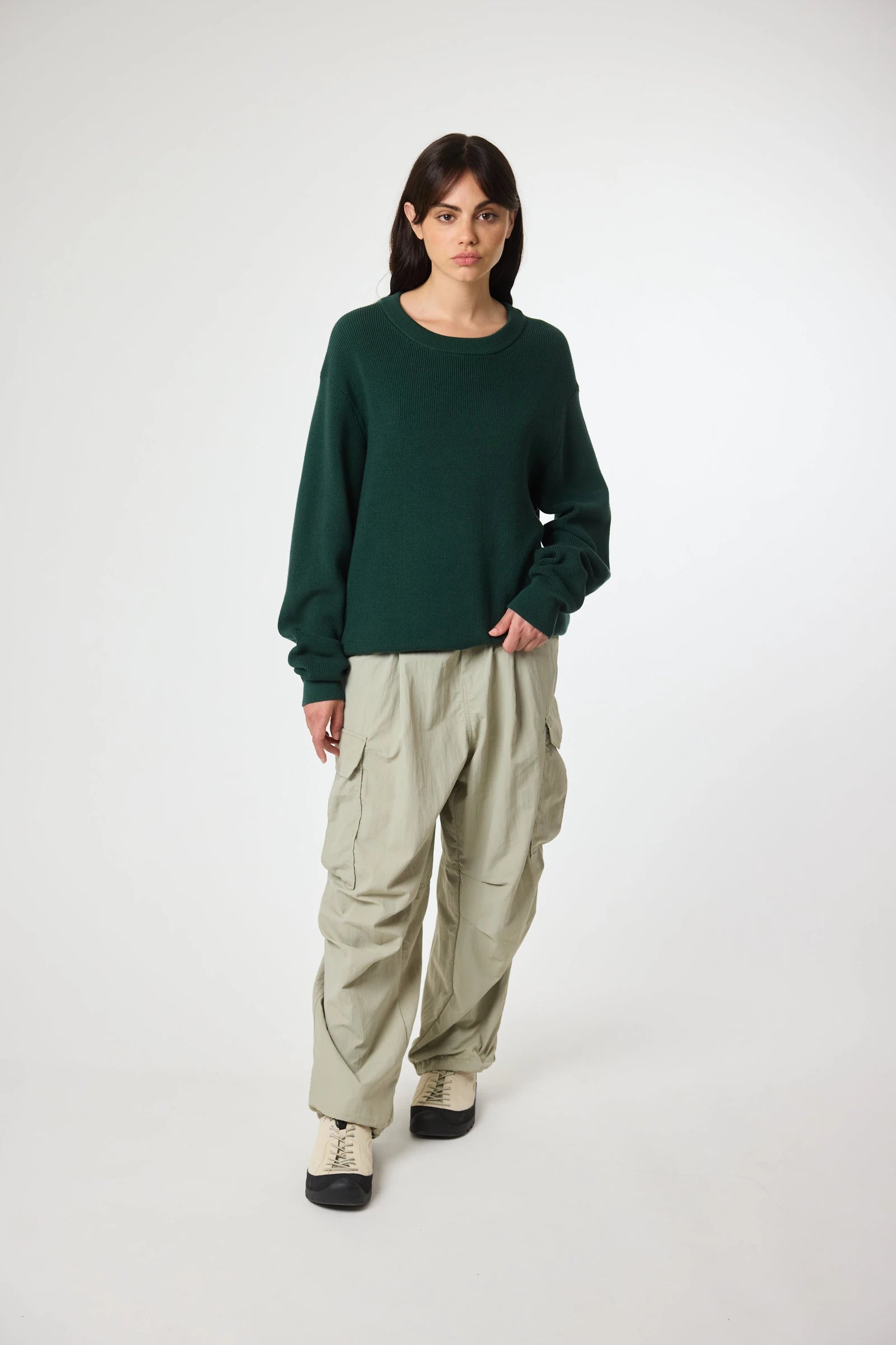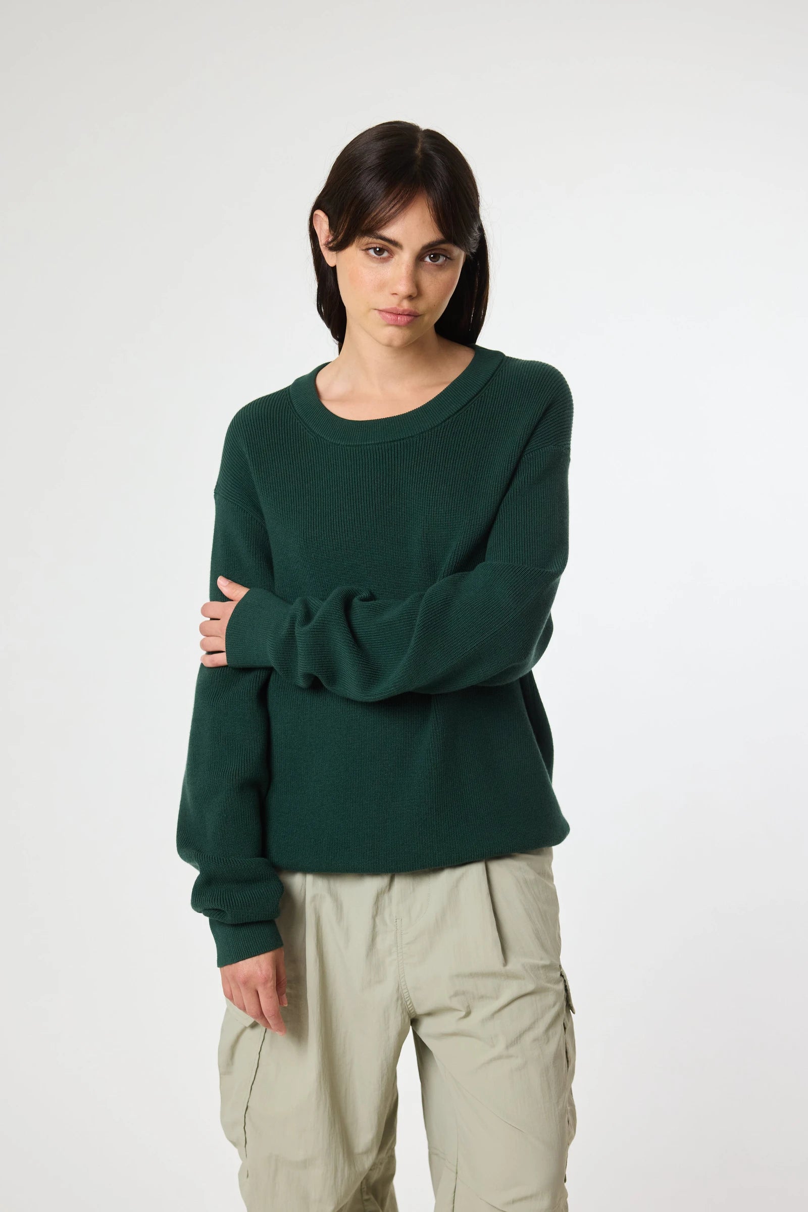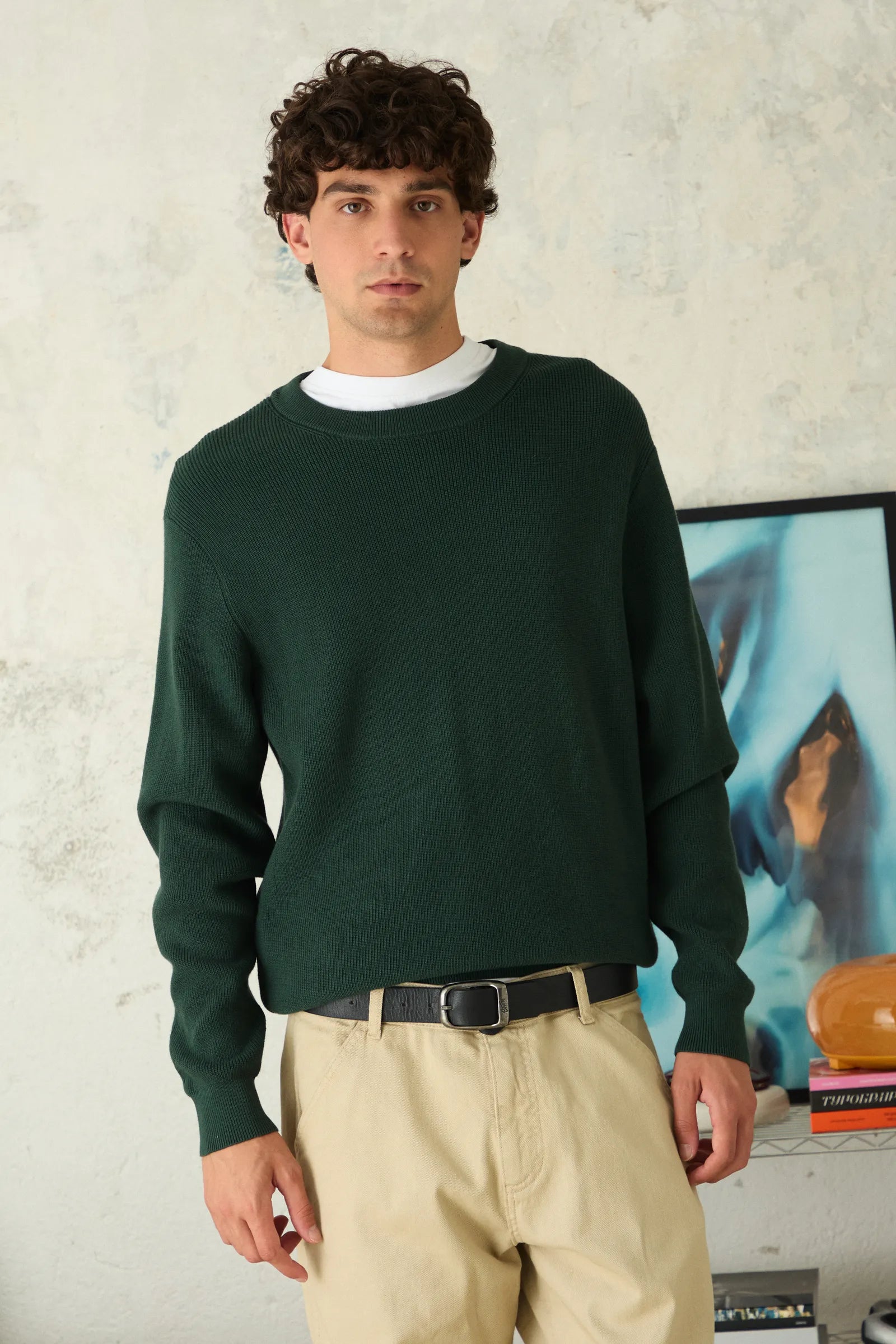 Pull en maille côtelée, confectionné en coton. Col rond et finitions en bord-côte. Avec étiquette décorative de branding au bas.
