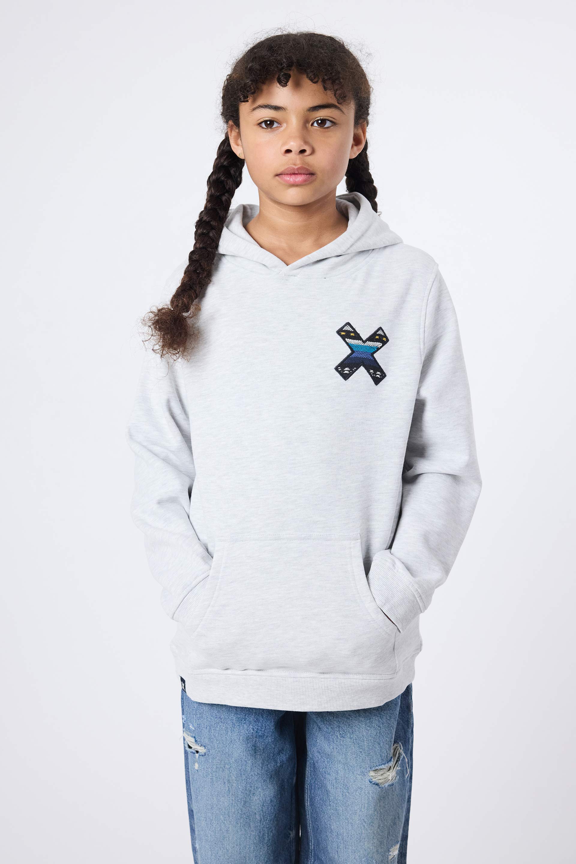 Sweat à capuche avec notre classique X brodée : sur la poitrine à l'avant et dans le dos à l'arrière. Poche centrale inférieure à l'avant avec une ouverture des deux côtés. Fabriqué en 100% coton biologique.