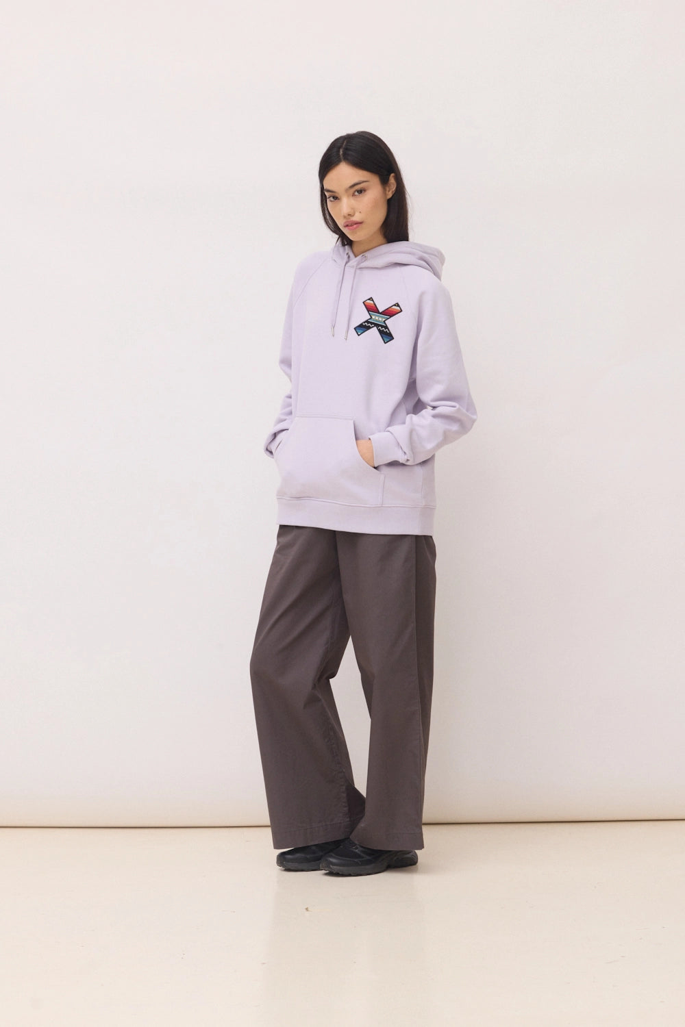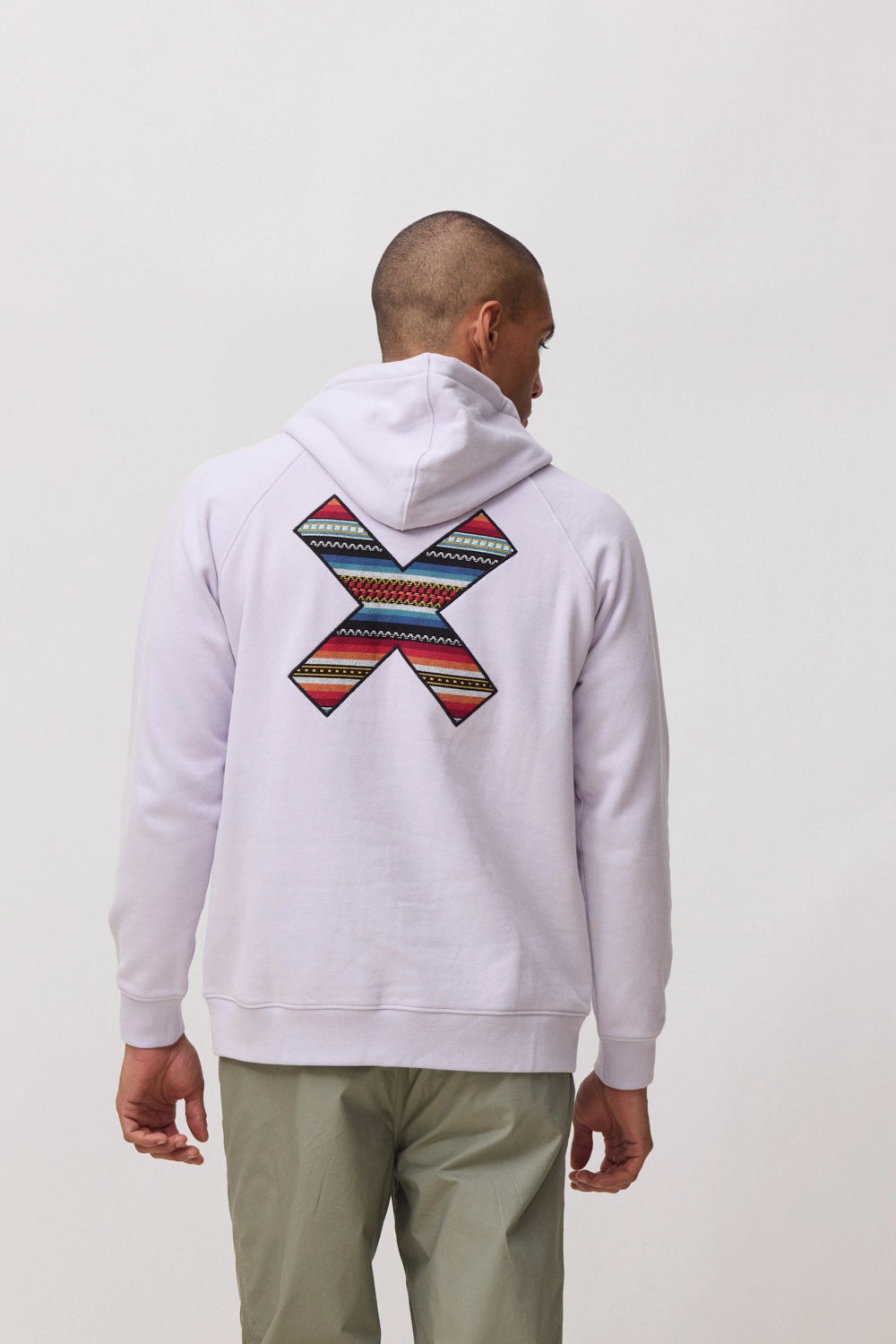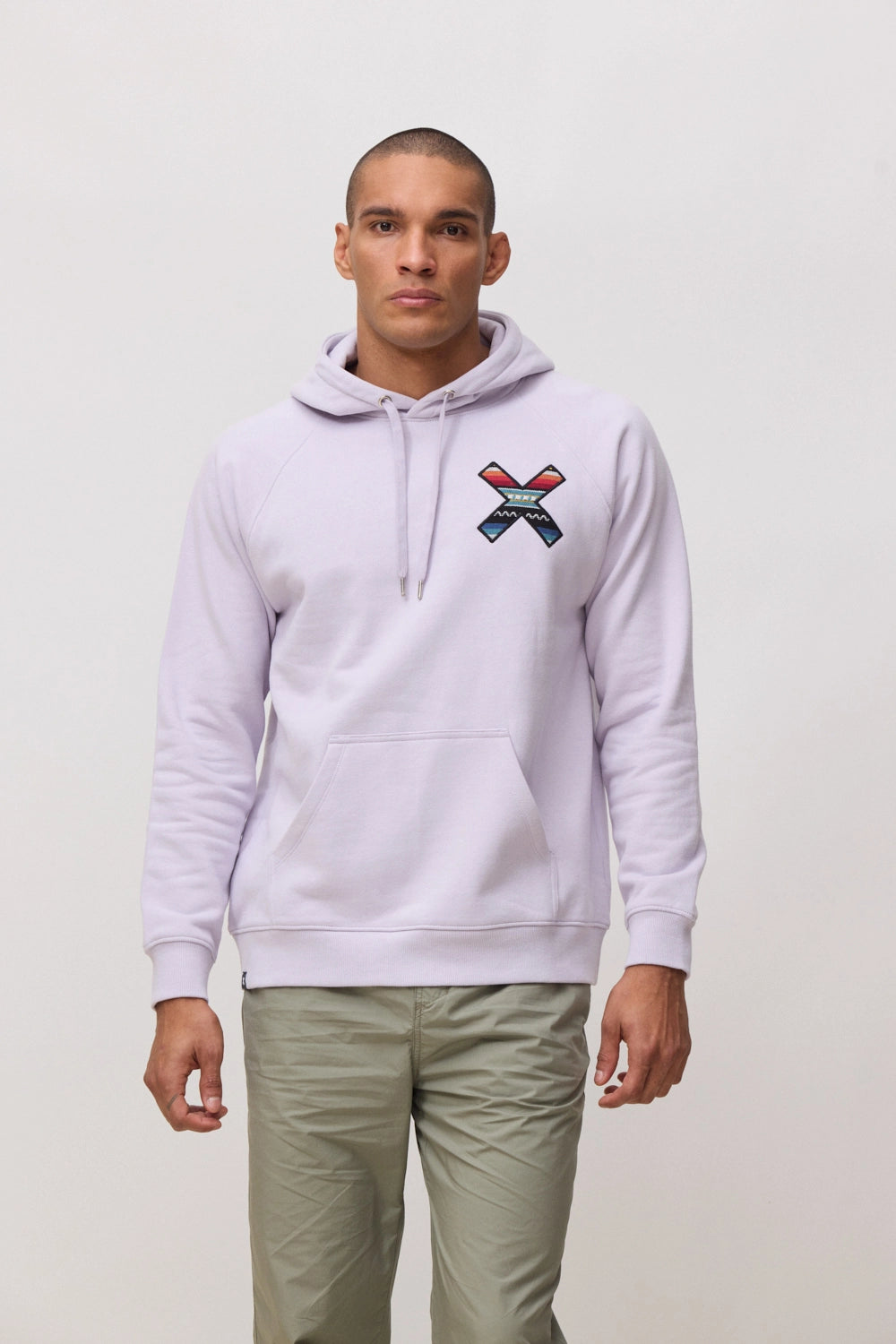 Sudadera con capucha con nuestra clásica X bordada: delantera en el pecho y trasera en la espalda. Confeccionada con 100% algodón orgánico y corte regular fit.