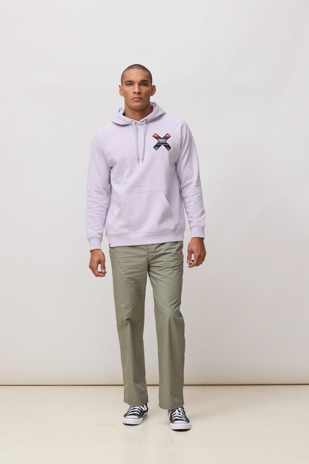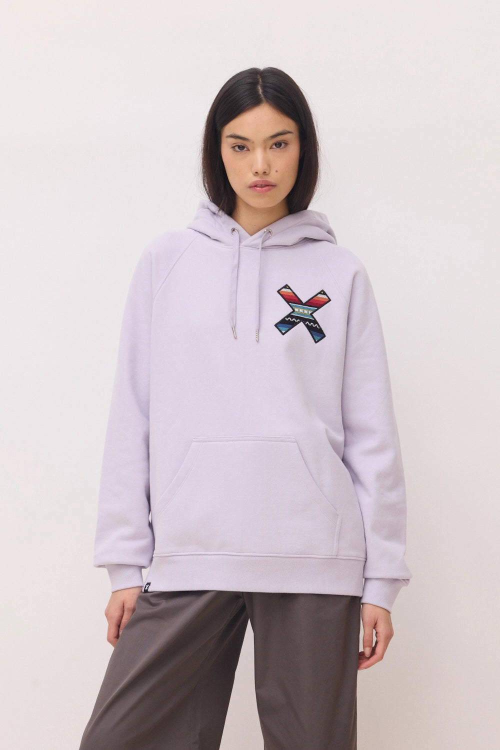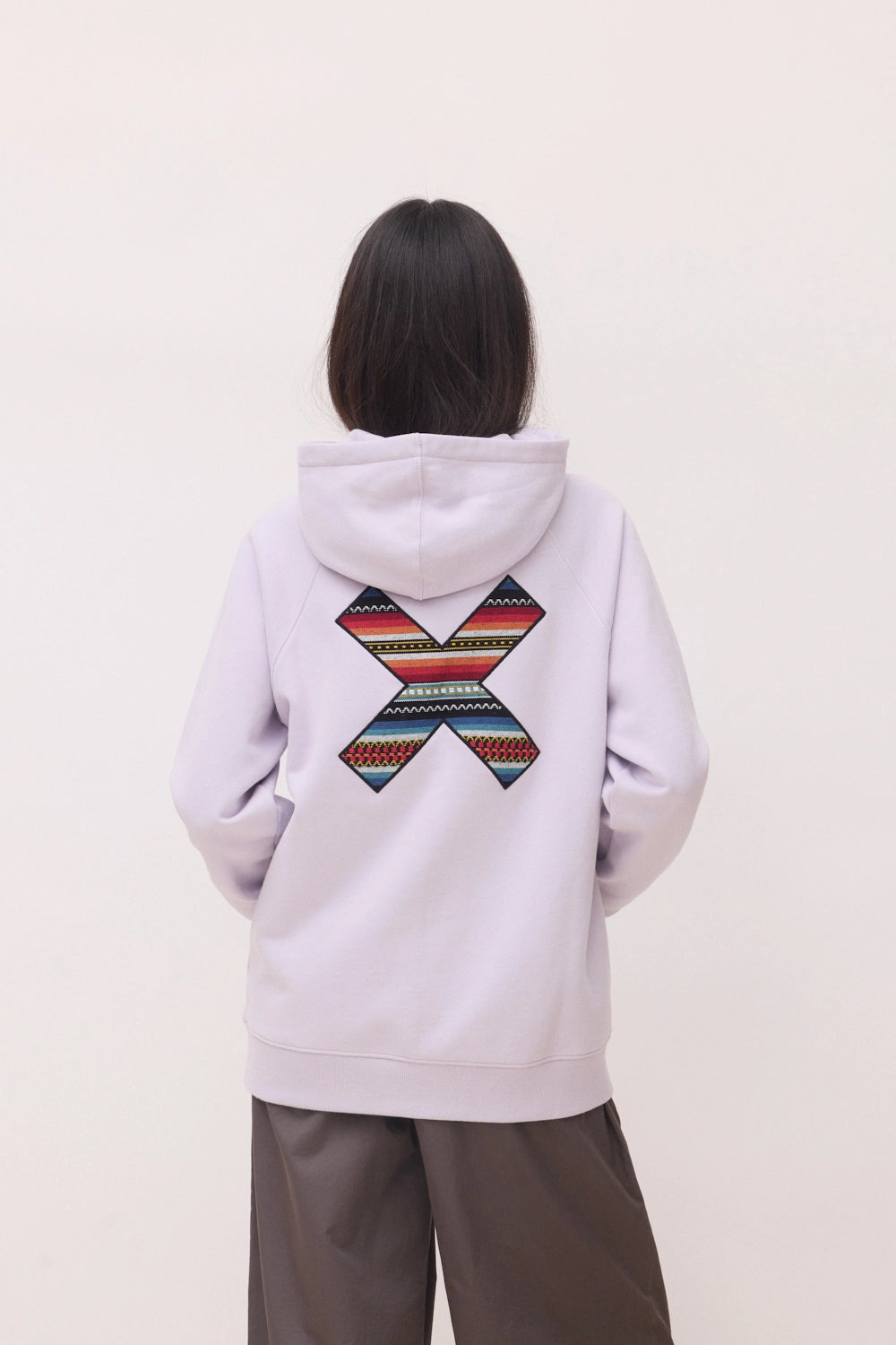 Sudadera con capucha con nuestra clásica X bordada: delantera en el pecho y trasera en la espalda. Confeccionada con 100% algodón orgánico y corte regular fit.