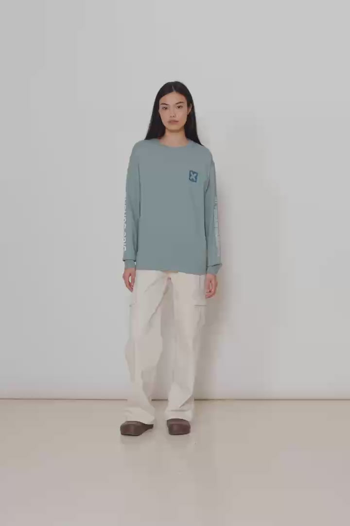 Camiseta manga larga con print delantero, trasero y mangas. Confeccionada con 100% algodón orgánico. Corte regular fit y gramaje: 240 GSM.