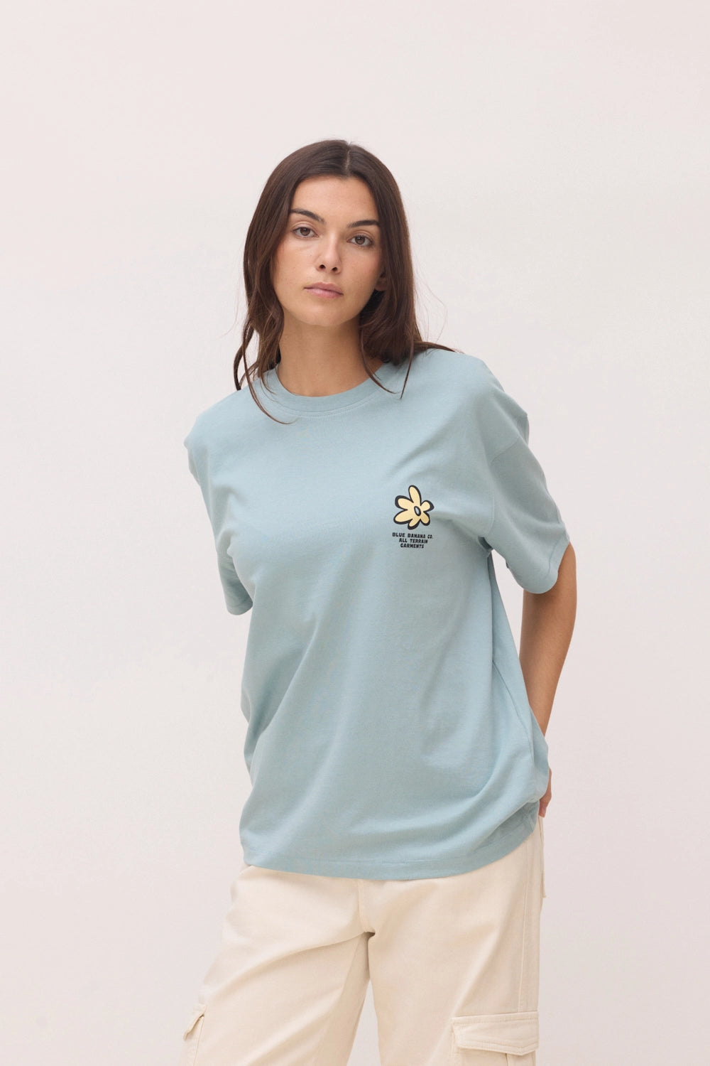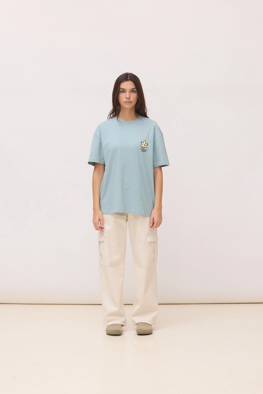 Camiseta con print delantero y trasero. Confeccionada con 100% algodón orgánico. Corte oversize y gramaje: 200 GSM.