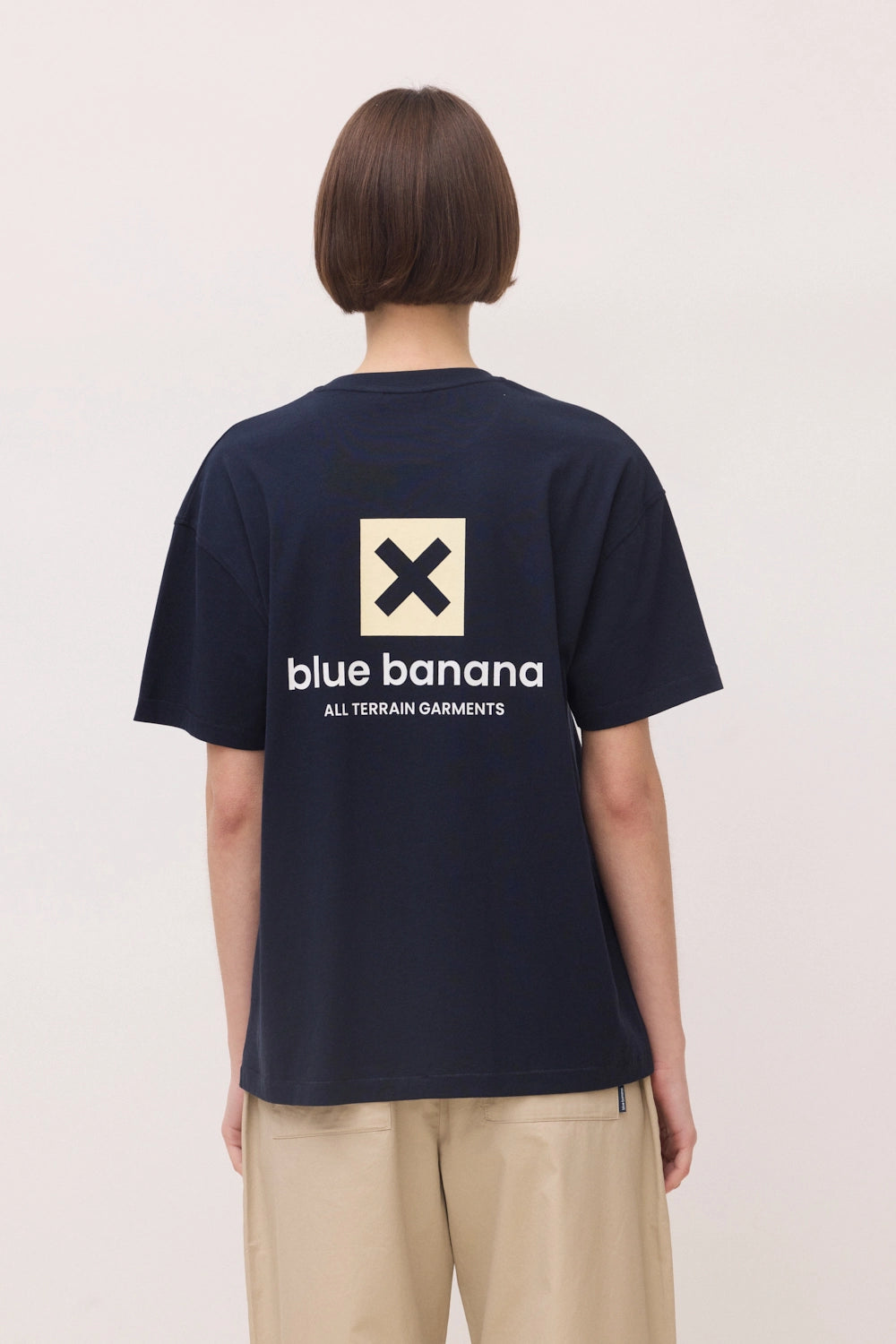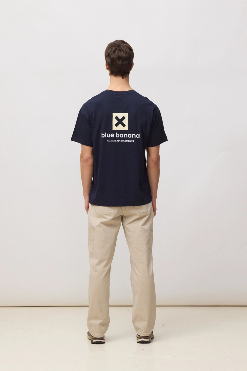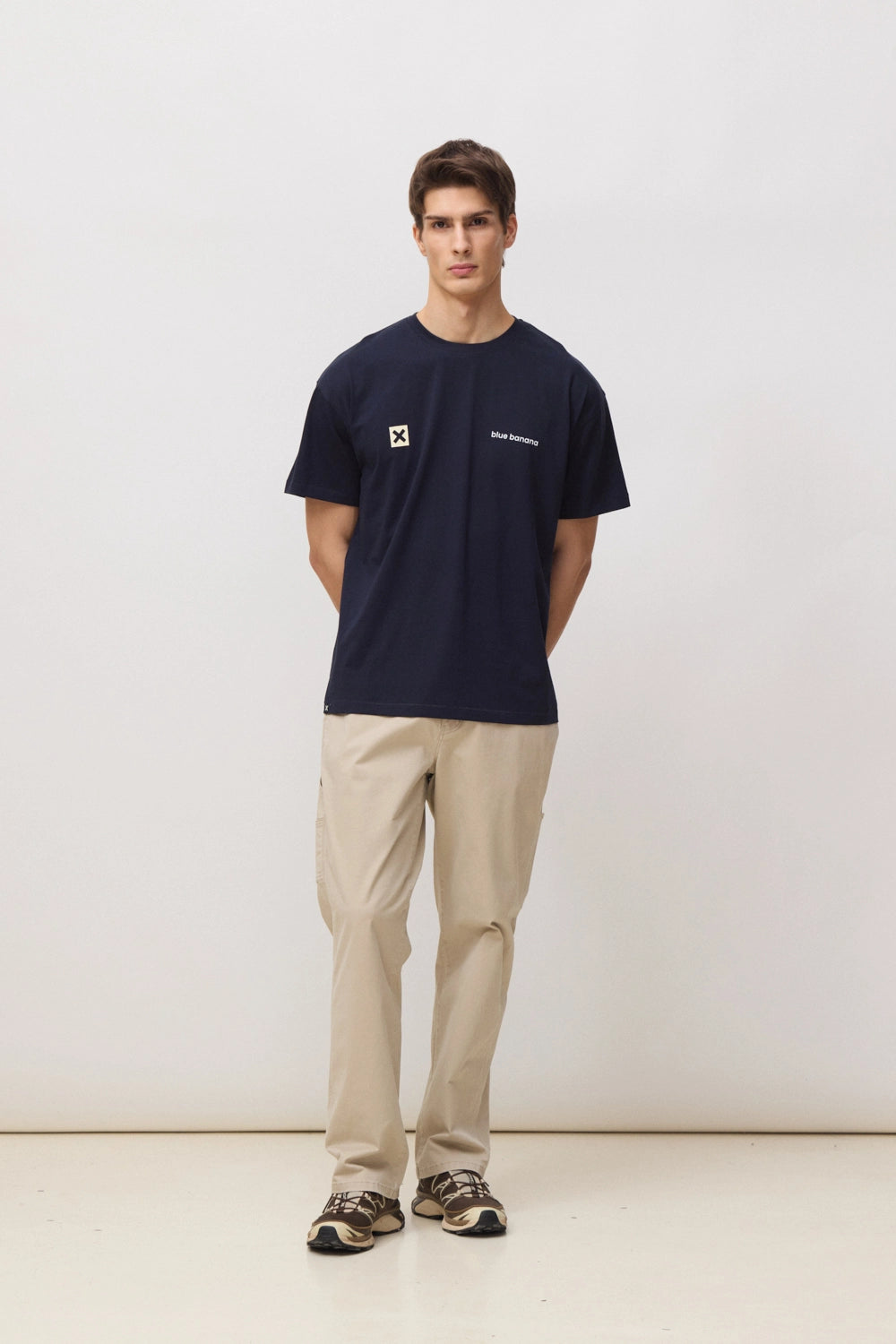 T-shirt avec imprimé à l'avant sur la poitrine et au dos confectionné en 100% coton biologique.