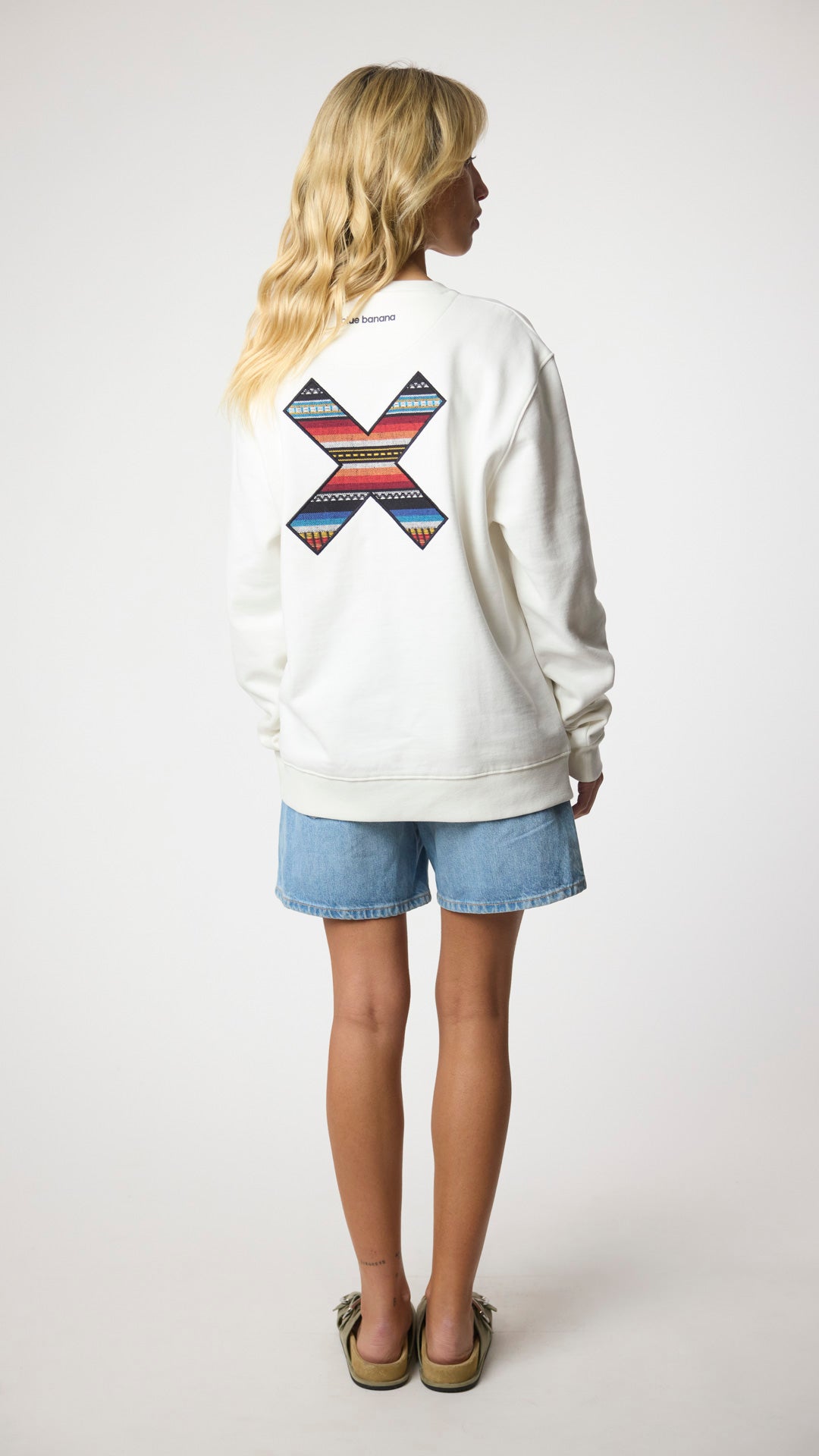 Sweat-shirt avec notre classique X brodée : à l'avant sur la poitrine et à l'arrière sur le dos. Fabriqué avec 100% de coton biologique et une coupe régulière.