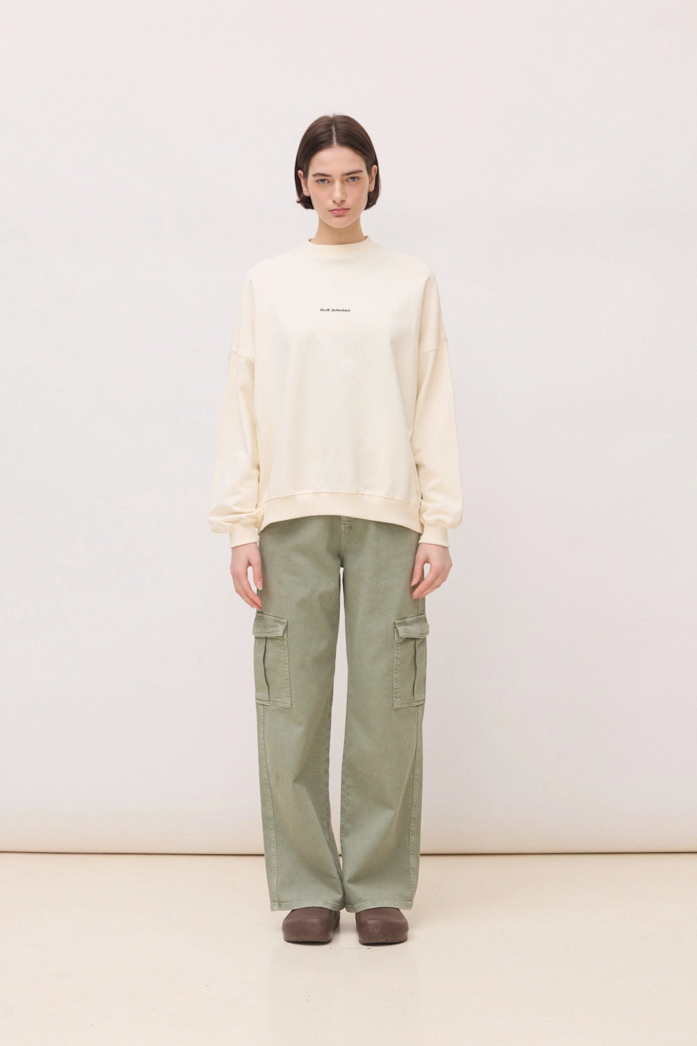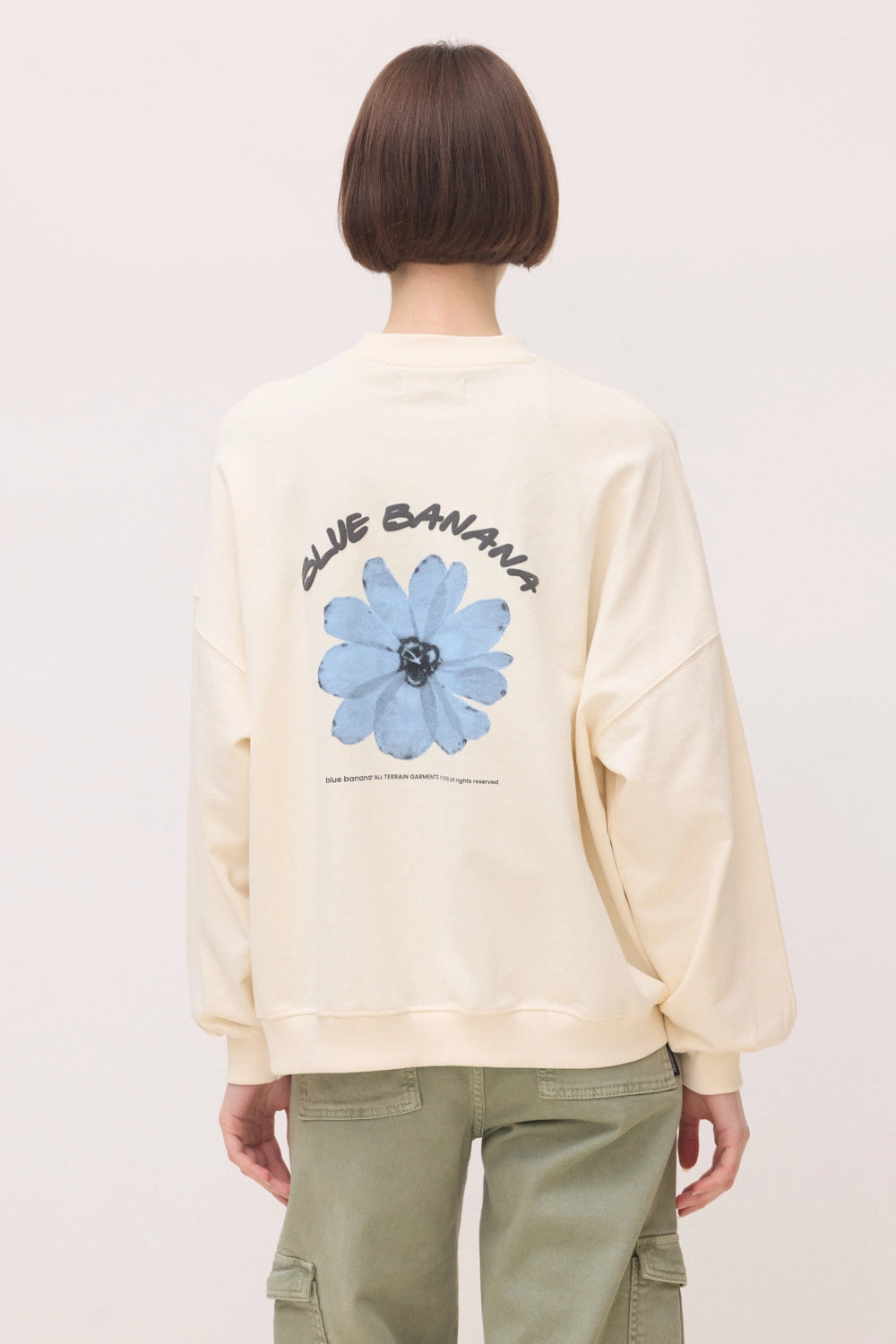 Sudadera con print delantero y trasero. Confeccionada con 100% algodón orgánico. Corte oversize y gramaje: 300 GSM.