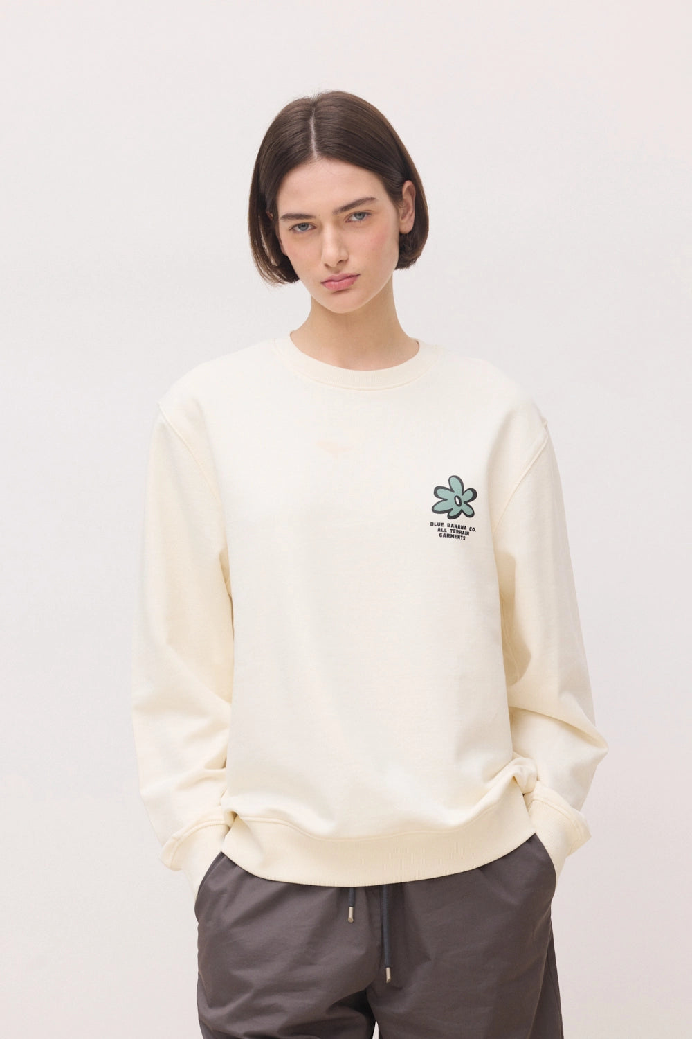 Sudadera con print delantero y trasero. Confeccionada con 100% algodón orgánico. Corte regular fit y gramaje: 400 GSM.
