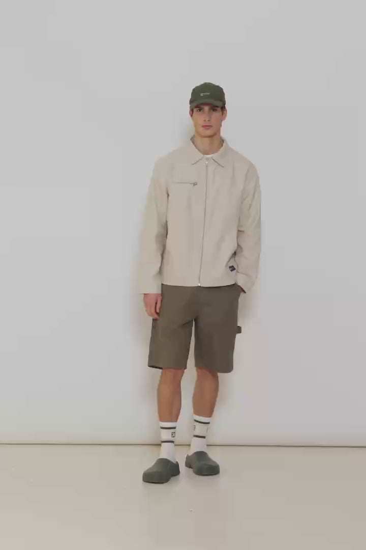 Veste style « worker » confectionnée en tissu canvas, 100% coton.