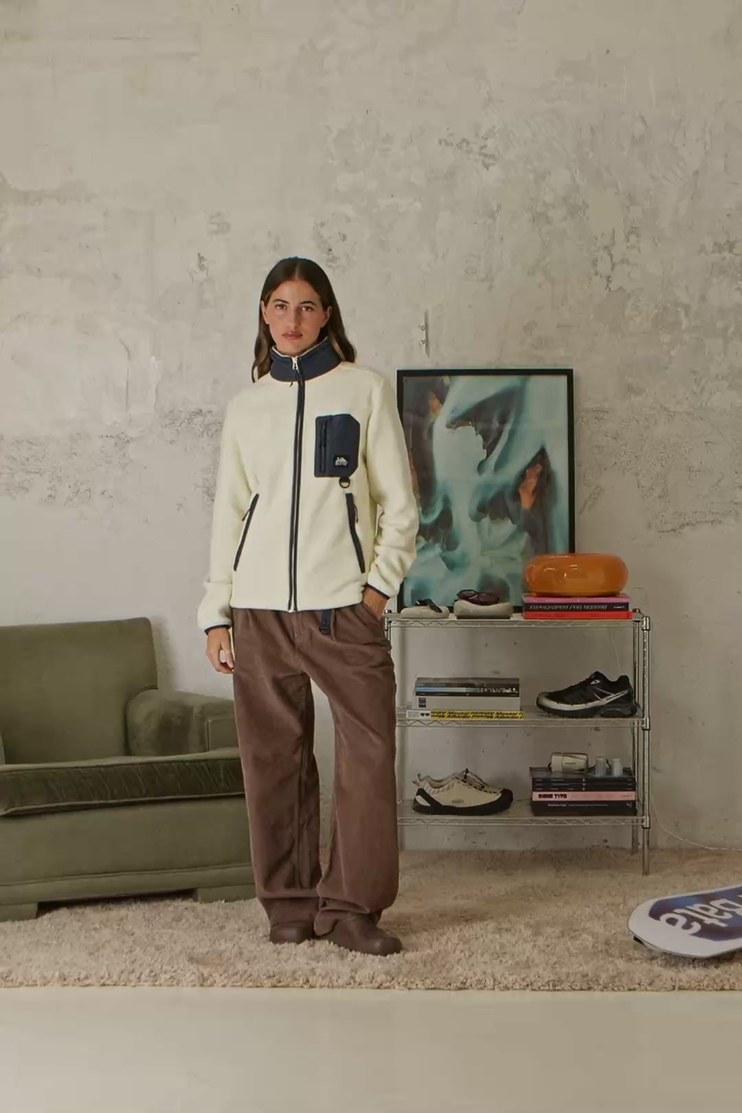 - Poche contrastée sur la poitrine, avec fermeture éclair et étiquette décorative