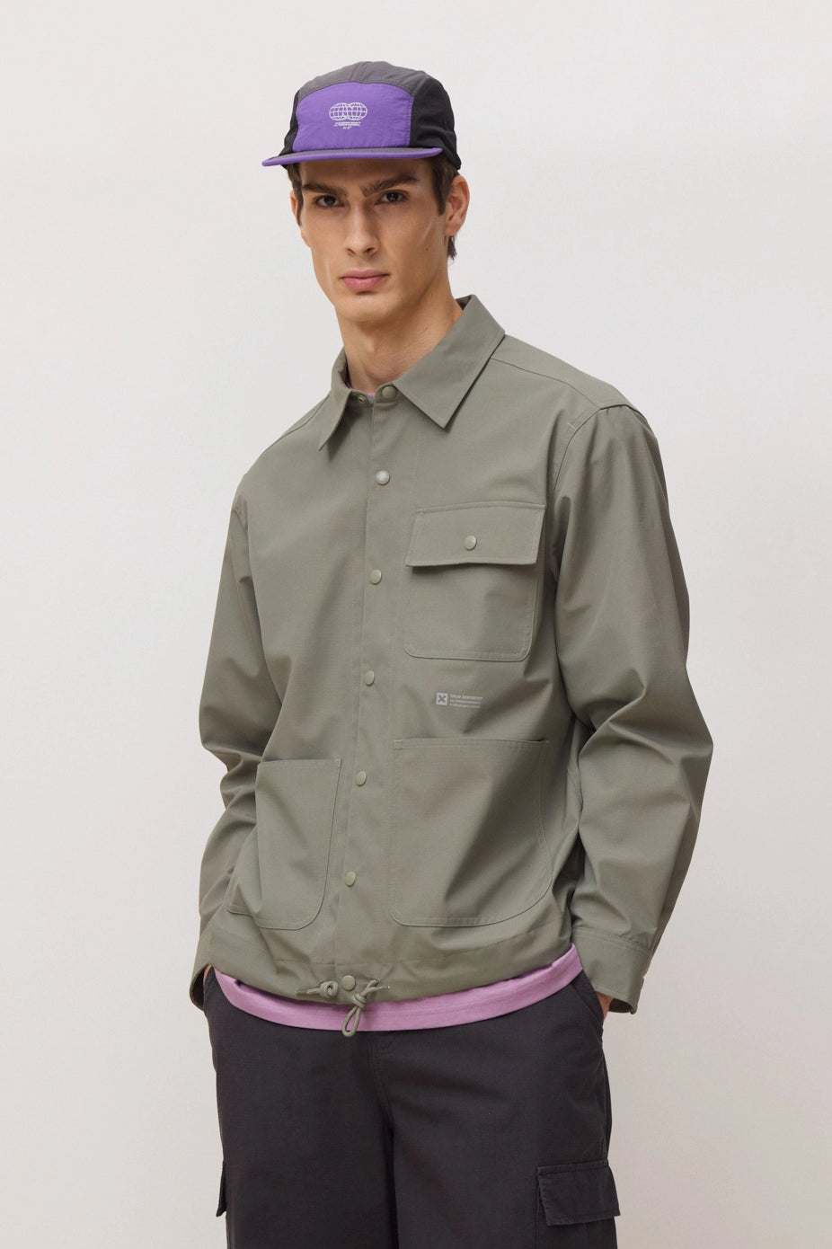 - Poche poitrine avec rabat et bouton pression.