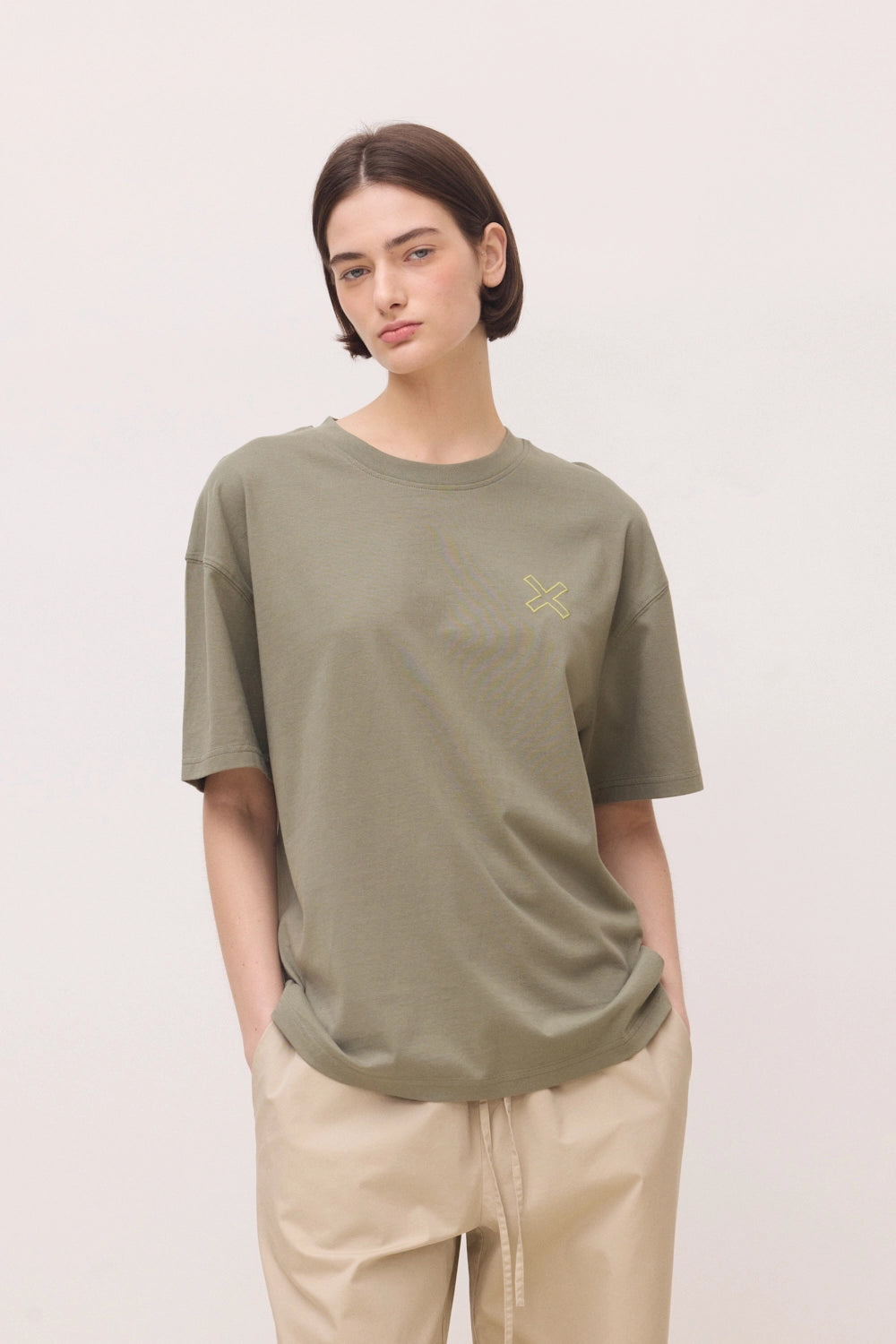 Camiseta con print delantero y trasero. Confeccionada con 100% algodón orgánico. Corte oversize y gramaje: 200 GSM.
